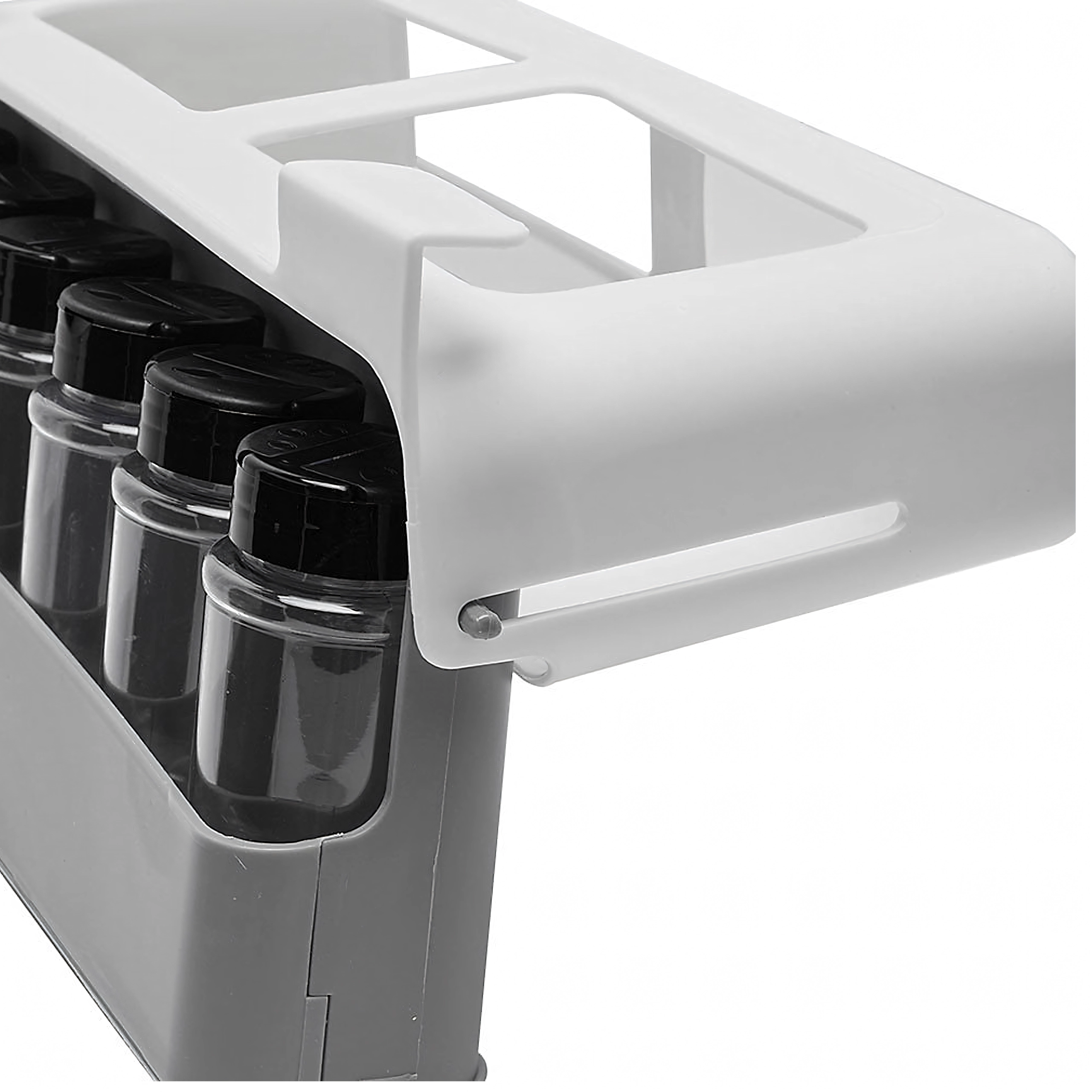 - Ordre et visibilité : réglette coulissante/escamotable pour un accès facile aux bocaux.