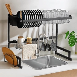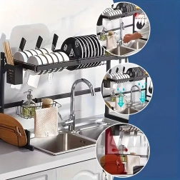• Gain de place – la structure à deux étages exploite au maximum l’espace vertical au-dessus de l’évier ou sur le plan de travail.