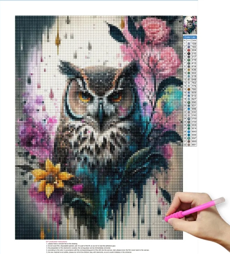 La toile codée et les “diamants” acryliques de qualité créent un effet 5D saisissant. L’œuvre finie scintille et se distingue comme décoration élégante.