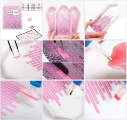 Le plateau rainuré aligne les strass, la pointe cirée les saisit fiablement et vous les placez avec précision sur les symboles codés pour une mosaïque parfaitement régulière.