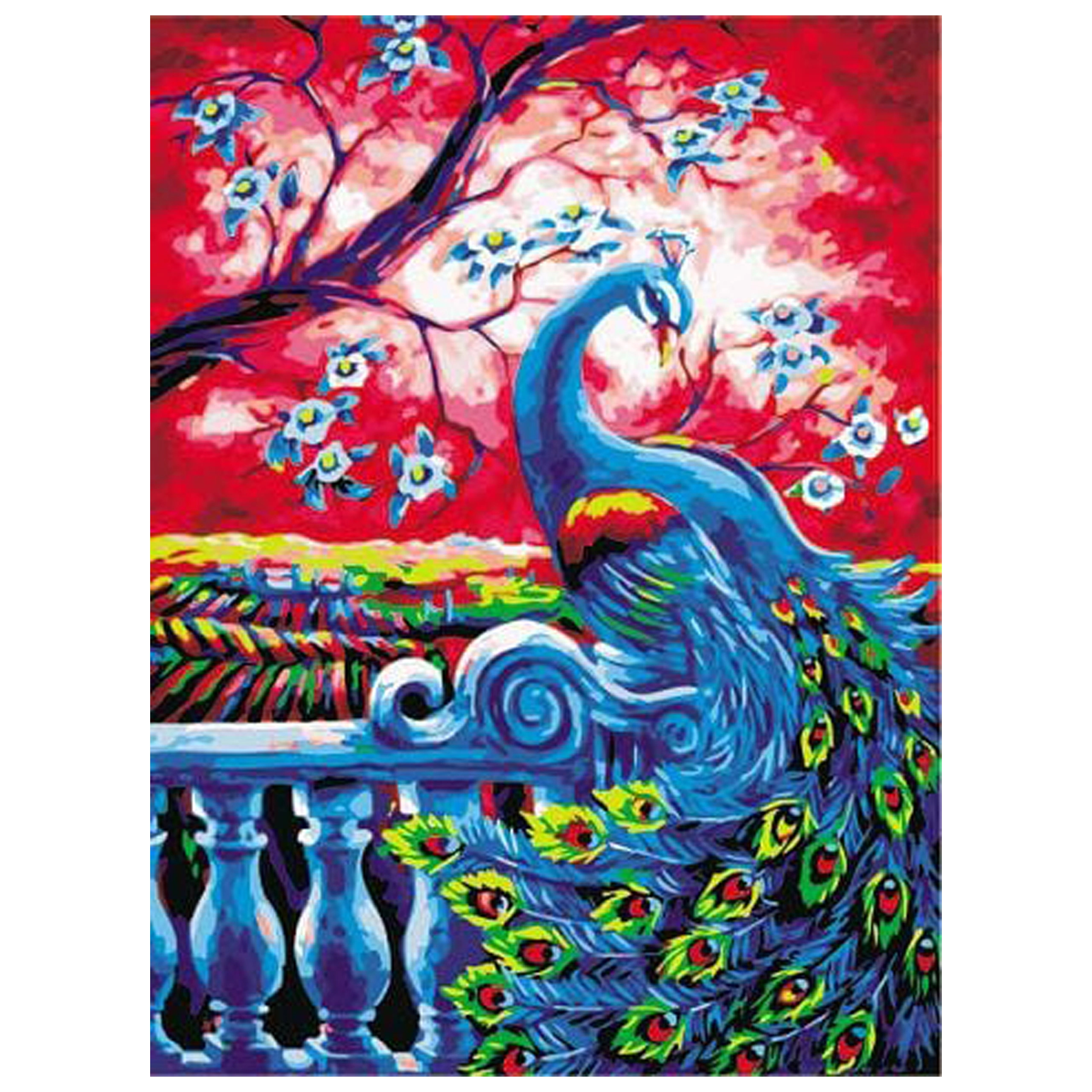 Créez votre propre tableau sans stress : il suffit de remplir les zones numérotées avec les couleurs correspondantes, et le motif vivant du paon apparaîtra peu à peu. Grâce à la toile déjà tendue sur un châssis entoilé en bois, vous pouvez commencer à peindre dès le déballage et accrocher votre œuvre finie immédiatement.