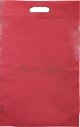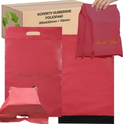 Enveloppes plastiques de coursier rouges avec poignée découpée 310 × 420 + 70 mm, 50 pcs, inscription Thank You