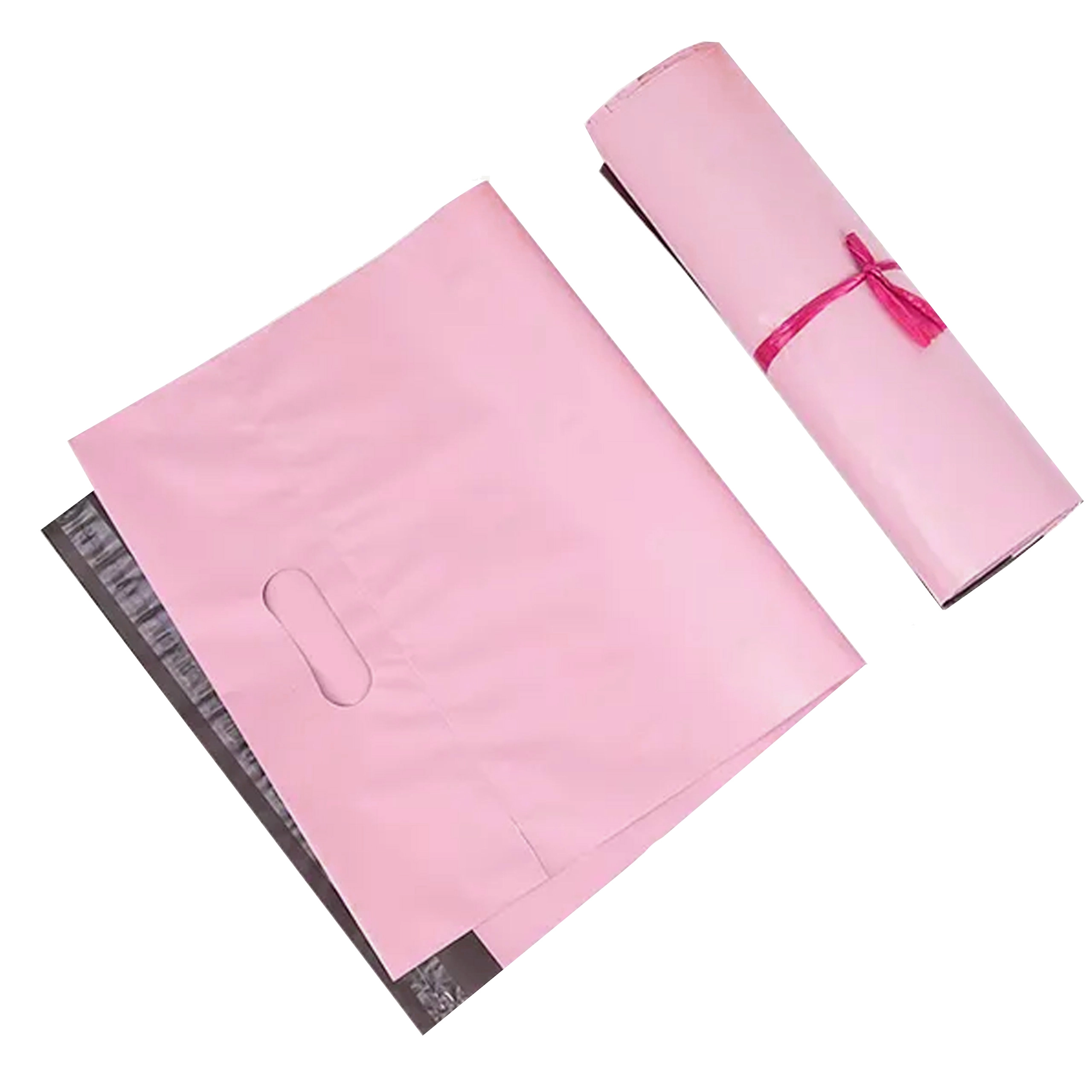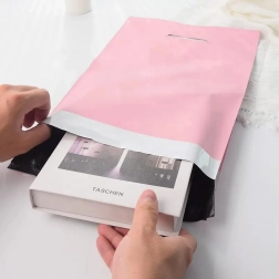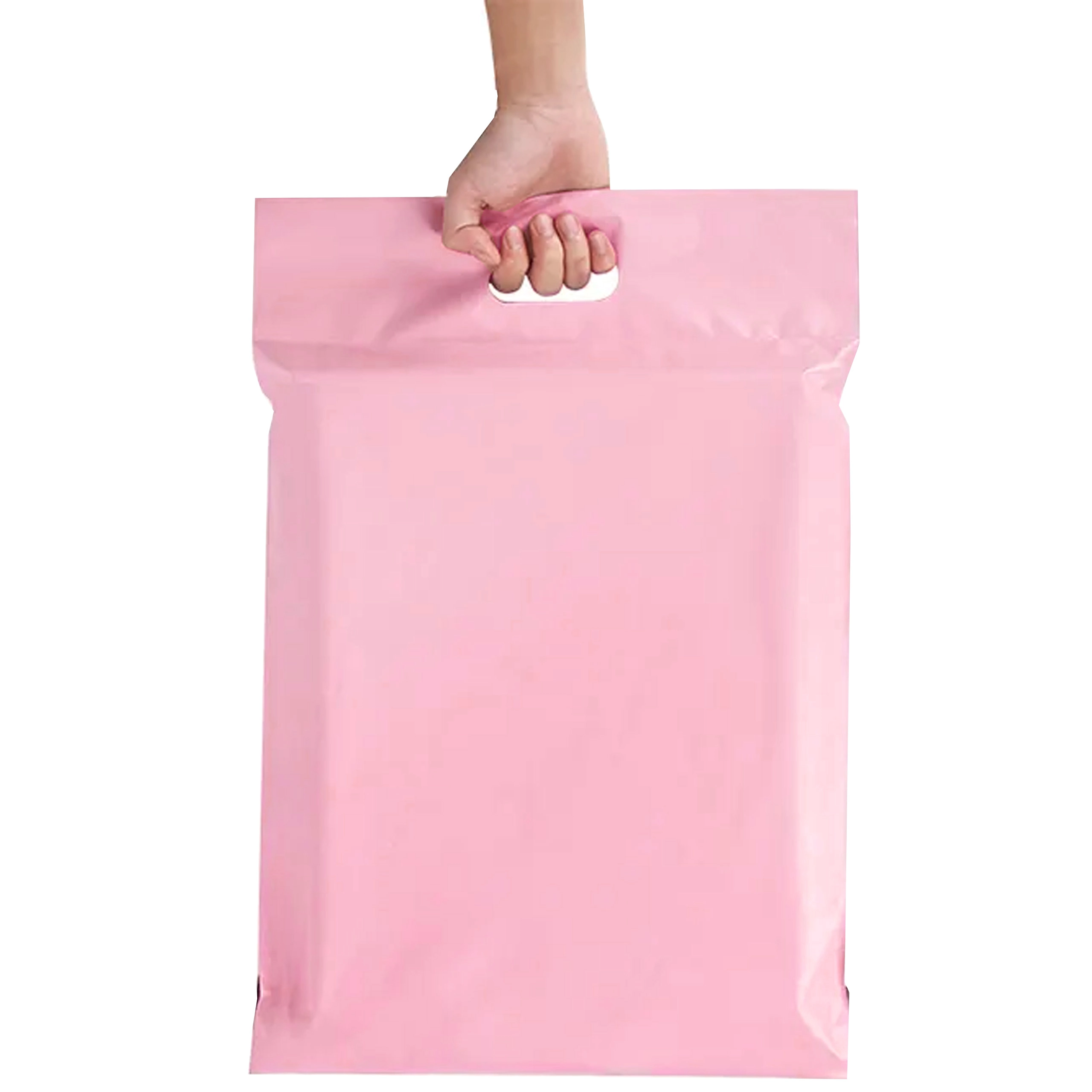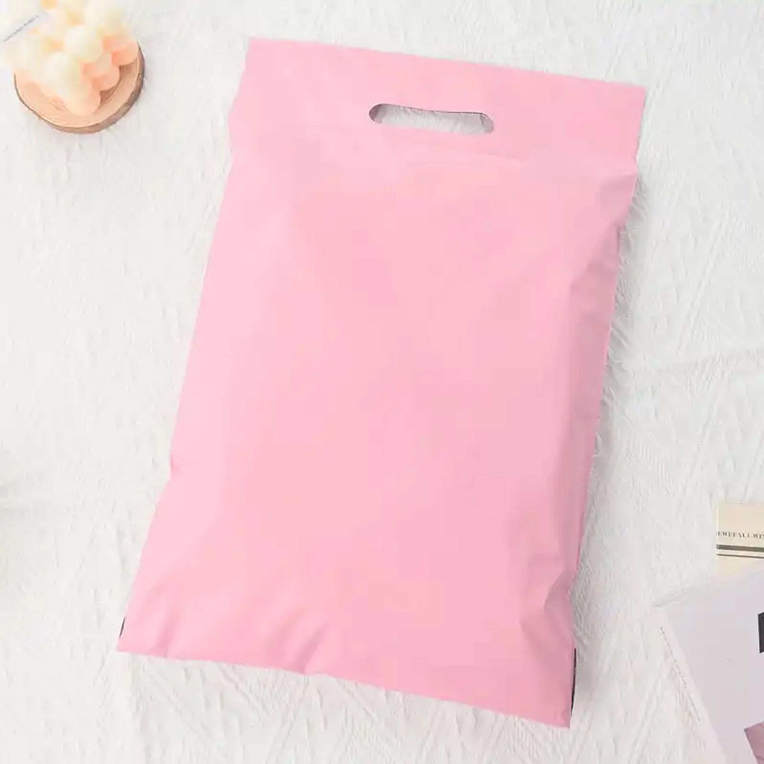Pochettes de coursier roses en LDPE avec bande autocollante et poignée pratique pour un transport facile, assurant un emballage sécurisé, rapide et propre des envois. Idéales pour les e-shops et les entreprises qui recherchent une protection fiable et une présentation professionnelle des colis.