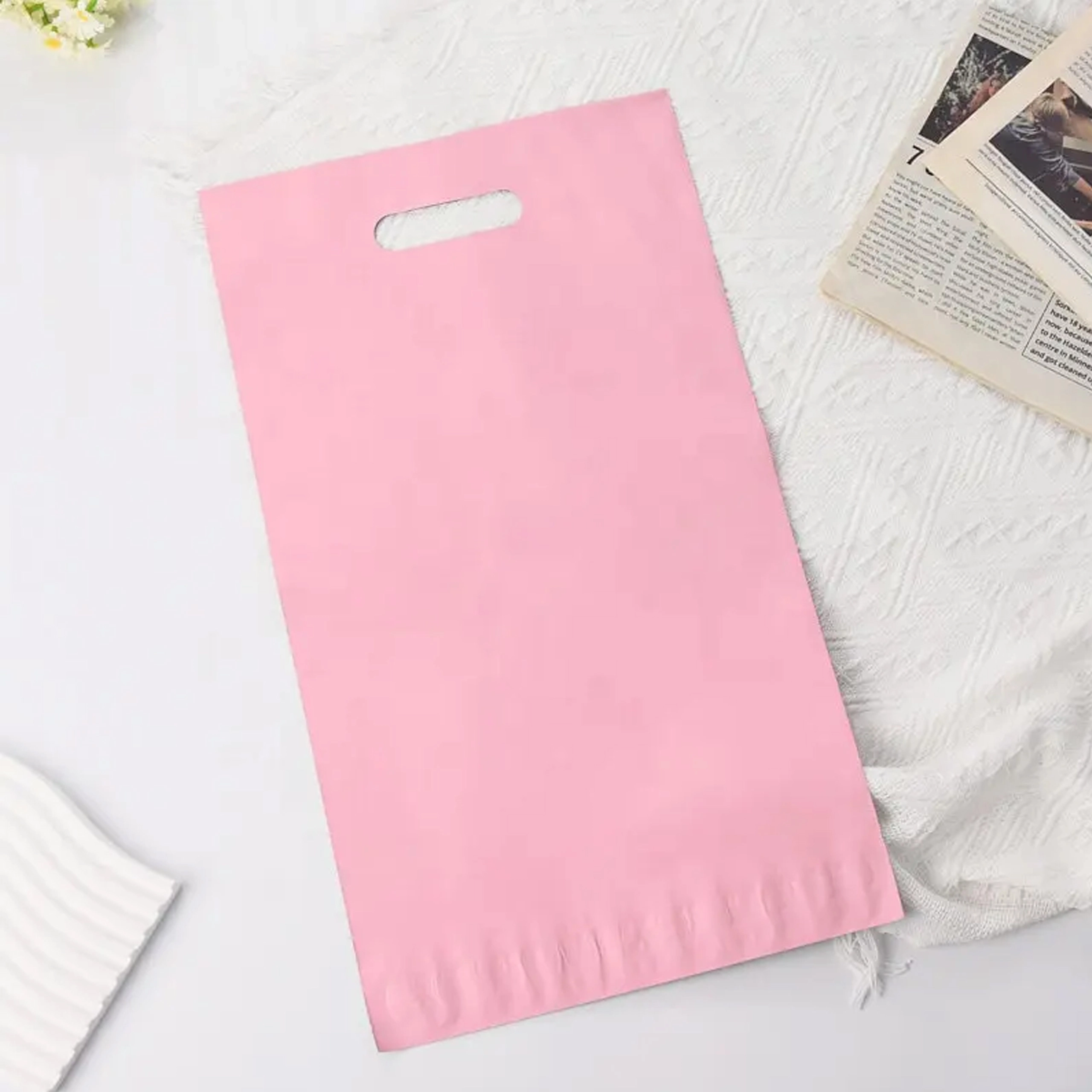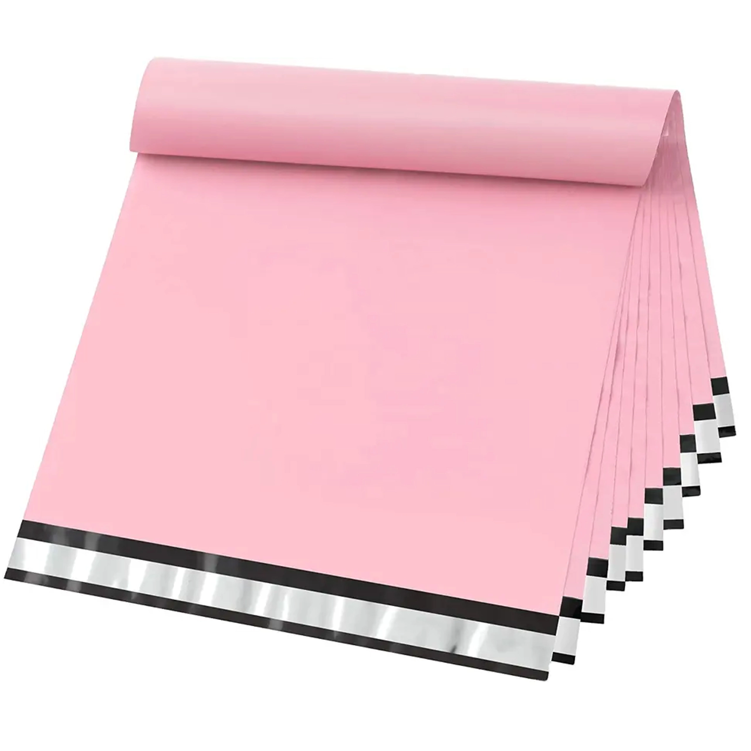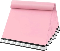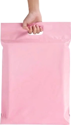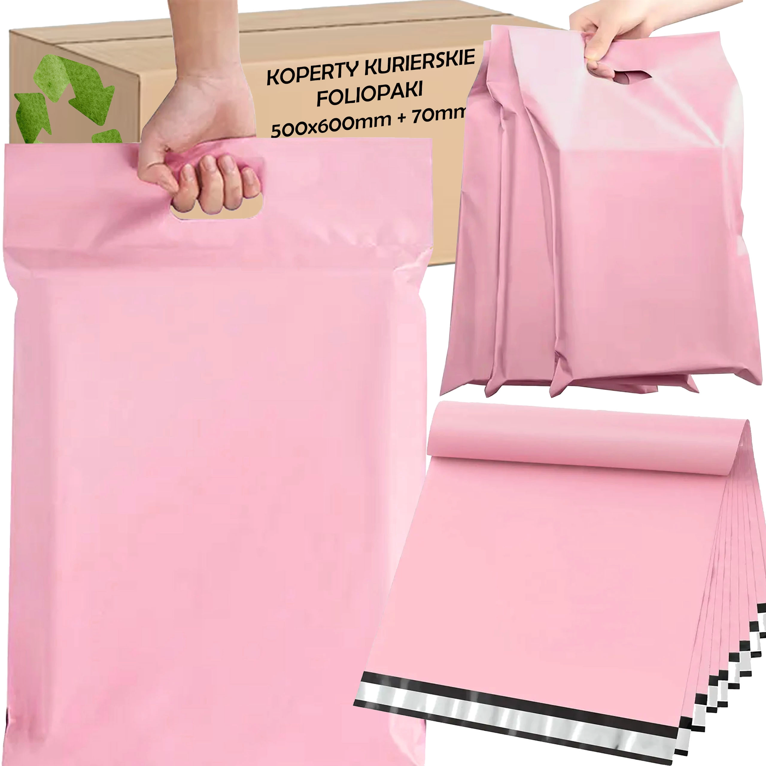 Pochettes de coursier roses en LDPE avec bande autocollante et poignée pratique pour un transport facile, assurant un emballage sécurisé, rapide et propre des envois. Idéales pour les e-shops et les entreprises qui recherchent une protection fiable et une présentation professionnelle des colis.