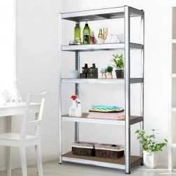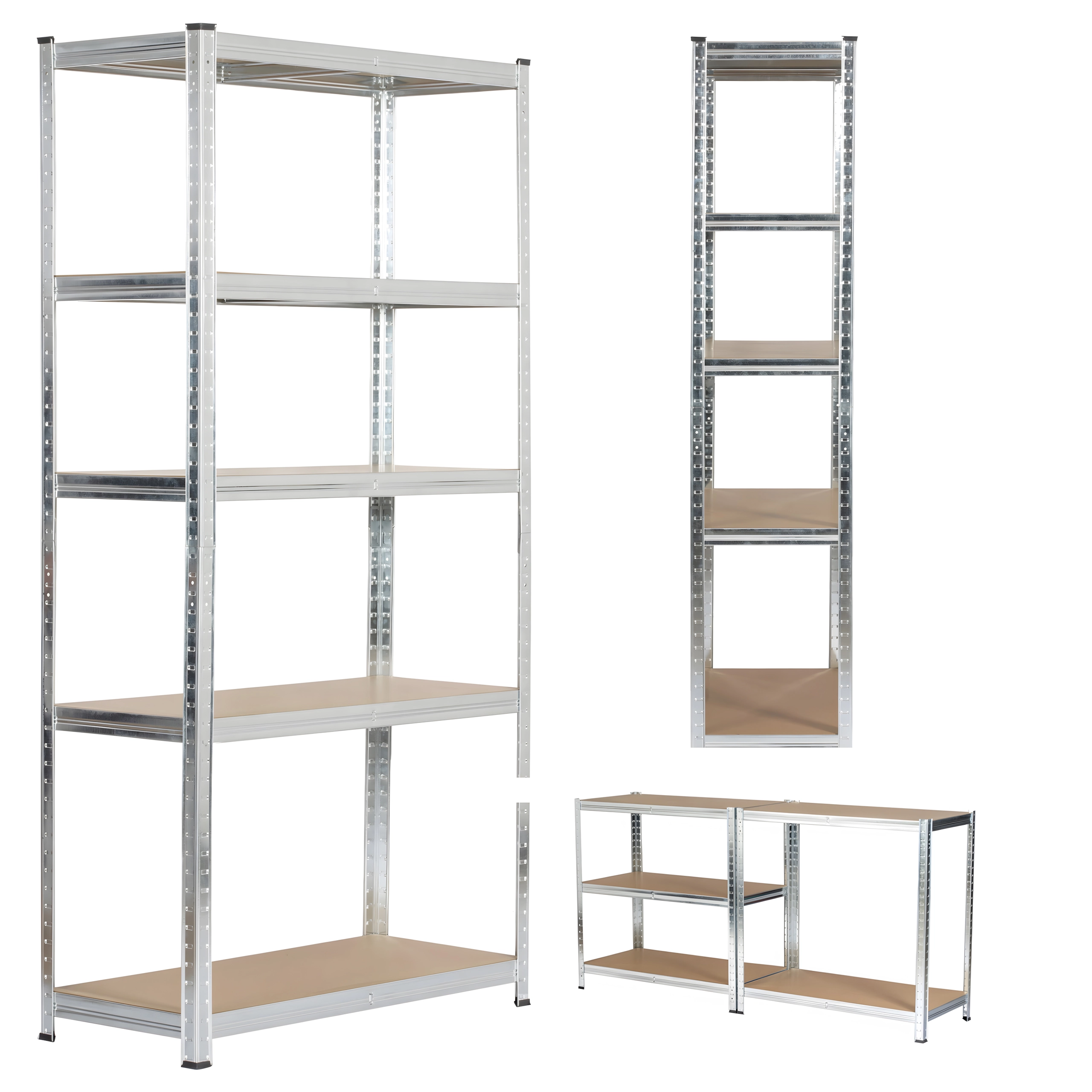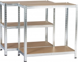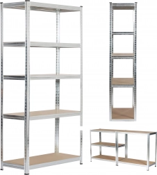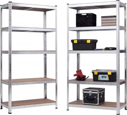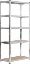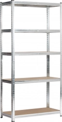 Étagère robuste en acier galvanisé offrant un stockage fiable et sécurisé pour outils, boîtes et matériaux. Grâce aux cinq tablettes réglables en hauteur en MDF, vous adaptez facilement l’espace à vos besoins et exploitez chaque centimètre efficacement.