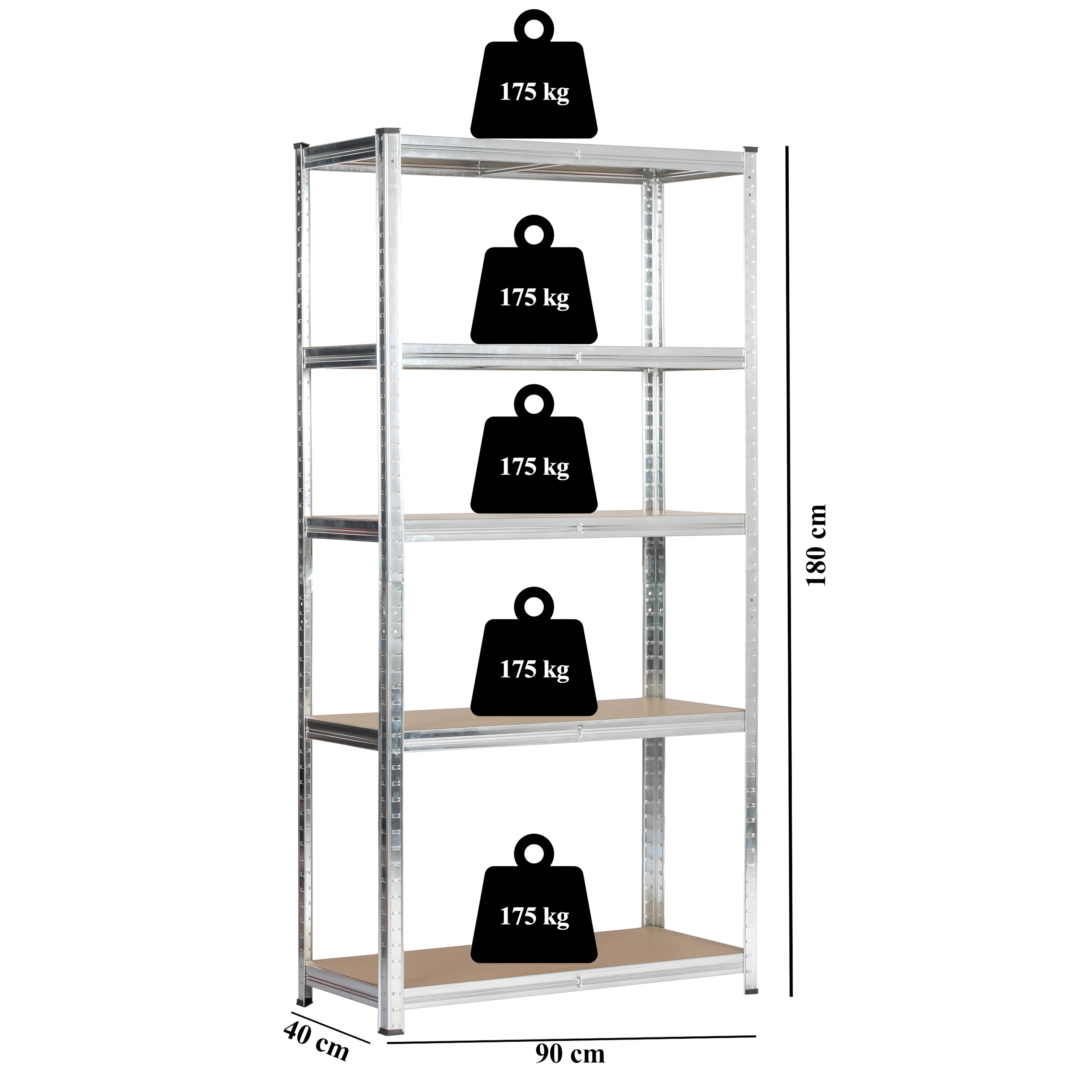 Chaque tablette supporte jusqu’à 175 kg, assurant une grande robustesse même pour le stockage d’objets lourds et de cartons. Idéal pour garages, ateliers et entrepôts.