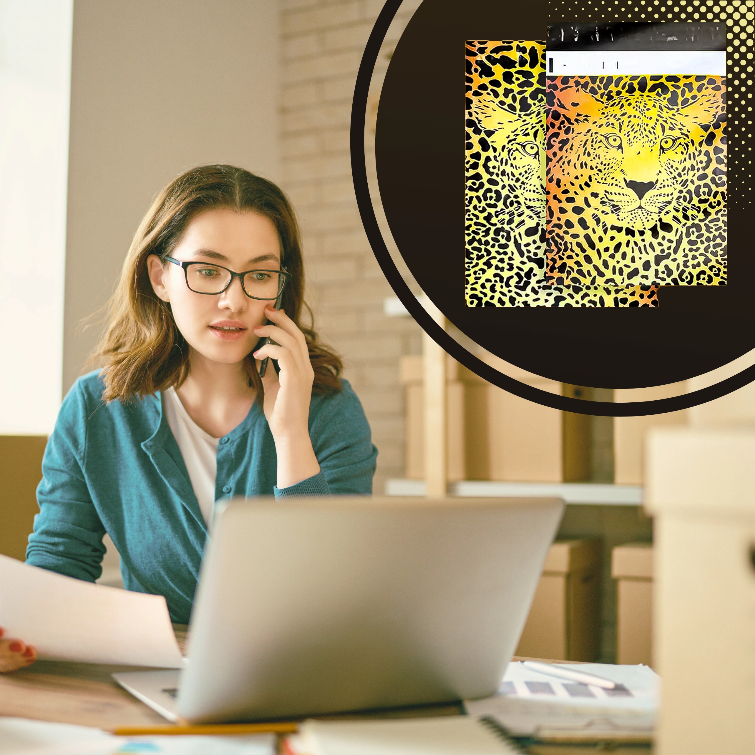 Un imprimé guépard accrocheur attire l’attention des clients et distingue vos envois au premier regard.