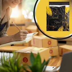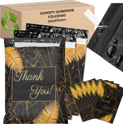 Vous recherchez des emballages fiables pour votre e‑shop ou des envois réguliers ? Ces enveloppes d’expédition polymailers résistantes au format 255 × 370 mm sont parfaites pour les objets petits à moyens. La surface noire avec la discrète inscription Thank You offre un rendu professionnel et renforce la bonne impression à la livraison.