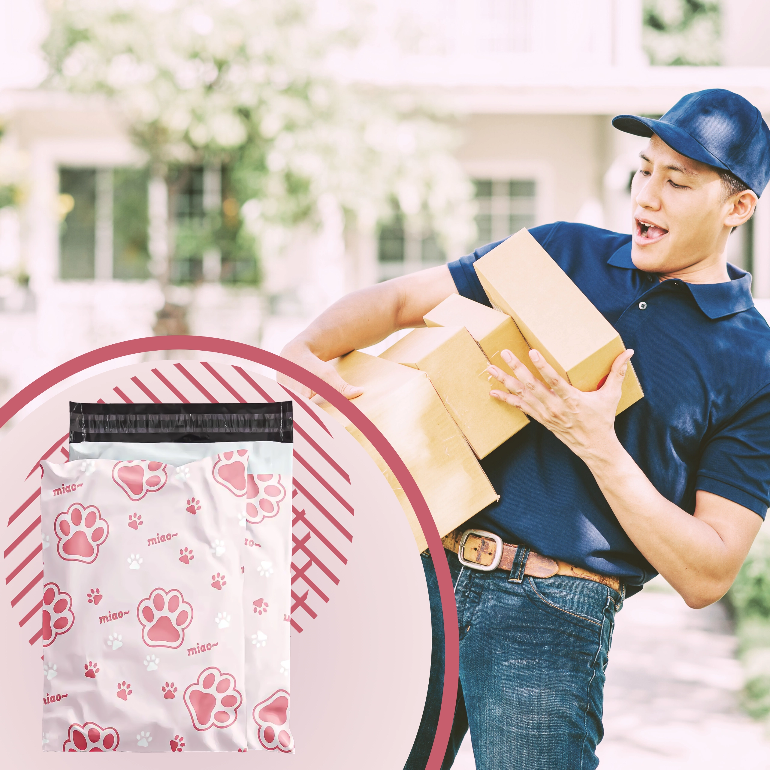 Des enveloppes postales en plastique élégantes et résistantes pour l’e‑commerce et les envois domestiques. Elles offrent une fermeture sécurisée grâce à la bande auto-adhésive, un emballage rapide et un matériau léger et résistant à l’eau. Dimensions 255 × 370 mm, motif pattes de chat, lot de 50 pièces.