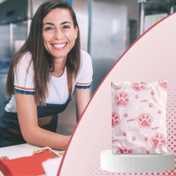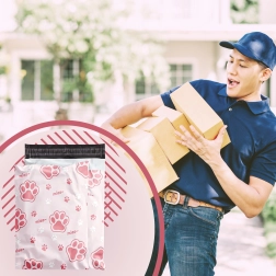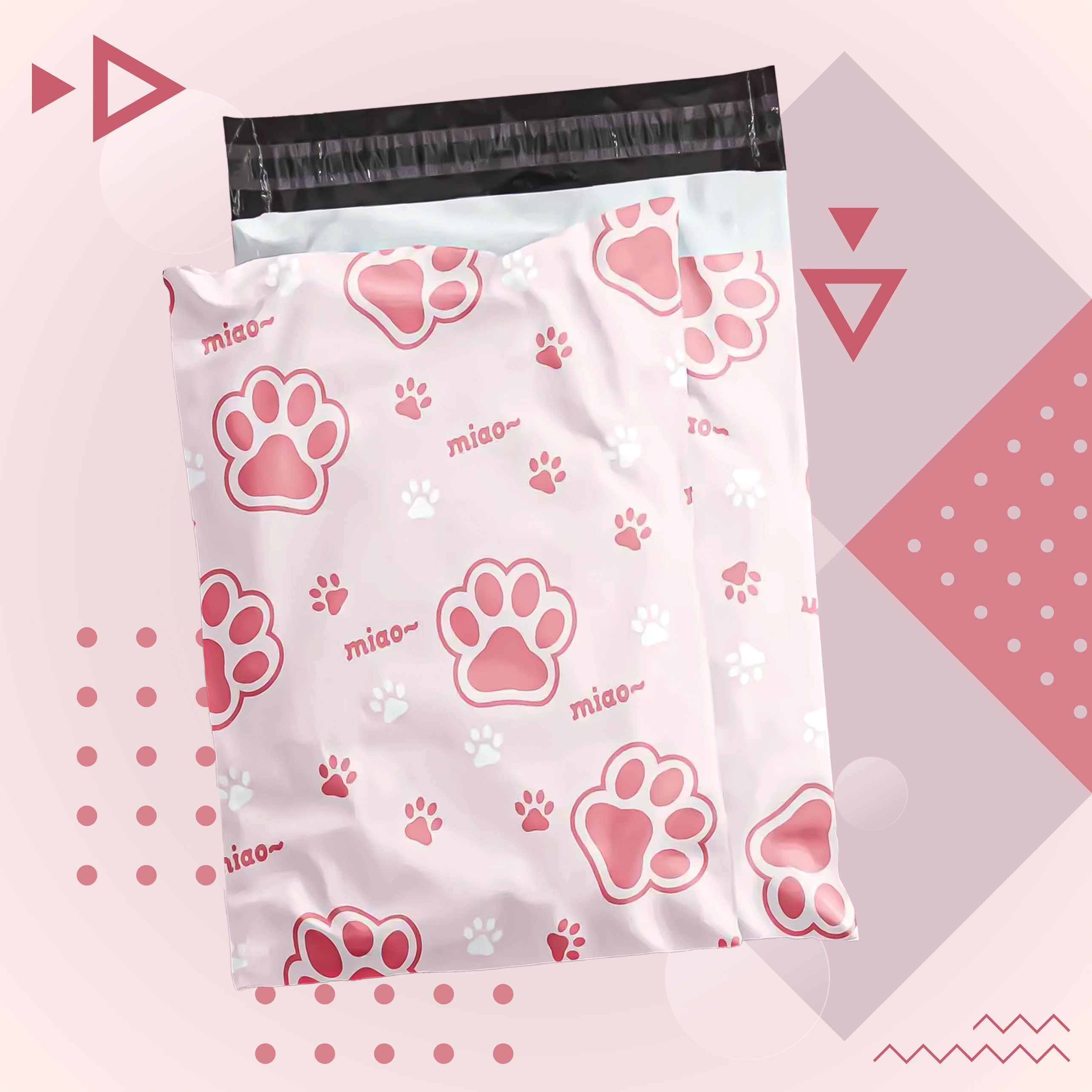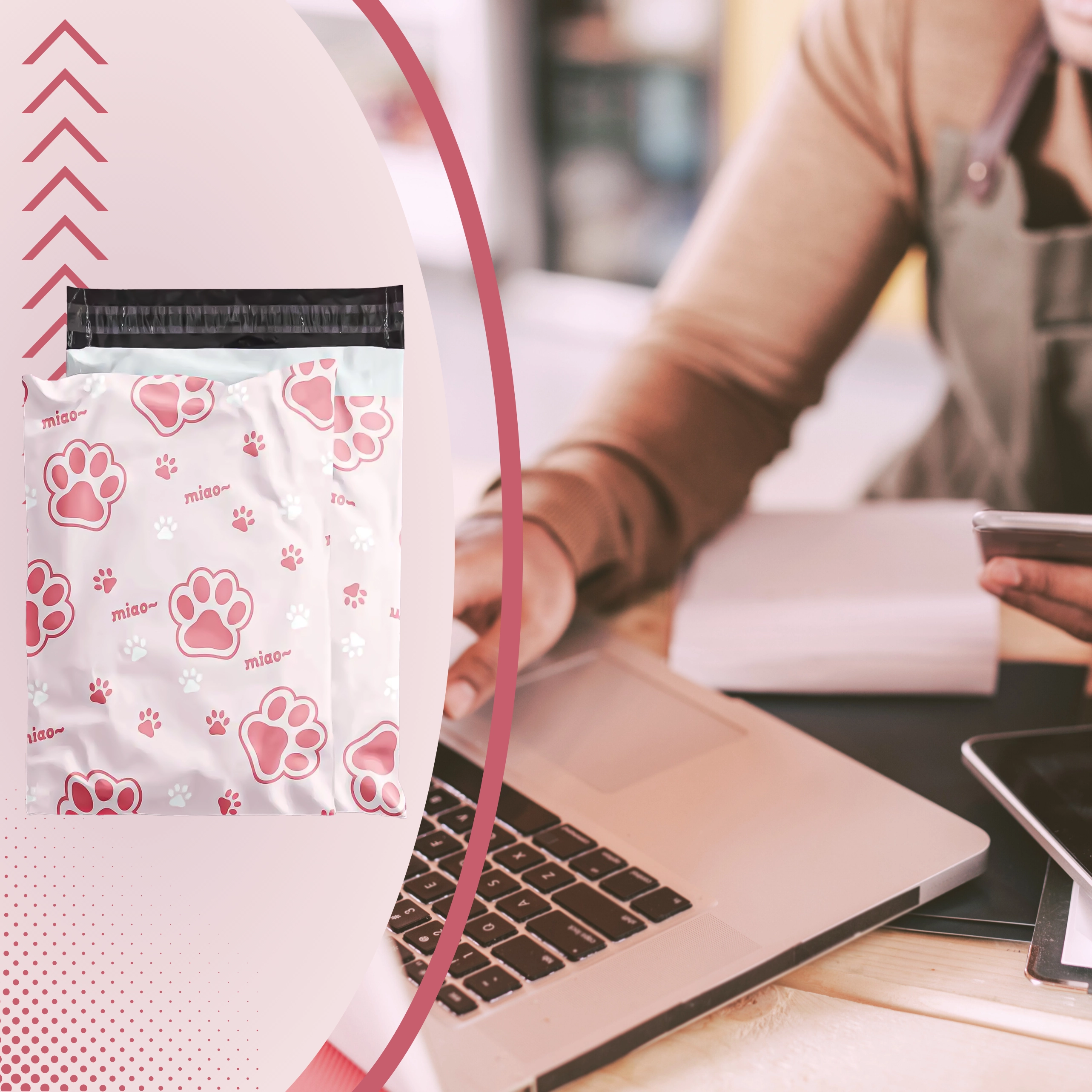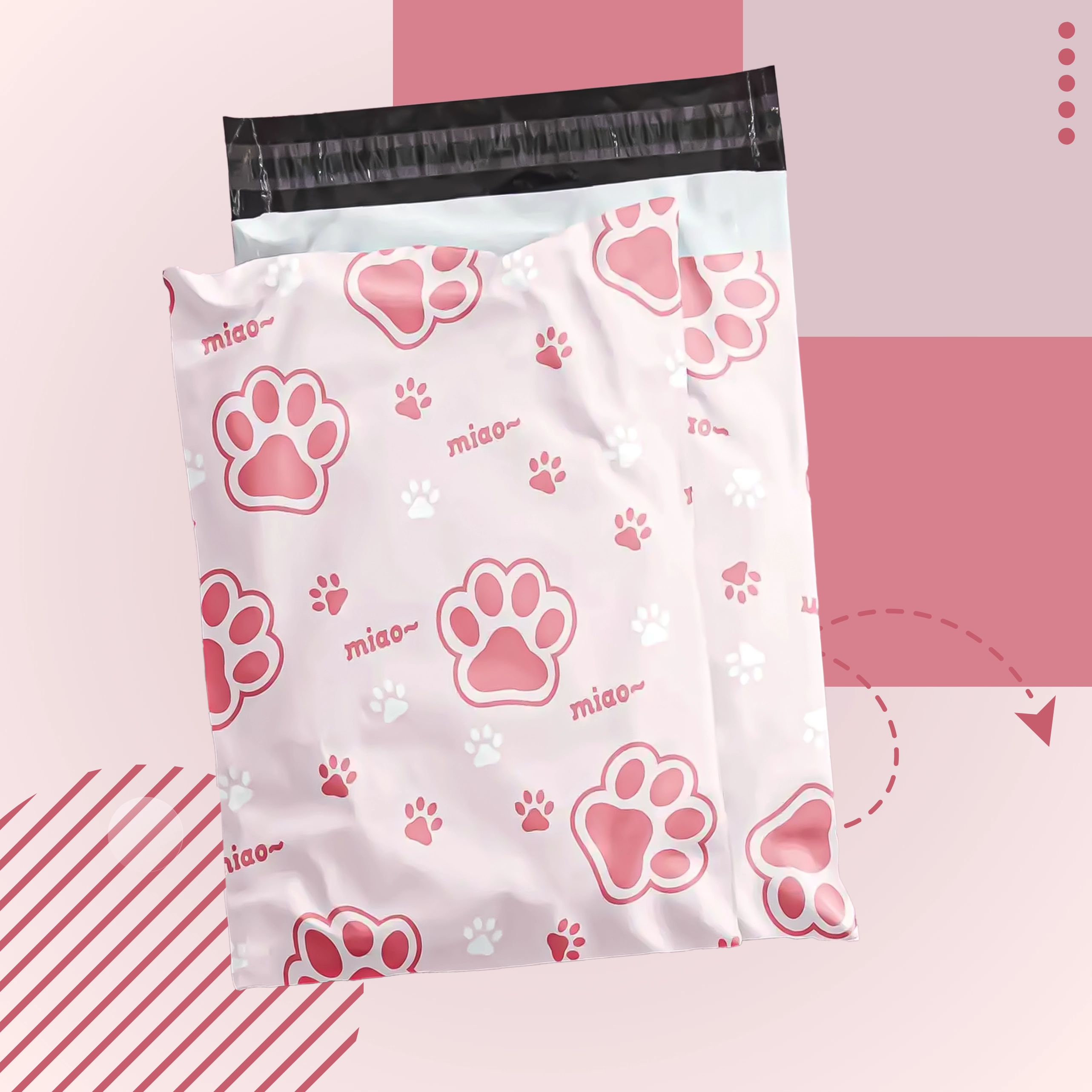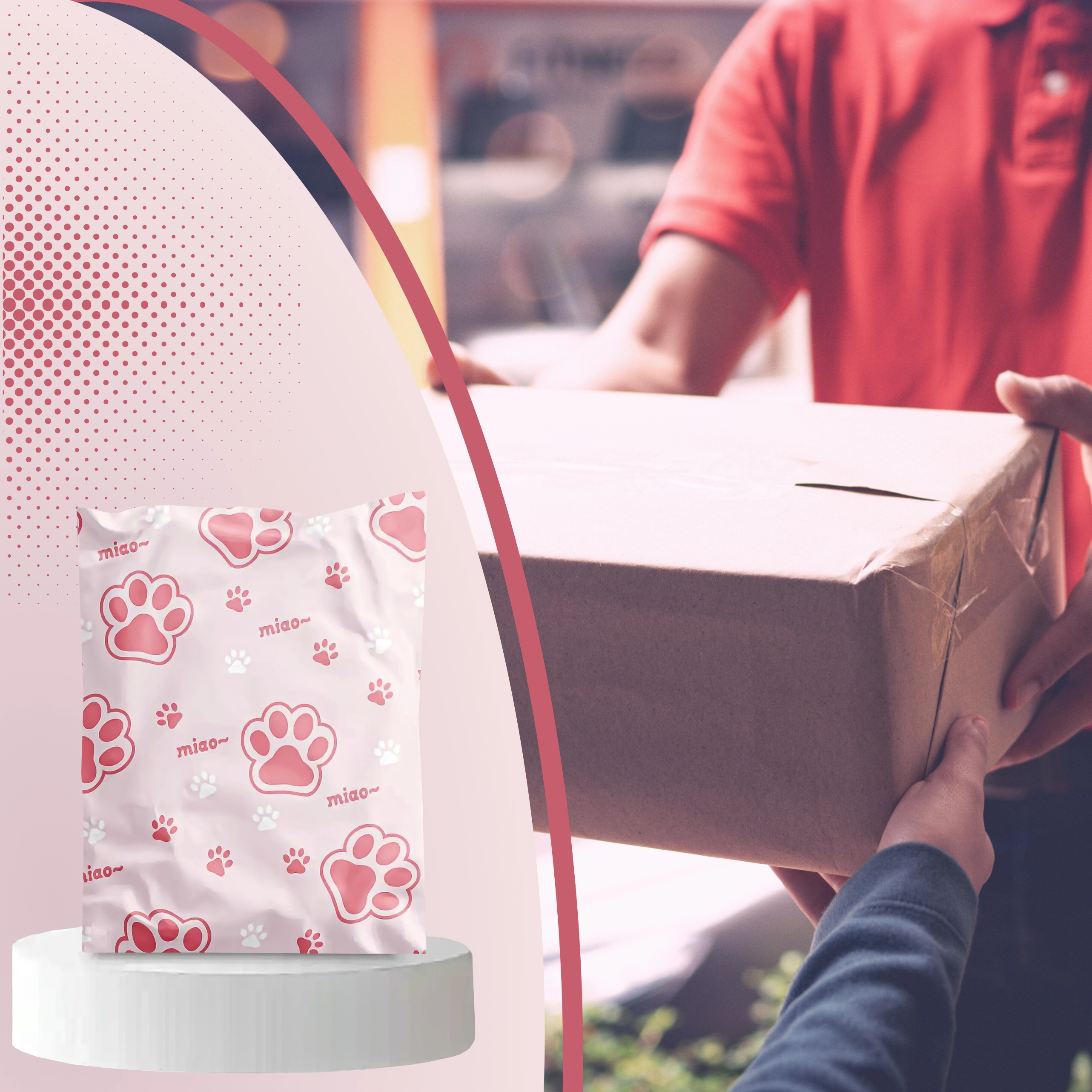 Le décor avec inscriptions et pattes roses apporte une touche personnelle aux envois et améliore l’expérience client, sans compromettre la praticité ni la résistance de l’enveloppe.