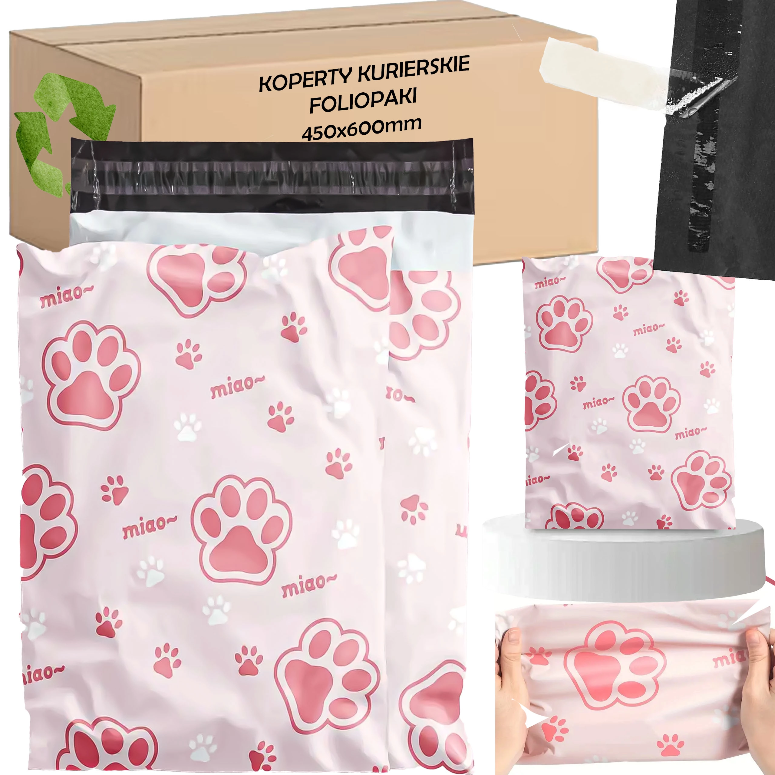 Enveloppes de messagerie en polyéthylène 450 × 600 mm motif pattes de chat, 50 pièces