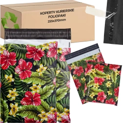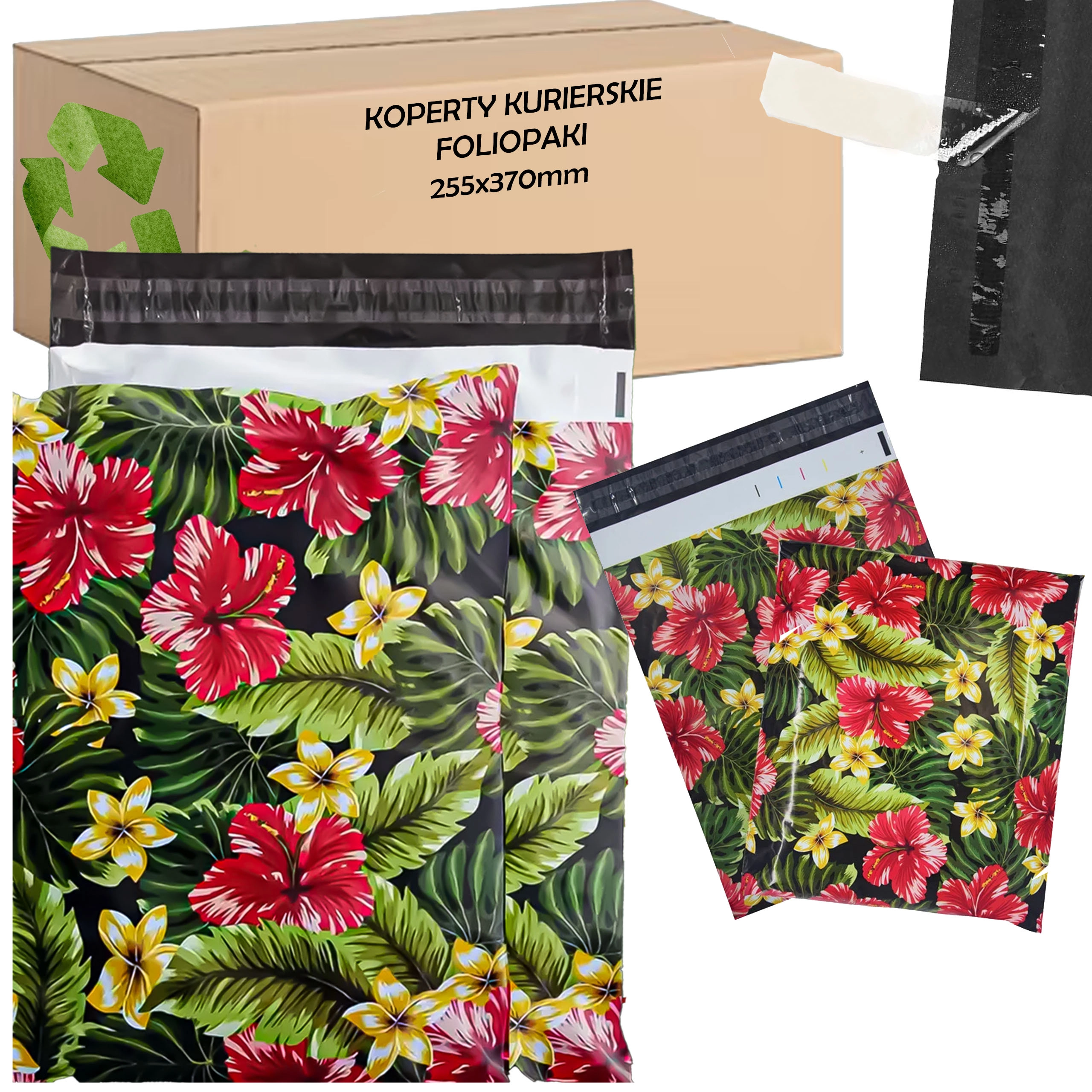 Grâce au format 255 × 370 mm, vous emballez facilement des produits petits à moyens. La bande autocollante réduit le temps d’emballage et garantit que toute tentative d’ouverture après scellement sera visible. Le design attrayant avec hibiscus et plumerias renforce par ailleurs la présentation de votre marque à la livraison.