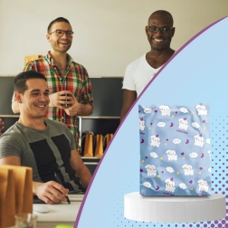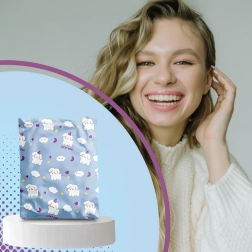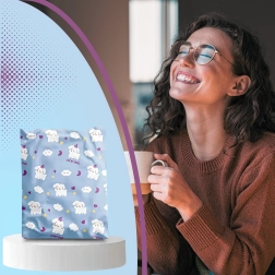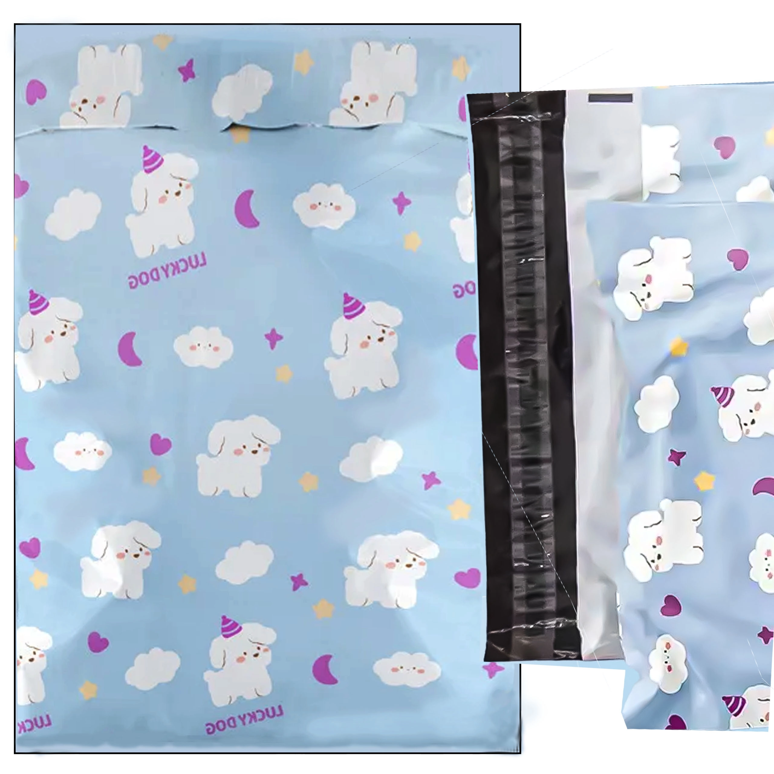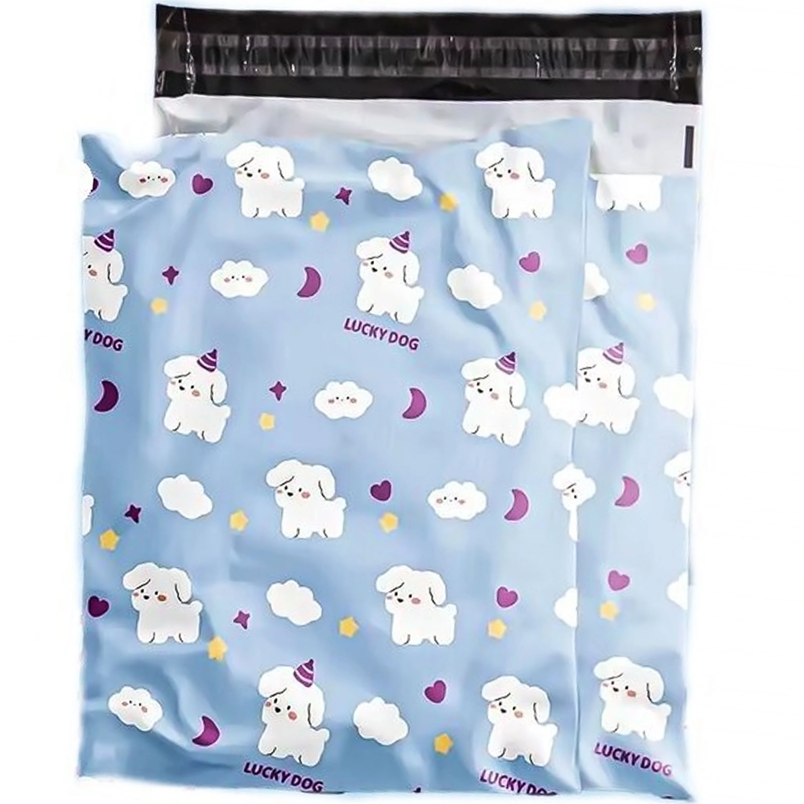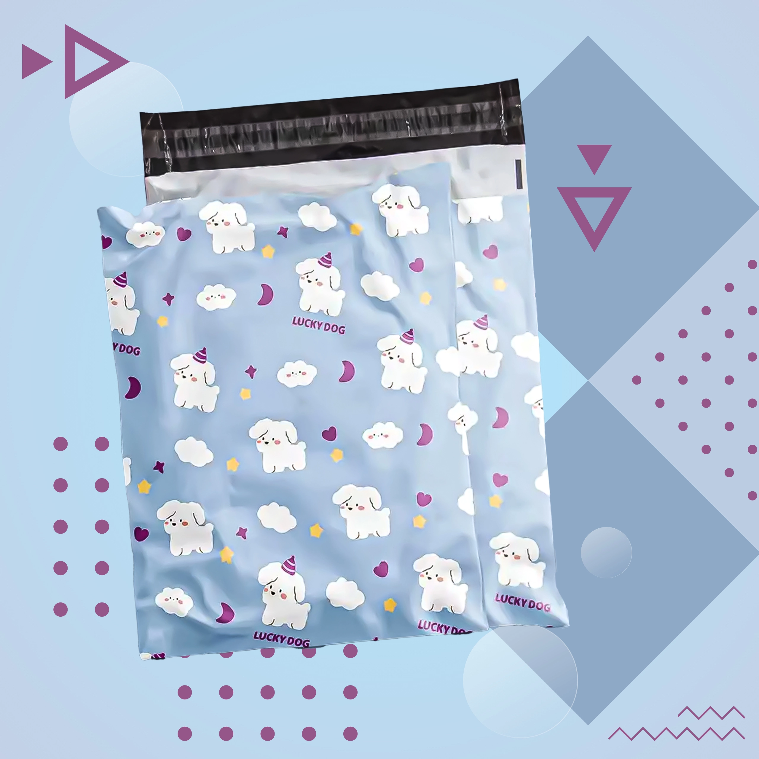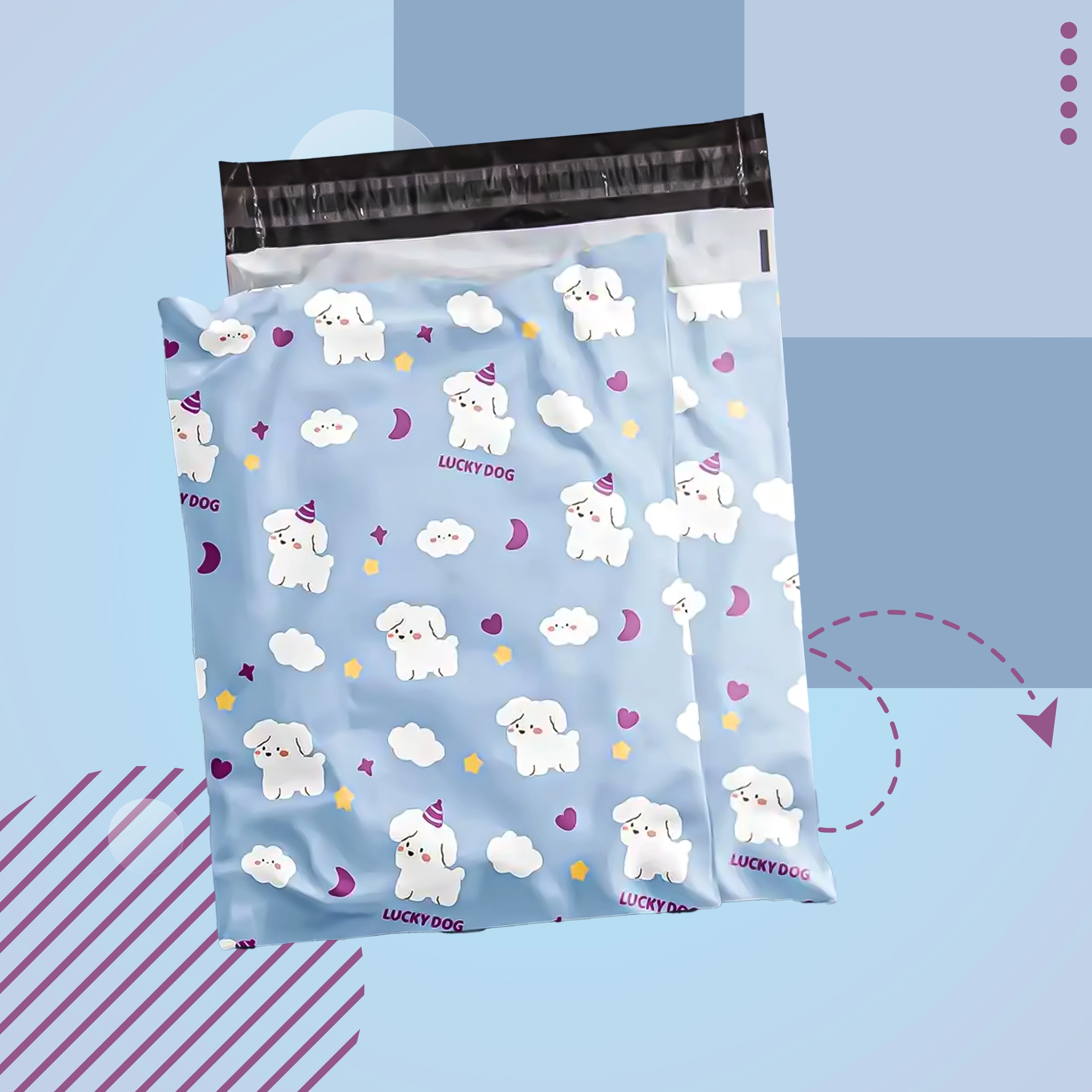 Un design bleu clair avec de jolis chiens améliore l’expérience de livraison et renforce le plaisir du déballage. Idéal pour les e‑shops de mode et les emballages cadeaux.
