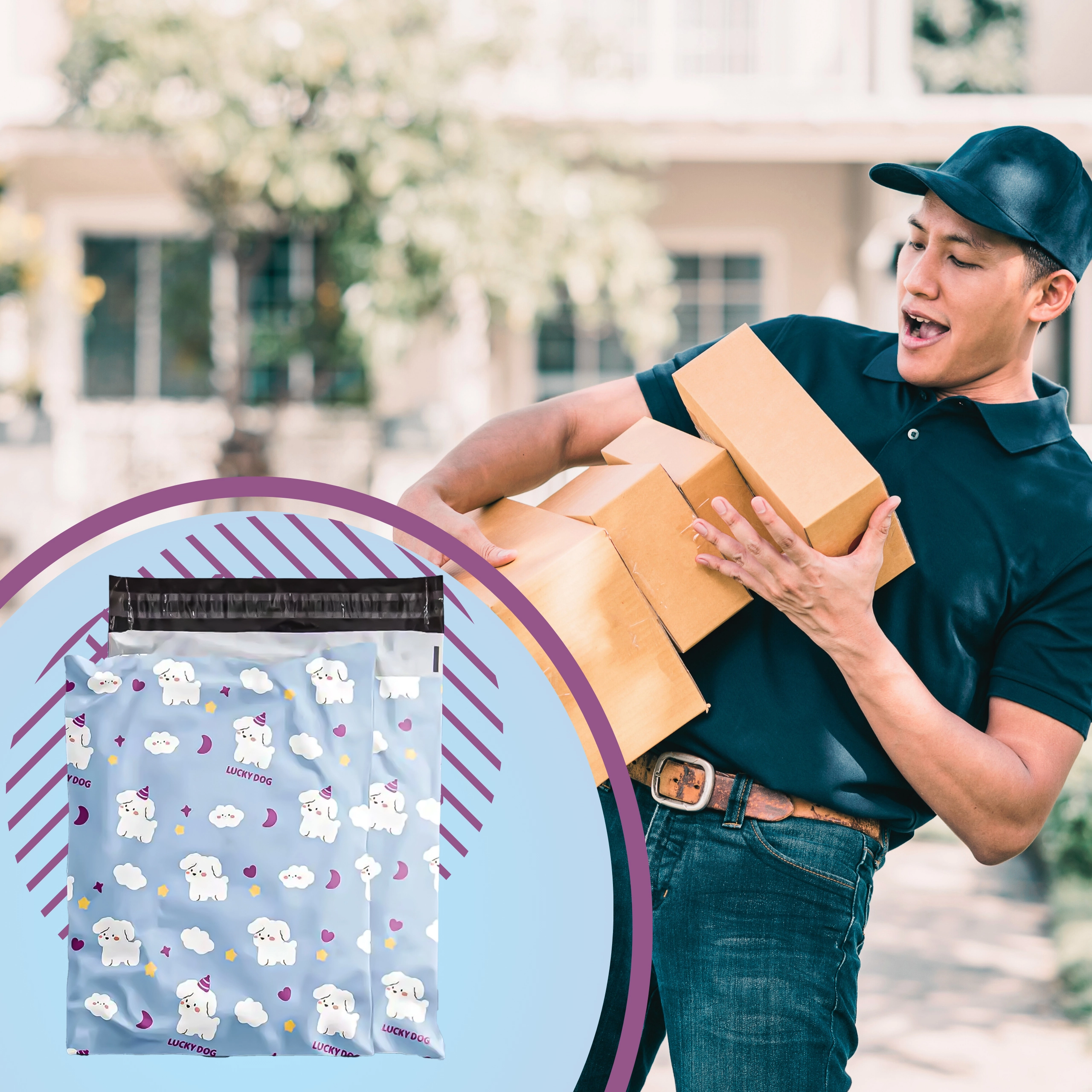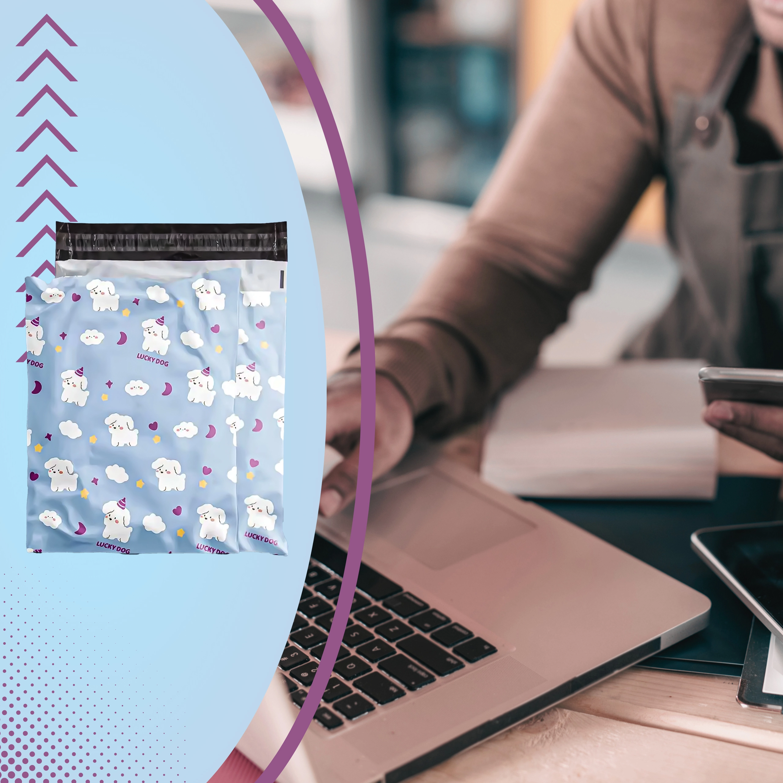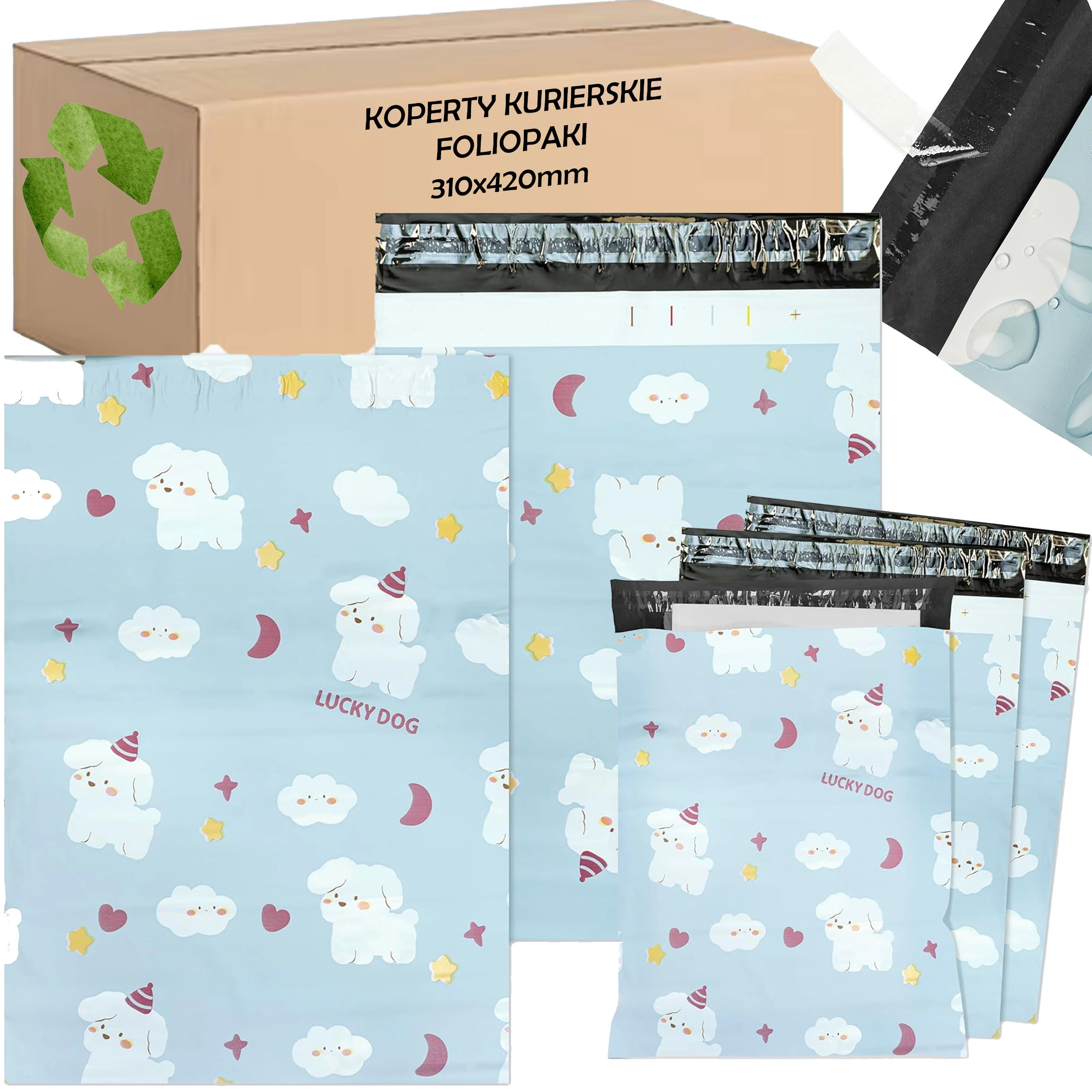 Les poly mailers stylés imprimés LUCKY DOG allient look attractif et haute fonctionnalité. Grâce au format 310 × 420 mm, vous emballez en toute sécurité sweats, pantalons, accessoires et autres articles souples. La fermeture autoadhésive réduit le temps d’emballage et assure un scellage fiable de l’enveloppe sans ruban supplémentaire.