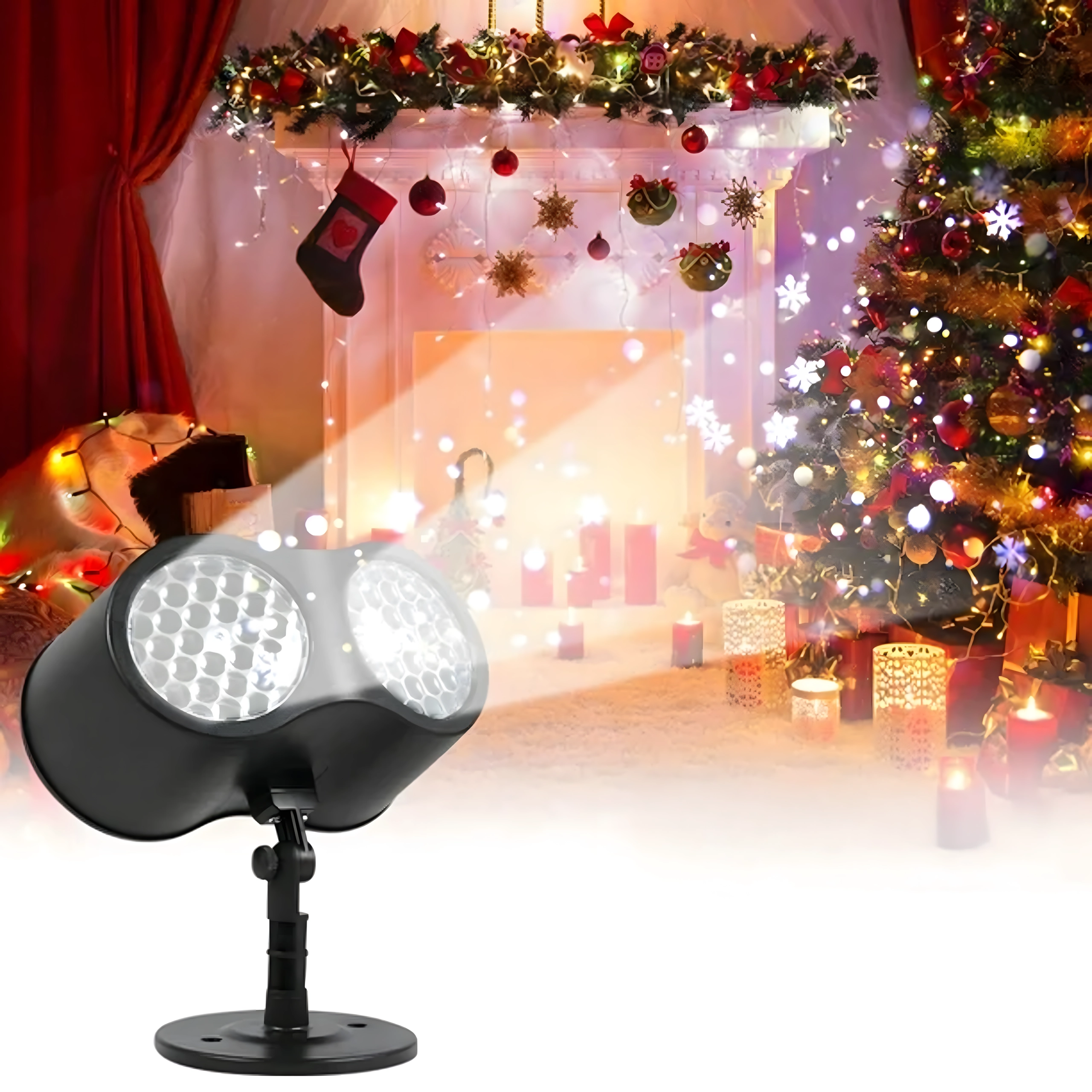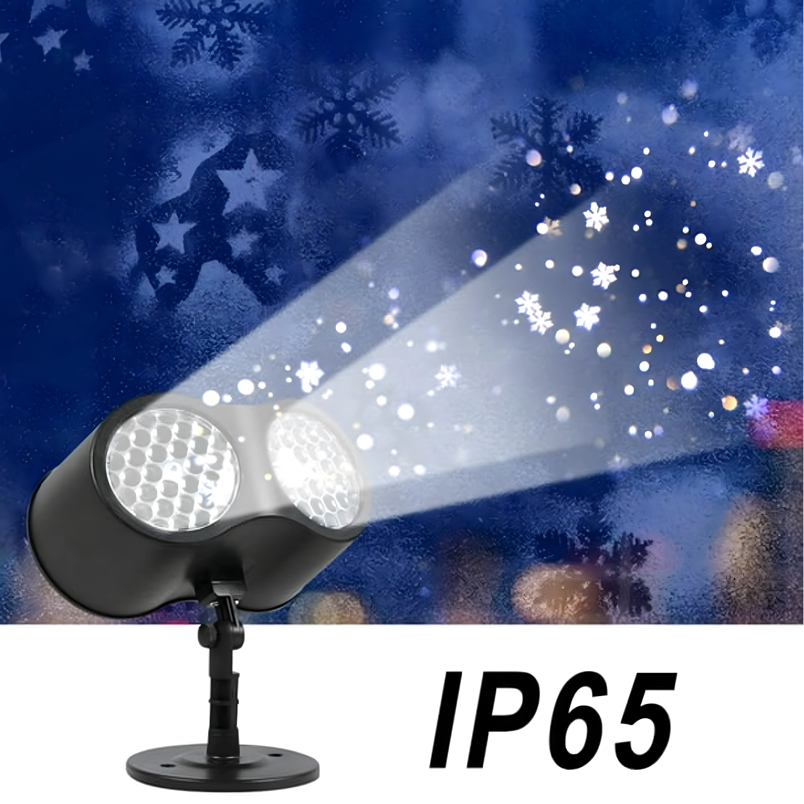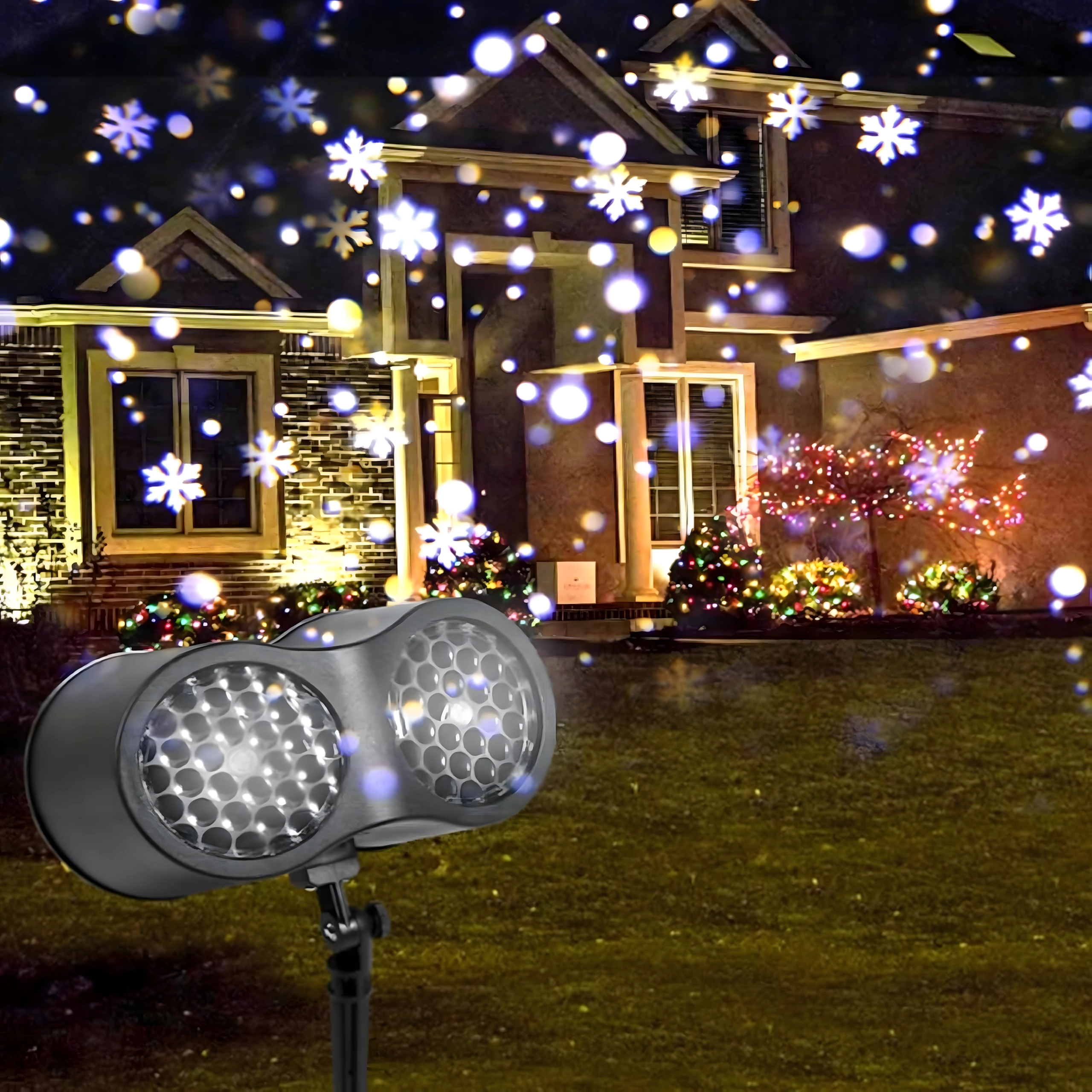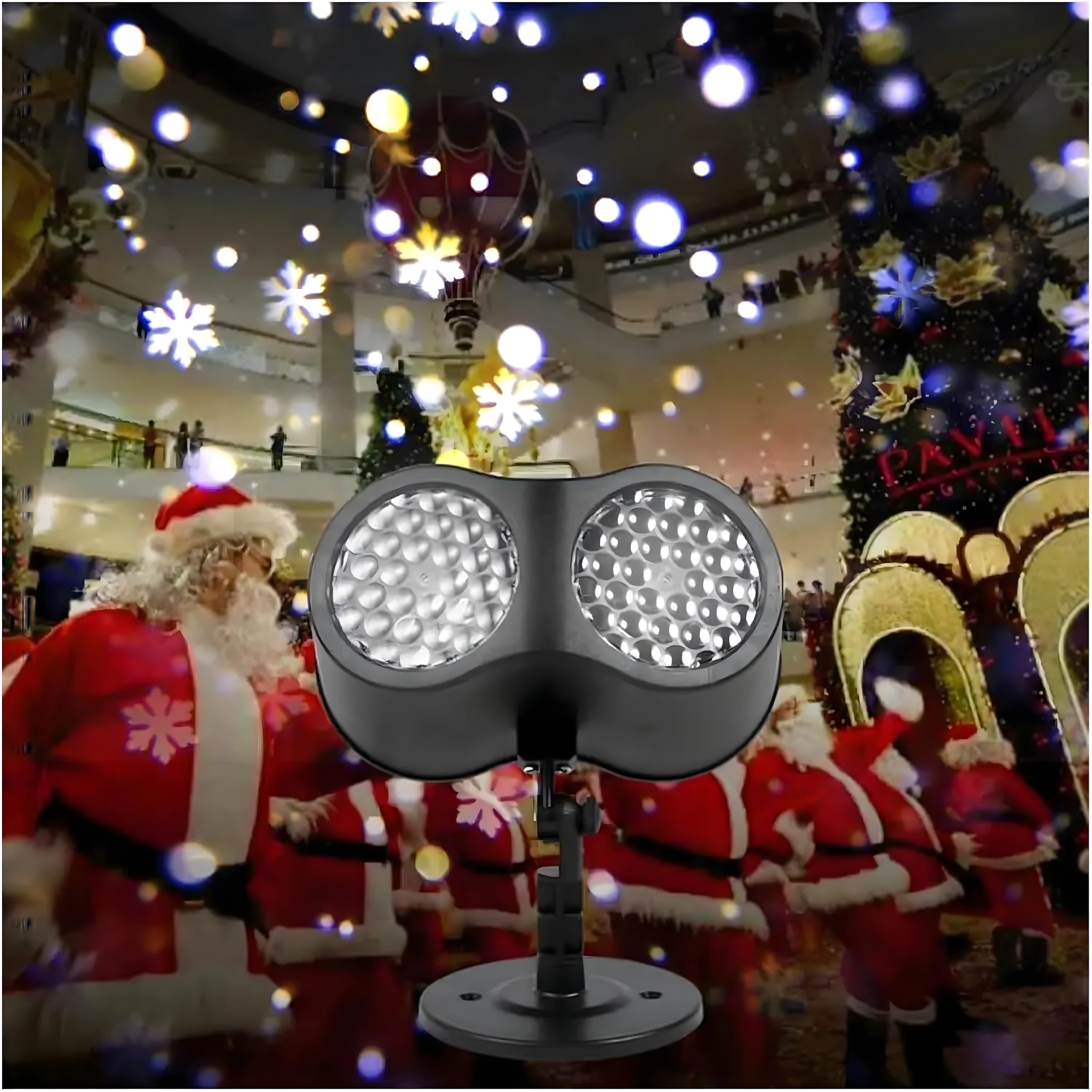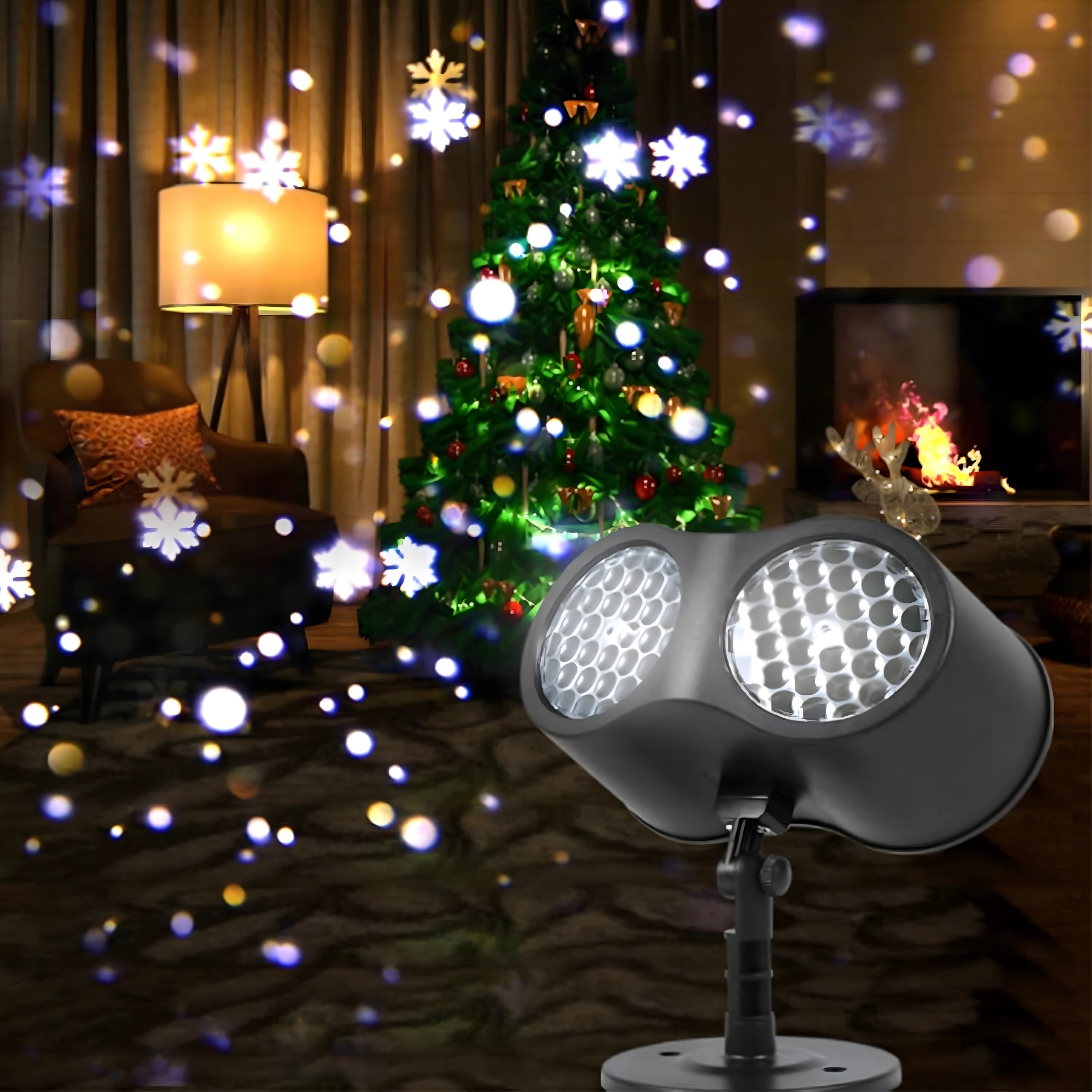 La double optique LED projette des flocons et des points lumineux nets et dynamiques sur de grandes surfaces de murs et de façades – idéal pour une déco festive rapide sans échelles ni guirlandes.