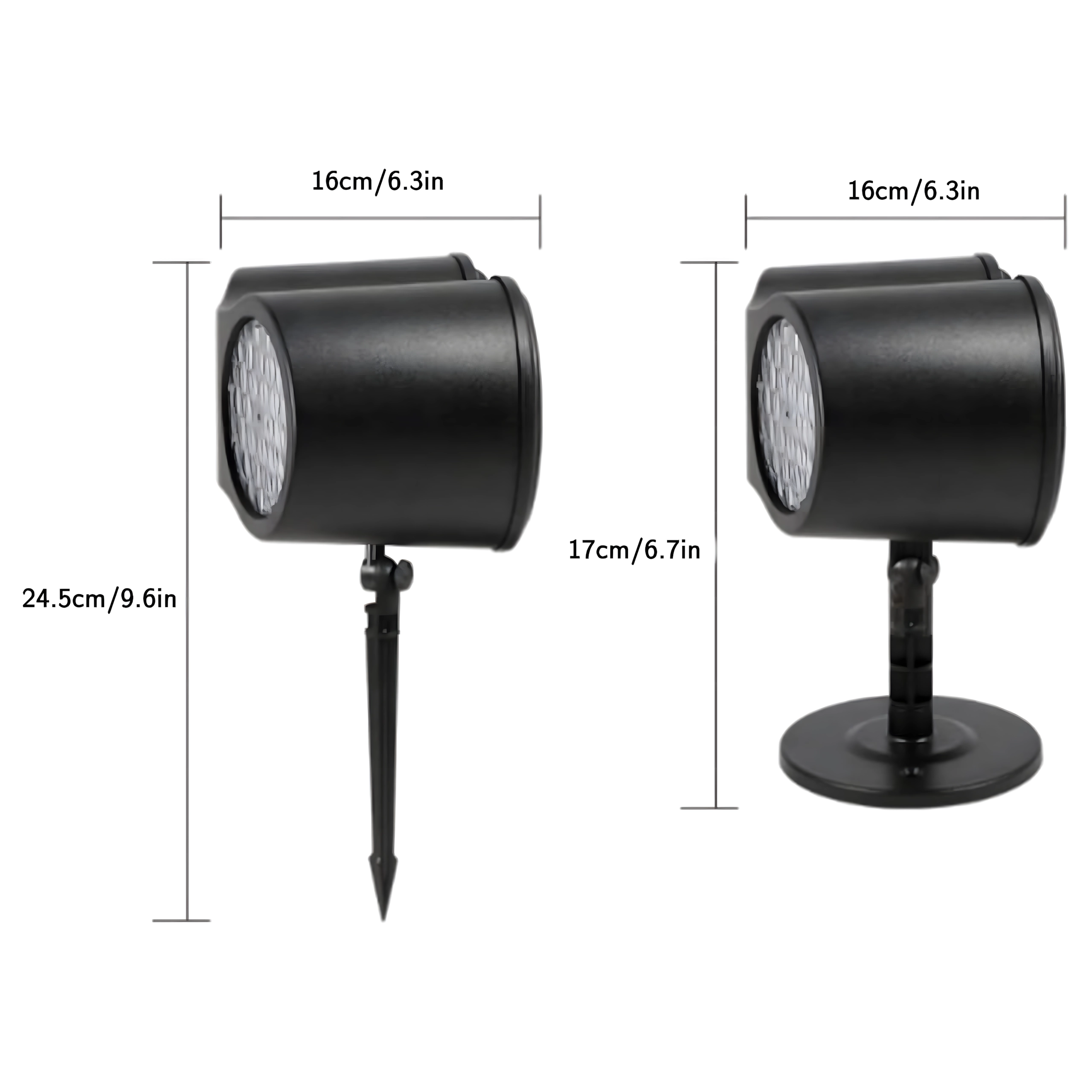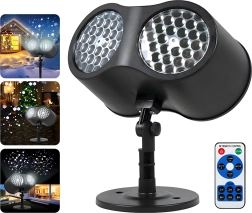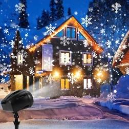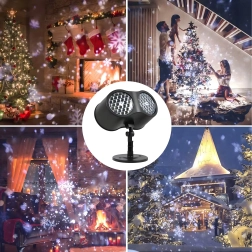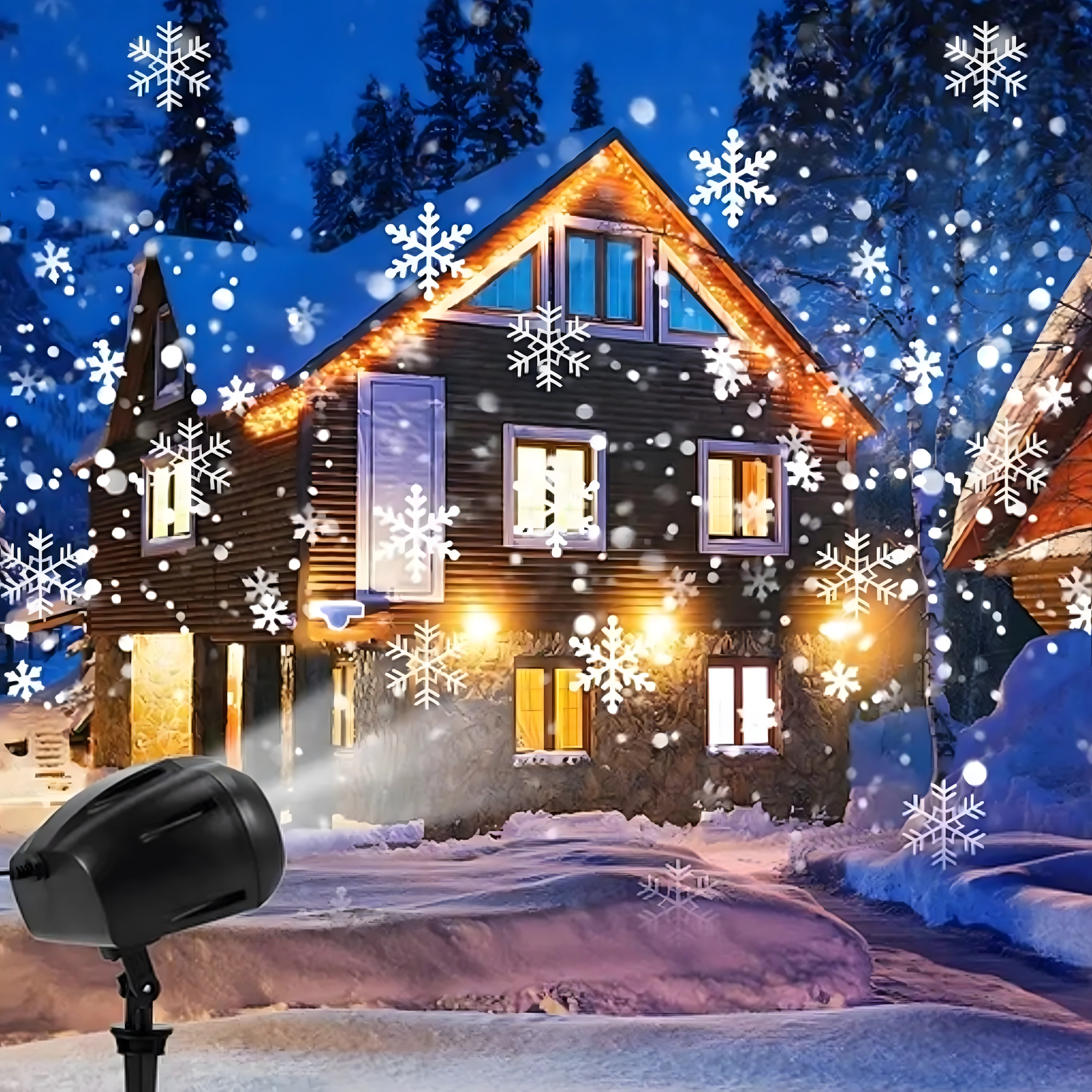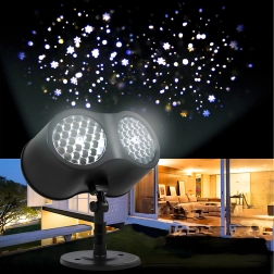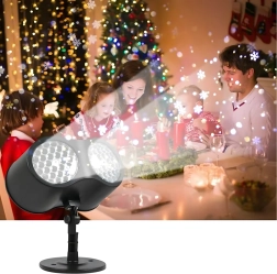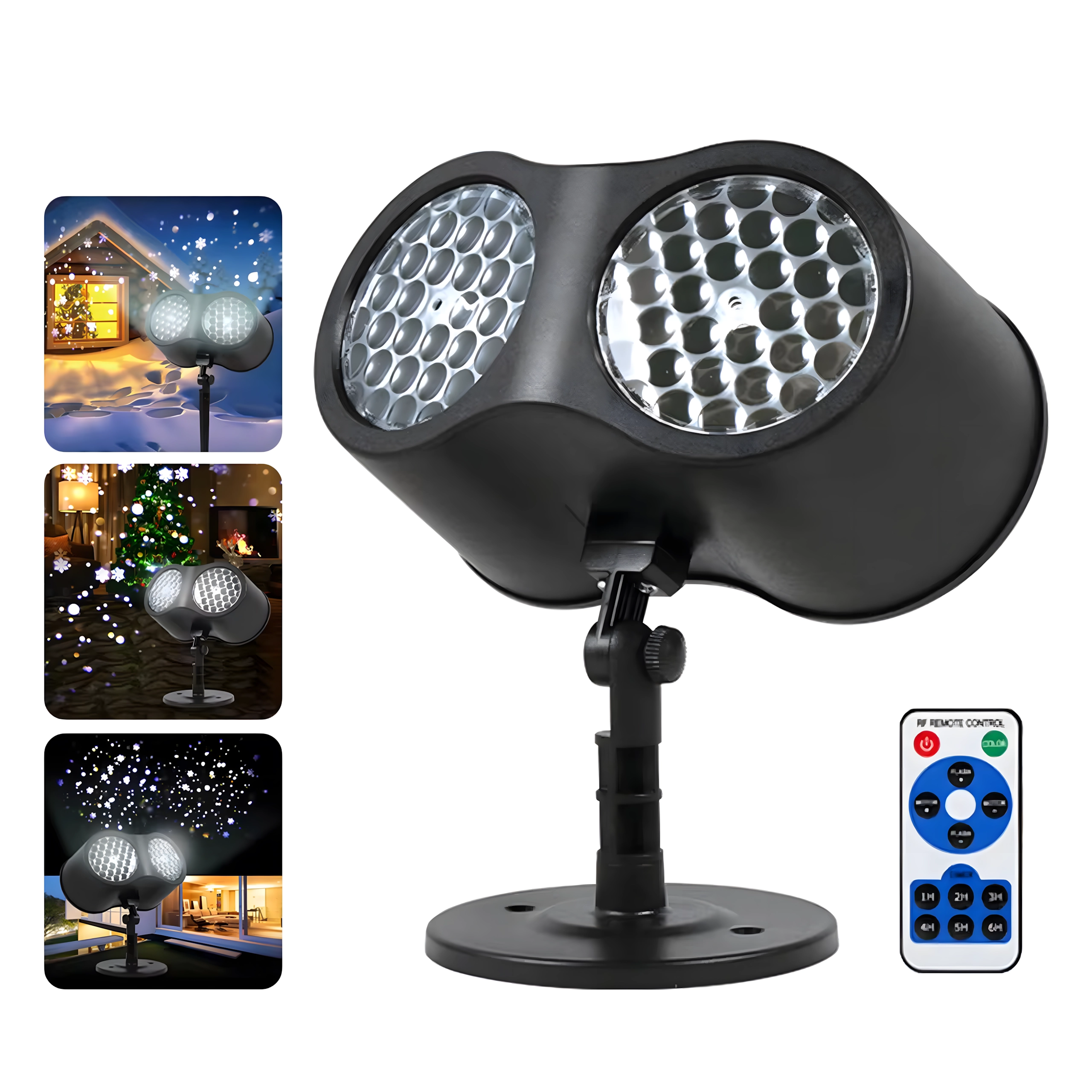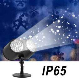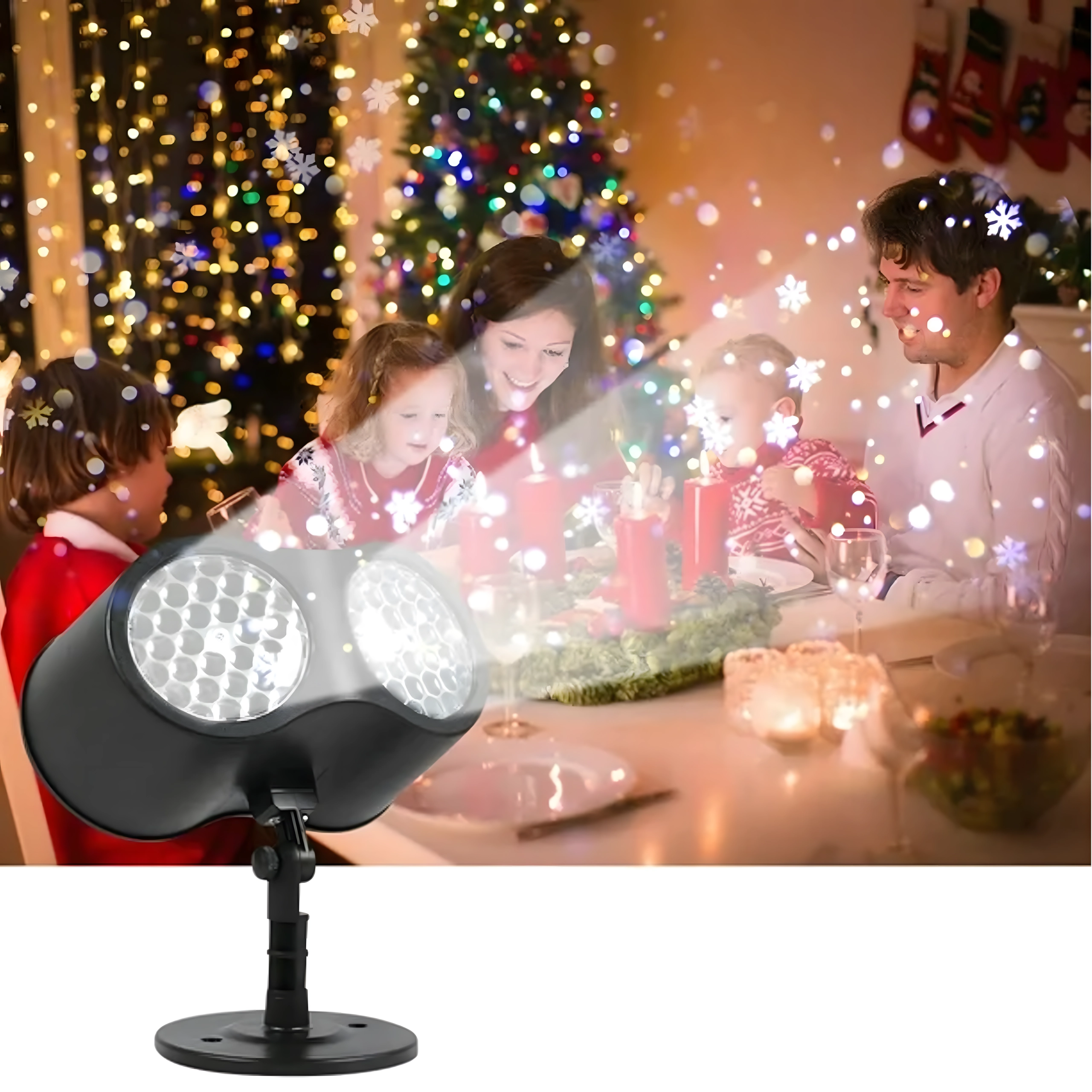 La double optique LED projette des flocons et des points lumineux nets et dynamiques sur de grandes surfaces de murs et de façades – idéal pour une déco festive rapide sans échelles ni guirlandes.