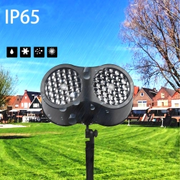 Grâce à l’indice IP65, le projecteur est prêt pour l’hiver – il résiste à la pluie, à la neige et au gel. Le support réglable et le piquet de sol facilitent l’installation au jardin, tandis que la base stable est idéale en intérieur. Avec la télécommande (portée jusqu’à 25 m), changez les effets et réglez la minuterie 2–4–6 heures sans avoir à sortir.