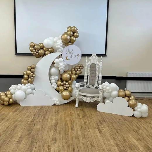 Cette élégante guirlande de ballons, mêlant blanc, or et transparent, transforme tout espace en scène festive. Grâce à un mix de ballons bien pensé, vous créez facilement une décoration qui impressionnera vos invités et ressortira à merveille sur les photos.
