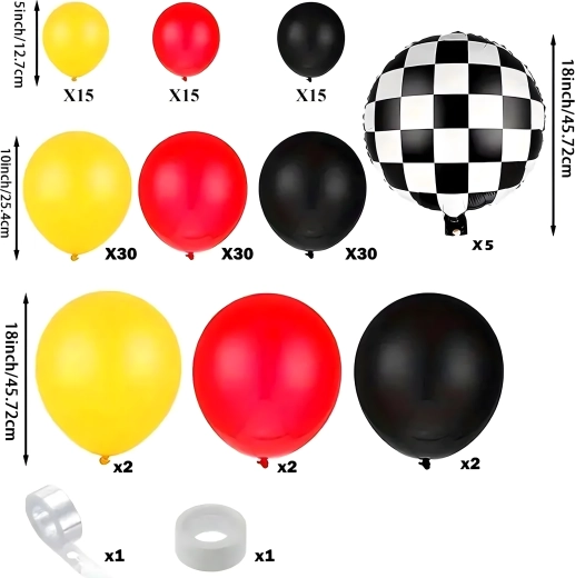 La guirlande de ballons inspirée des courses et du drapeau à damier transforme tout espace en piste dynamique. Le set contient tout le nécessaire pour un assemblage rapide et simple d’une décoration qui impressionnera les invités dès leur arrivée. Idéal pour les anniversaires, fêtes à thème, événements scolaires et réunions de famille.