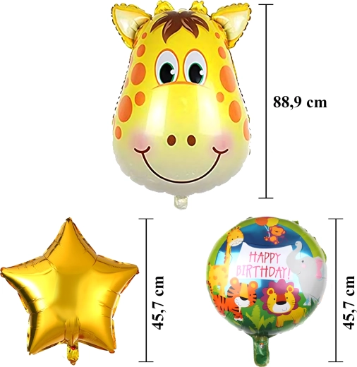 Créez une atmosphère inoubliable pour un anniversaire grâce à ce set ludique de ballons à motif animalier. La combinaison de la girafe, des inscriptions d’anniversaire et des petites étoiles dorées apporte une touche moderne à la décoration et illumine n’importe quelle pièce.