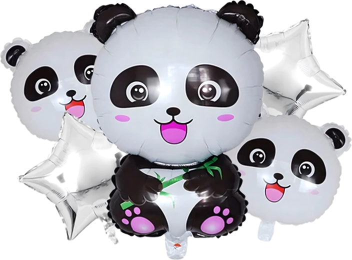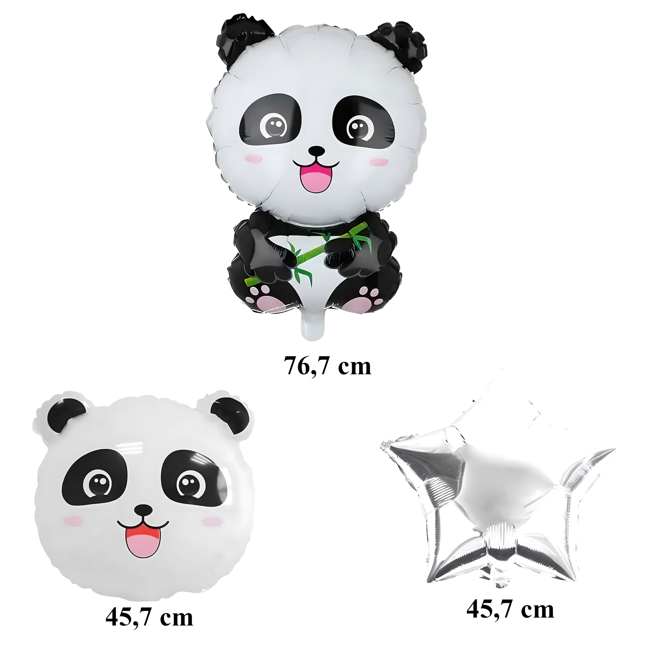 1× ballon panda, 2× ballon avec l’inscription HAPPY BIRTHDAY, 2× étoile argentée