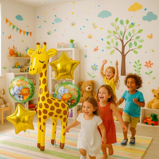 Set de ballons d’anniversaire girafe, animaux, 5 pcs