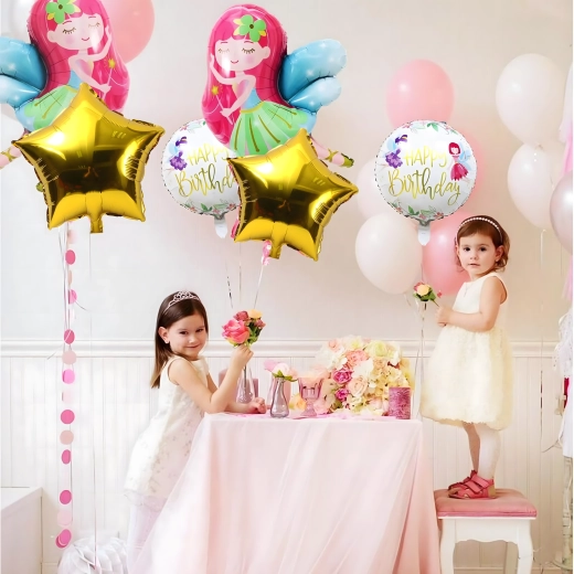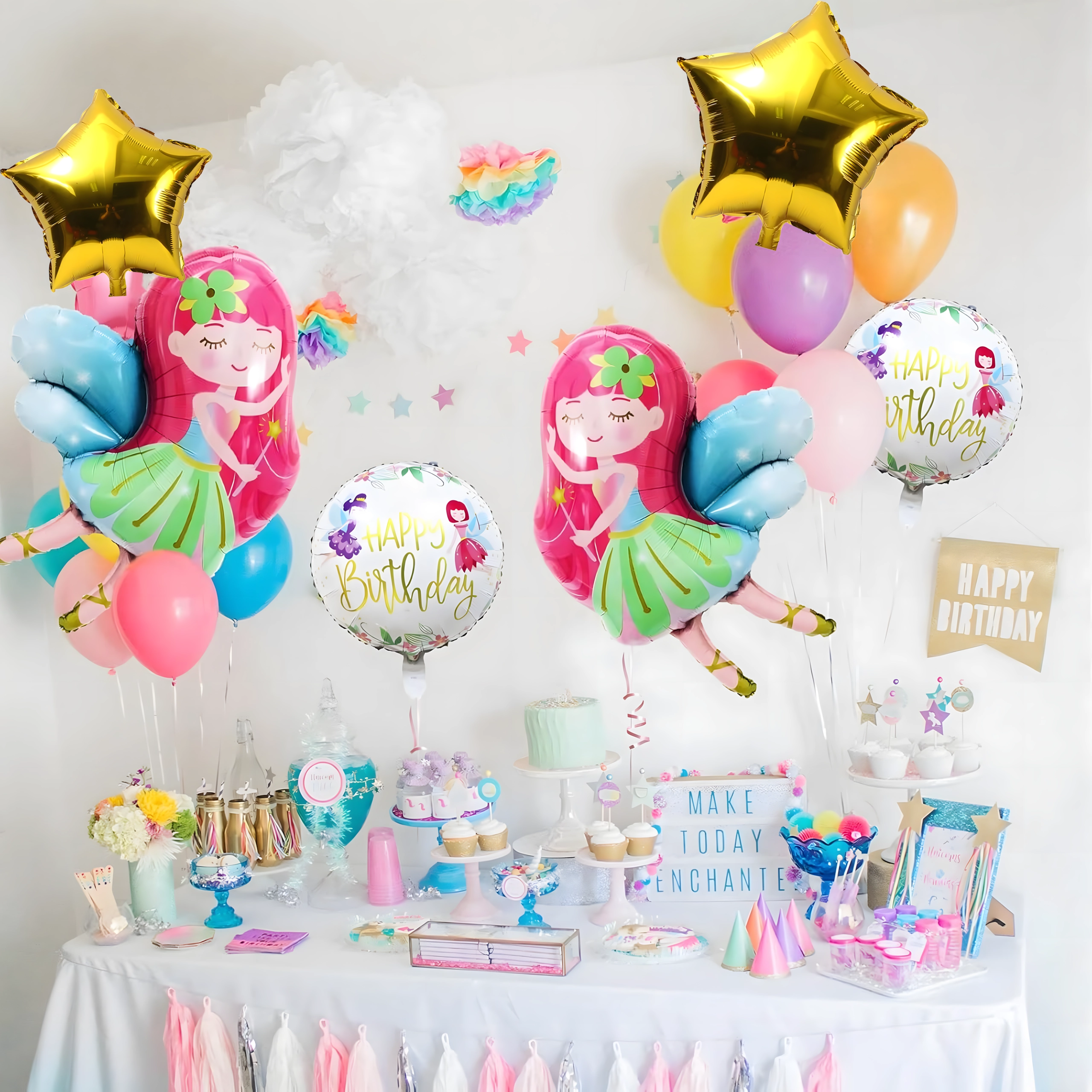 Ce set de ballons féerique avec une fée crée une ambiance unique pour toute célébration. La combinaison d’un grand ballon en forme de fée et de ballons ronds et étoilés complémentaires assure une décoration spectaculaire sans effort.