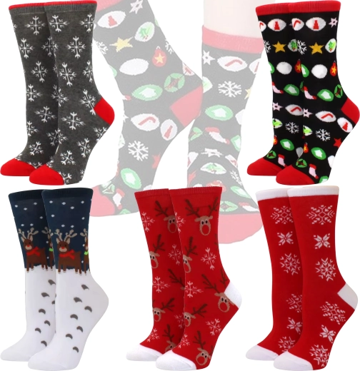 Complétez votre garde-robe avec des chaussettes ludiques et confortables aux motifs festifs. Grâce au coton de qualité, elles sont douces, respirantes et adaptées à un usage quotidien. Les motifs colorés s’associent parfaitement aux tenues hivernales et leur apportent une ambiance de Noël.