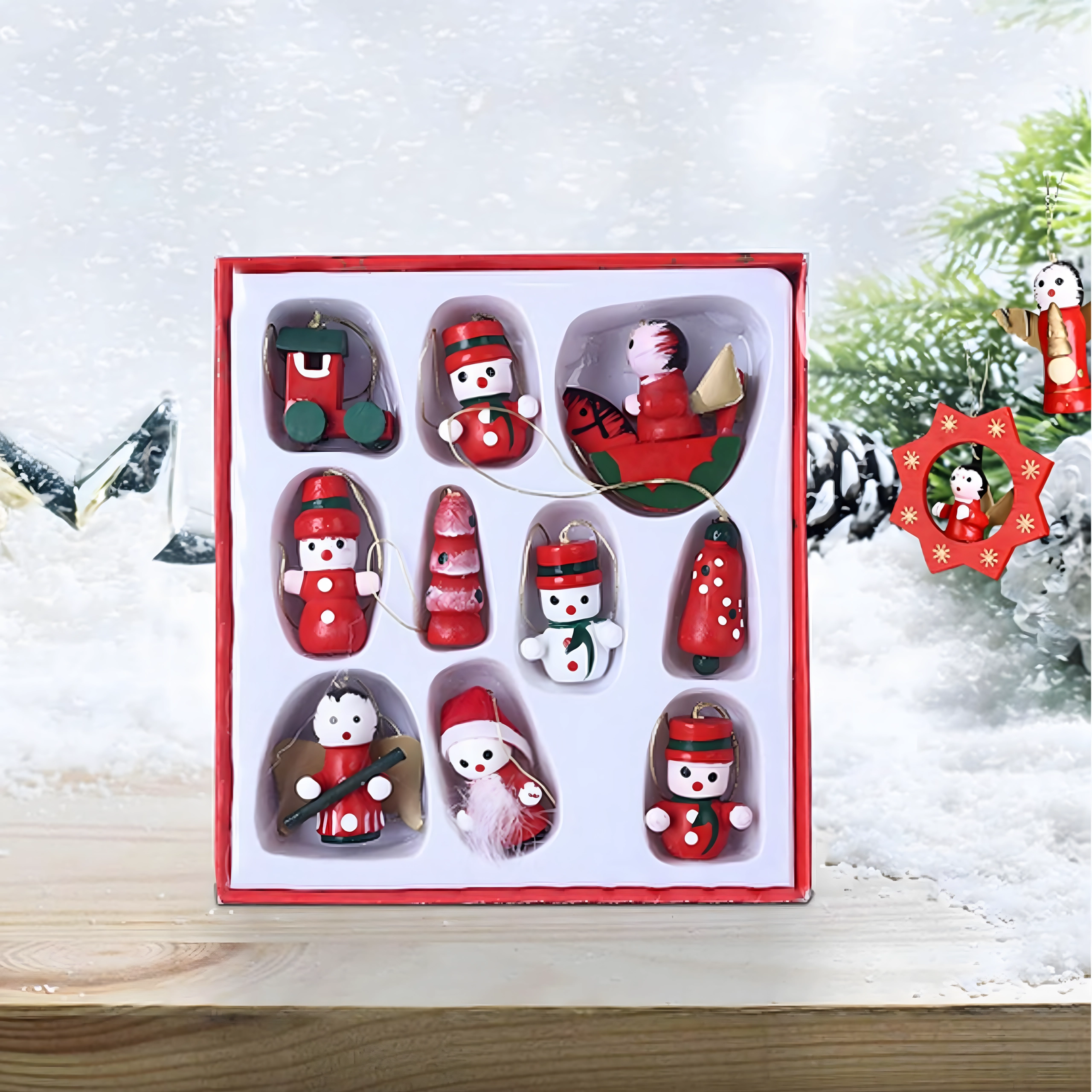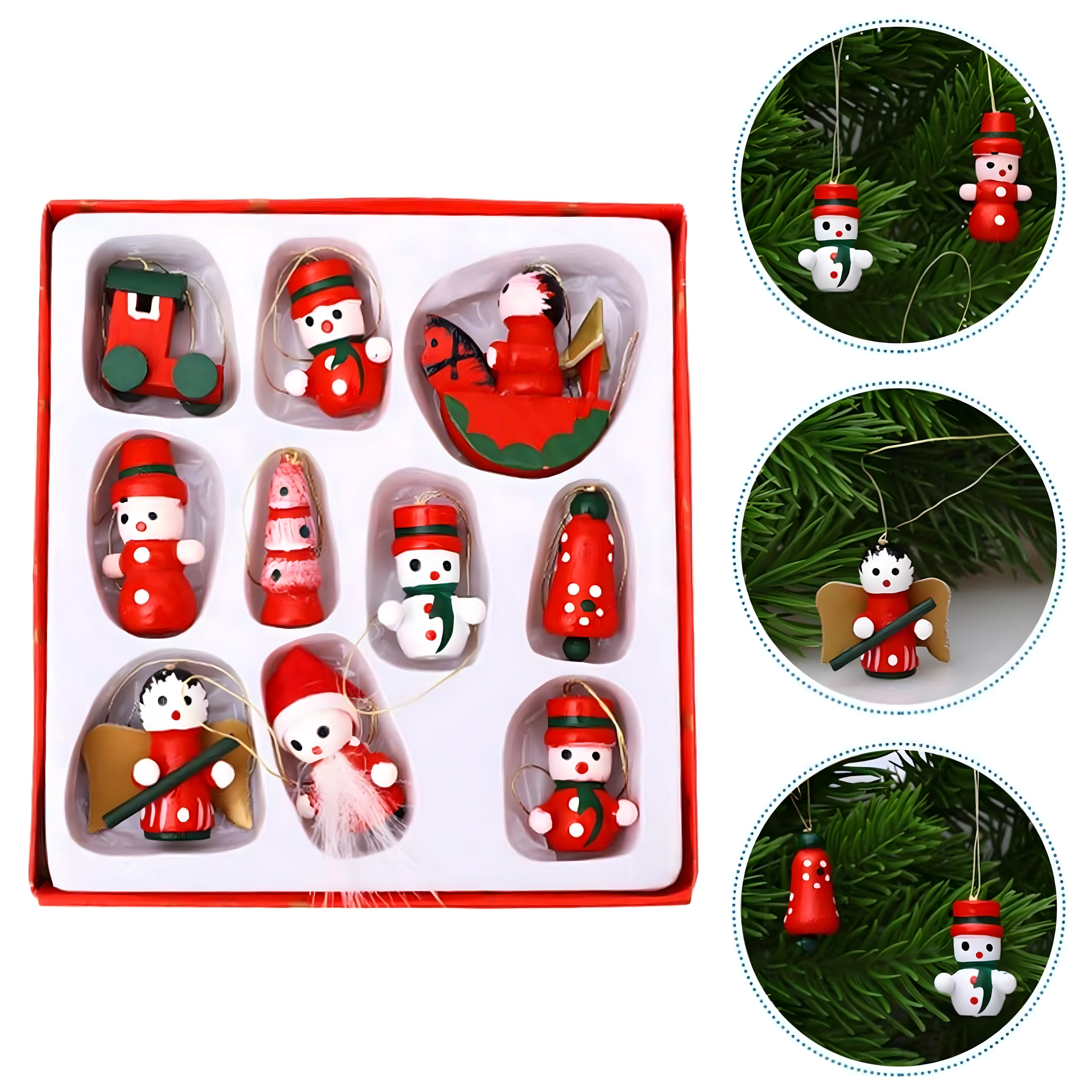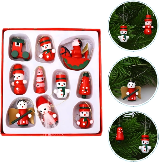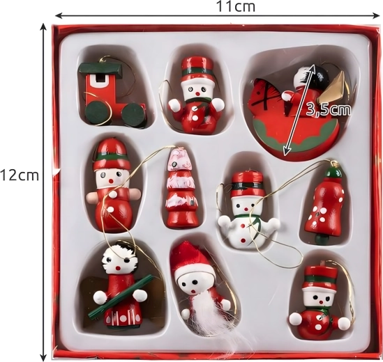 Lot de 10 suspensions de Noël en bois est une décoration intemporelle qui apporte de la magie à tout sapin et à toute ambiance festive. Elles sont fabriquées en bois léger et incassable, donc sans danger pour les enfants et les animaux de compagnie. Les motifs variés – botte, Père Noël, sapin, ange, cloche et autres – créent à la maison une atmosphère chaleureuse et festive.