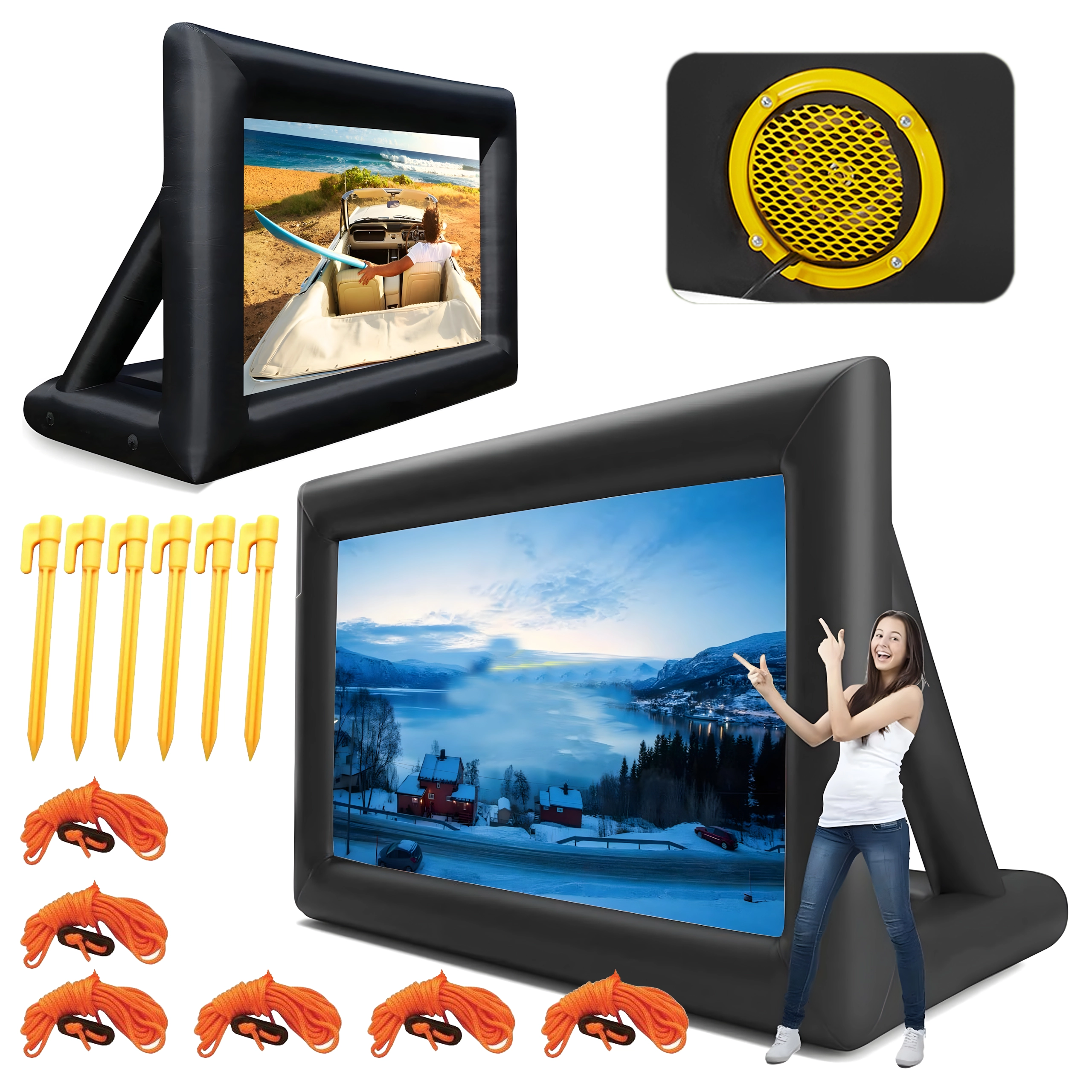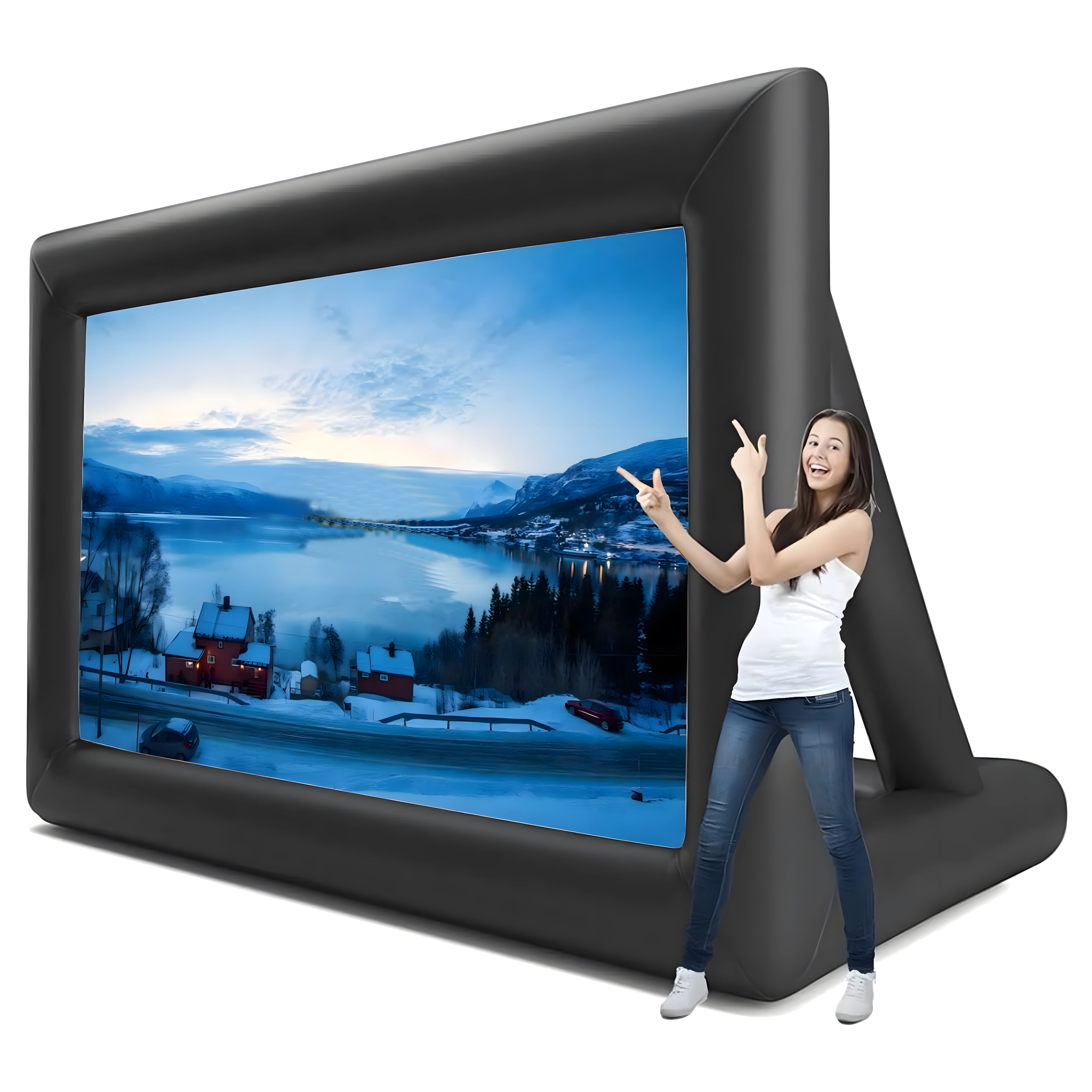 Profitez de soirées cinéma à la belle étoile avec ce grand écran de projection gonflable. Idéal pour le cinéma en plein air, les fêtes, les présentations et les événements publics. Il offre projection avant et arrière, une installation rapide et facile et est fabriqué à partir de matériaux durables pour une longue durée de vie et un transport pratique.