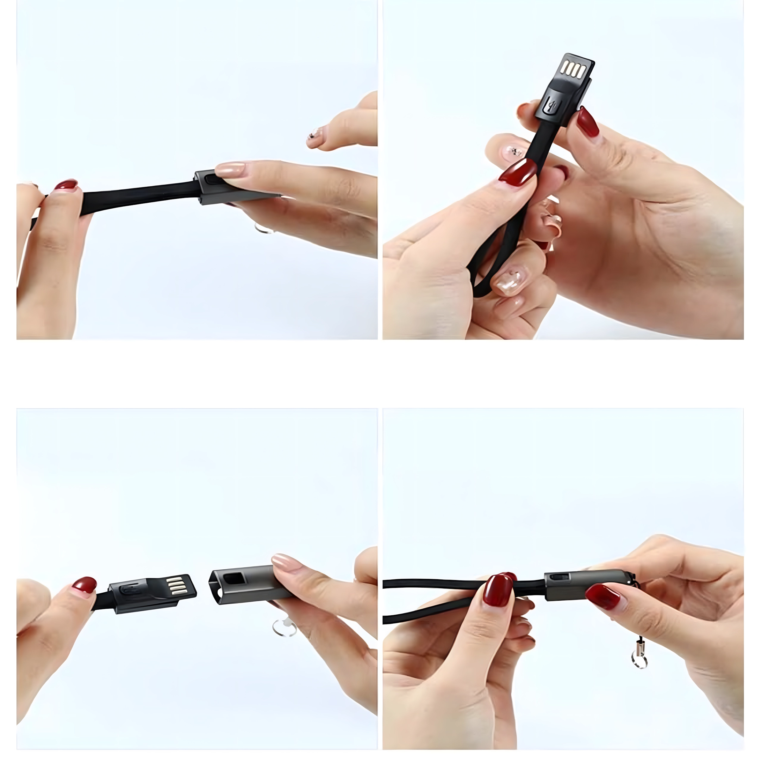 Câble porte-clés et cordon USB‑C vers USB‑A pour charge rapide et transfert de données