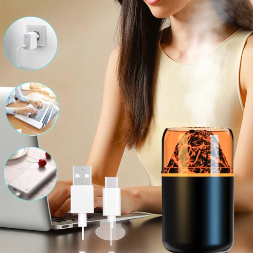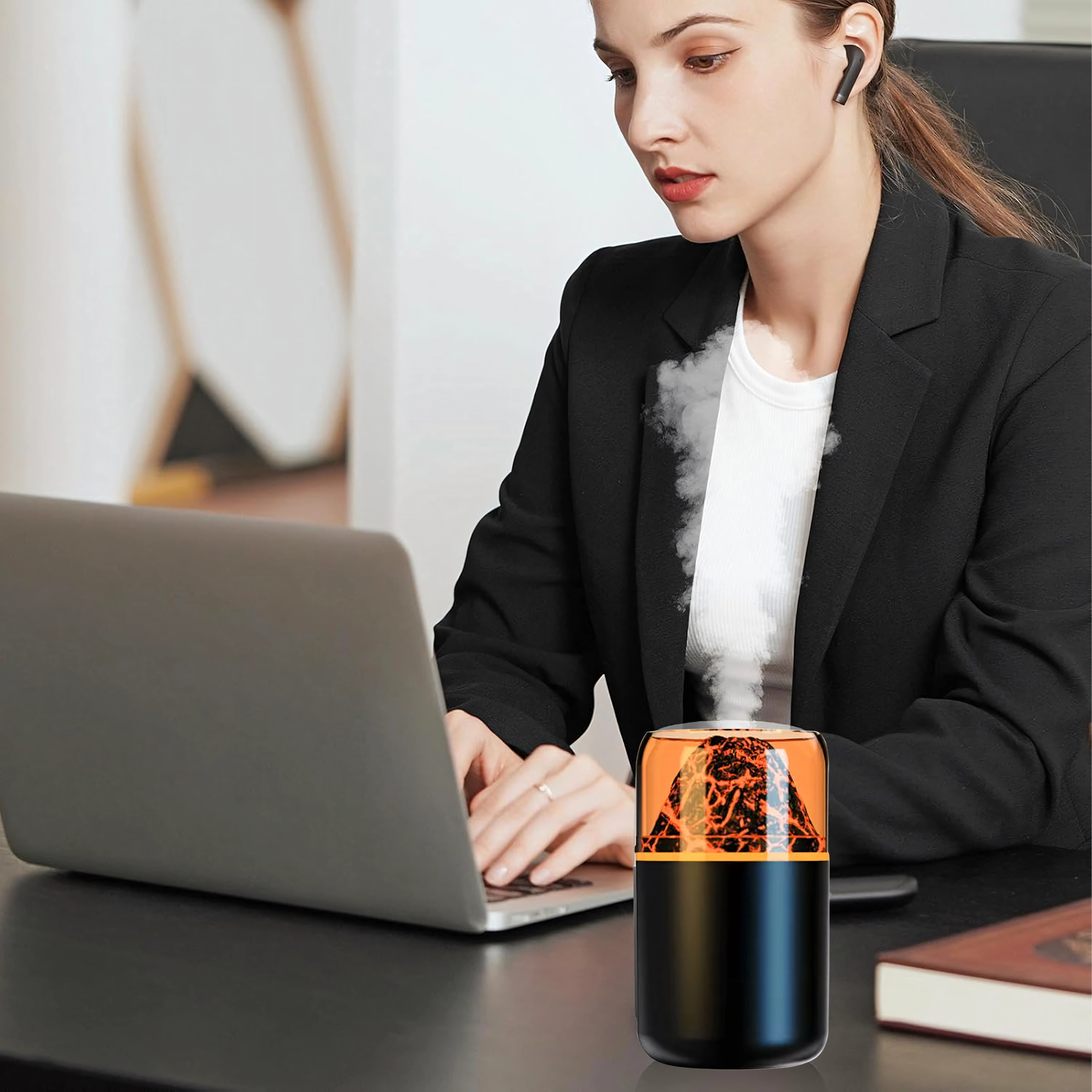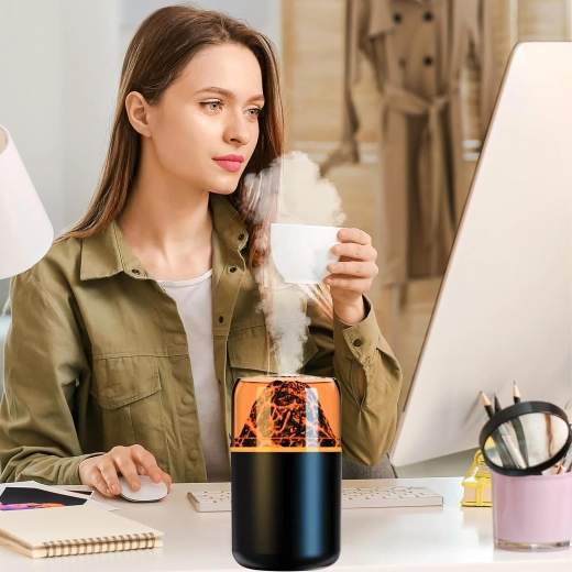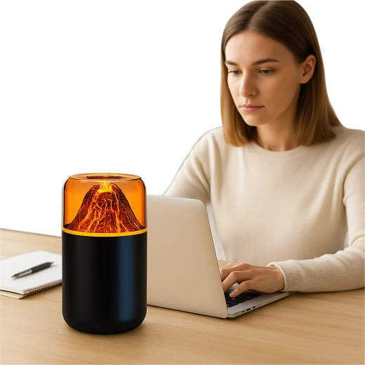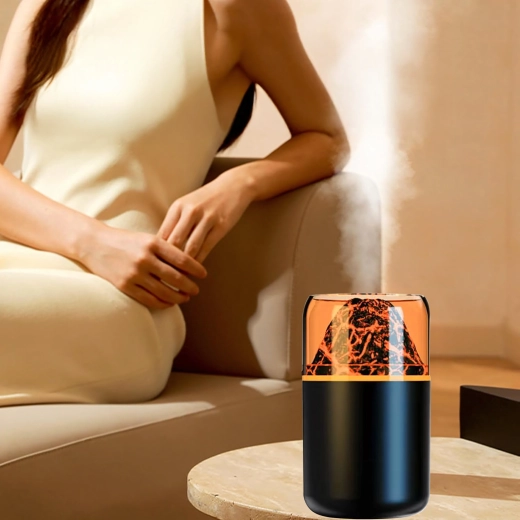 Vous cherchez un appareil qui non seulement humidifie efficacement l’air, mais embellit aussi votre espace ? Cet humidificateur moderne avec effet volcan crée une « lave » brumeuse réaliste, mise en valeur par une lumière LED, et transforme l’atmosphère de toute pièce. En ajoutant quelques gouttes d’huile essentielle, il sert également de diffuseur d’arômes.