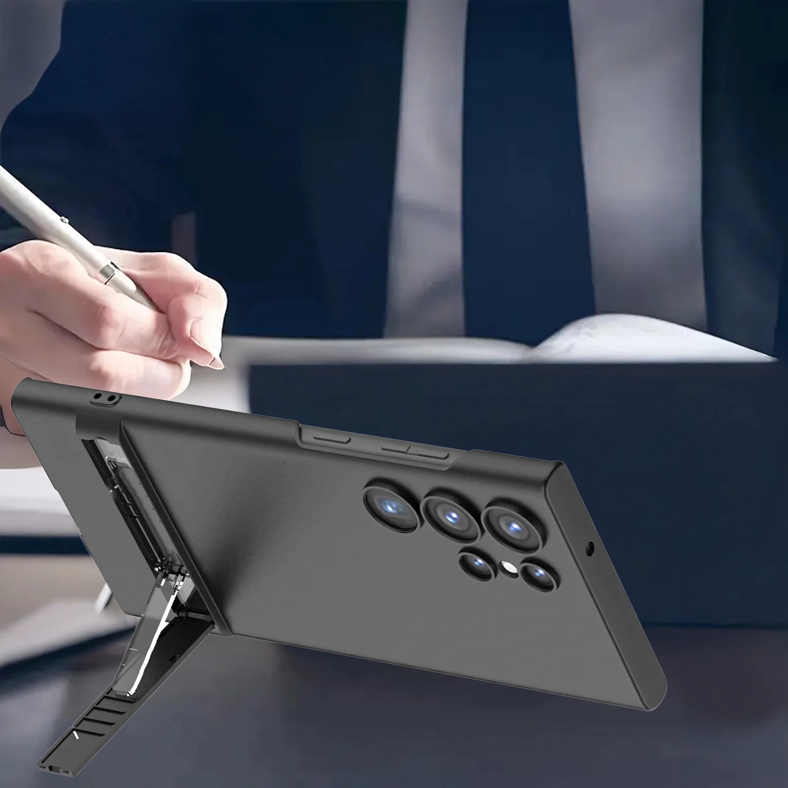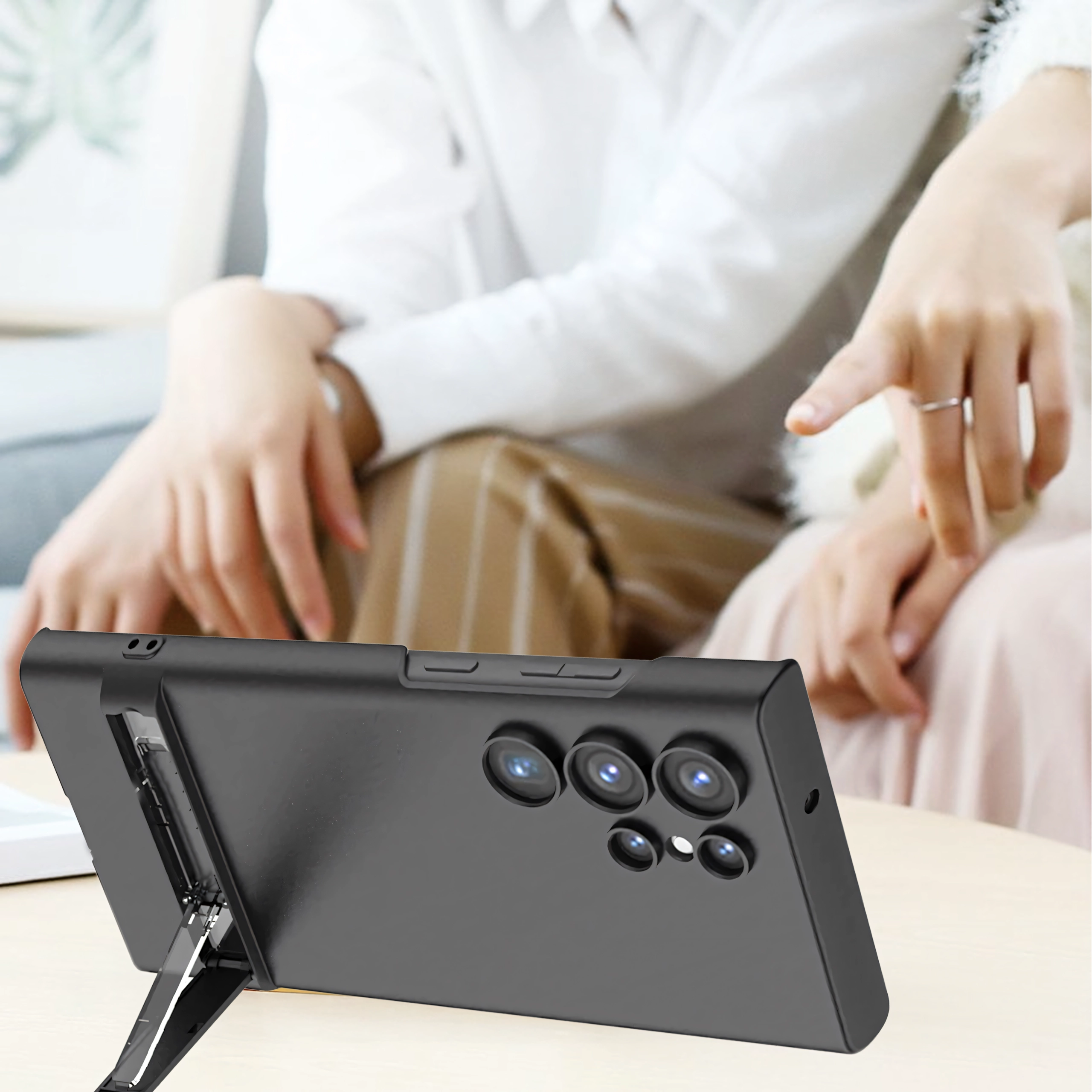 Le support intégré permet un visionnage confortable en mode paysage ou portrait, idéal pour les films, les jeux ou les appels vidéo. Des découpes précises garantissent un accès facile à tous les ports et boutons, afin d’utiliser le téléphone sans aucune limitation.