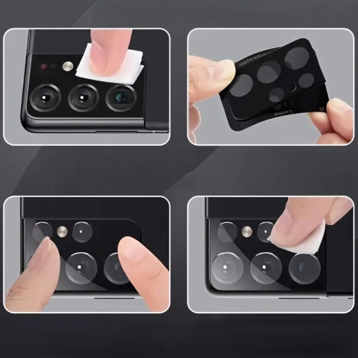 Offrez à l’appareil photo de votre SAMSUNG Galaxy S24 Ultra une protection de premier ordre. Le verre trempé d’une dureté 9H recouvre l’ensemble du bloc de lentilles, adhère parfaitement à la surface et ne perturbe ni le design ni la fonctionnalité. Sa transparence cristalline garantit une qualité irréprochable des photos et des vidéos sans distorsion.