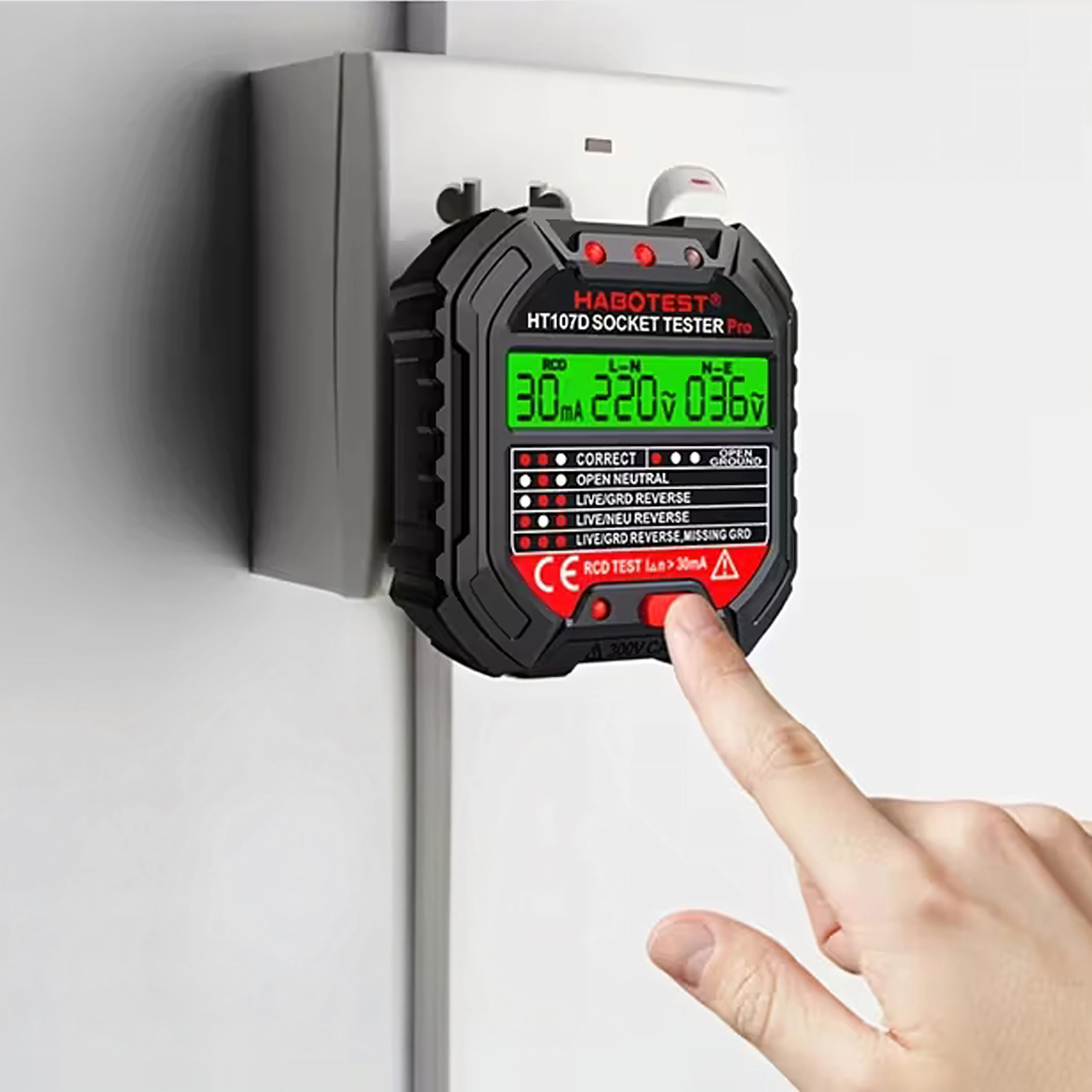 Testeur de tension de prise avec LCD et test RCD HABOTEST HT107D