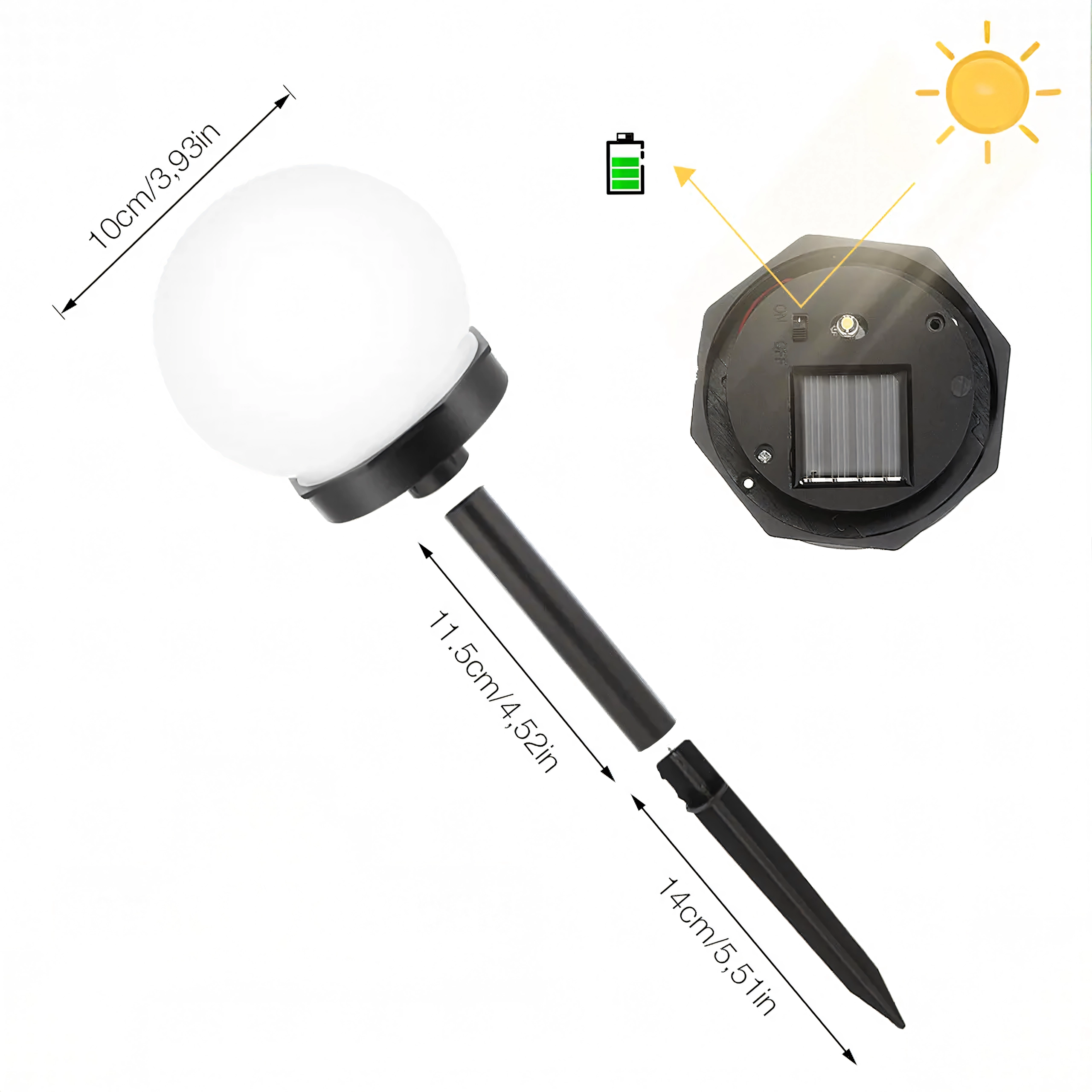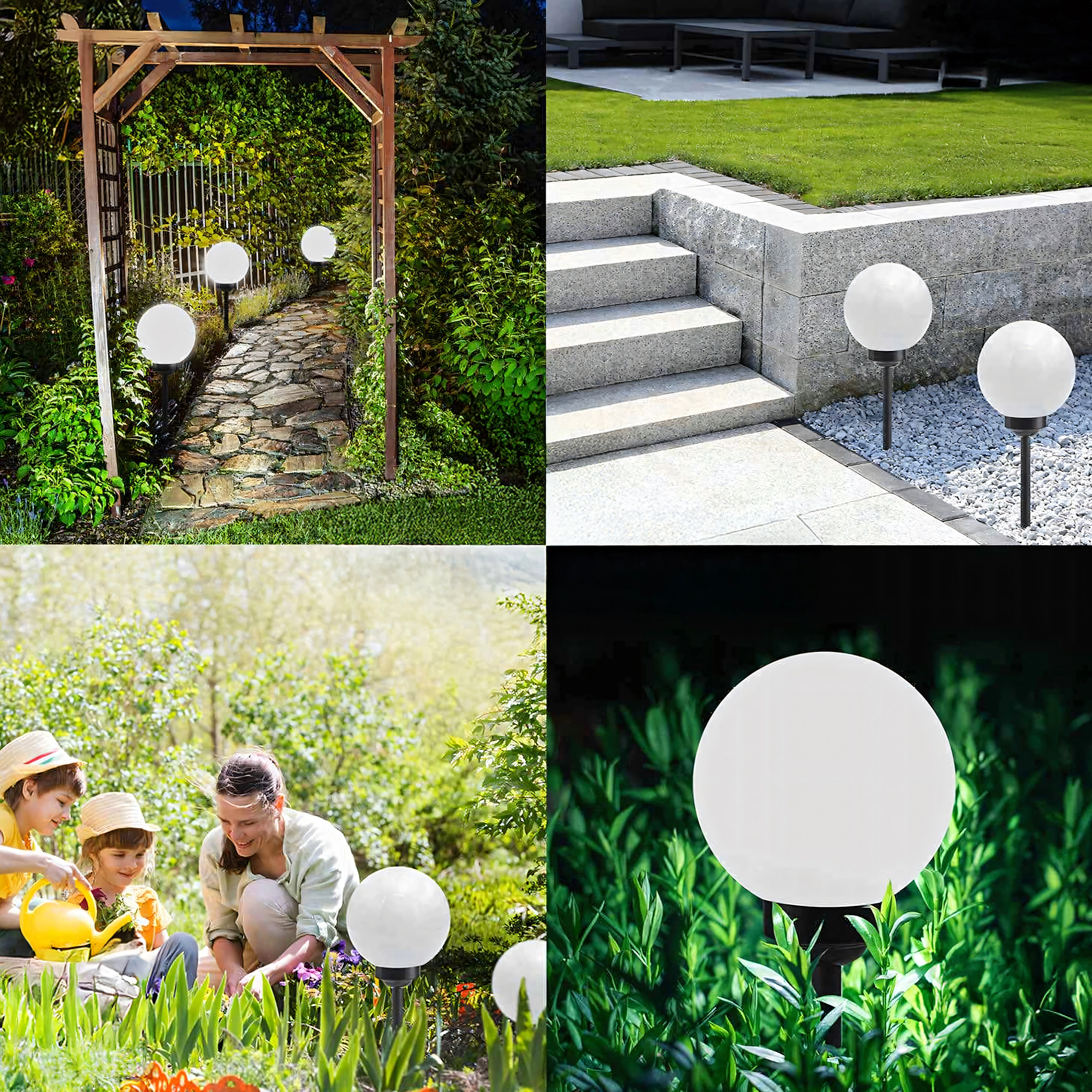 L’installation se fait en un instant : il suffit de les planter dans la terre ou dans un pot et d’actionner l’interrupteur ON/OFF. Leur diffuseur sphérique assure un éclairage uniforme à 360° des allées, massifs et espaces détente.