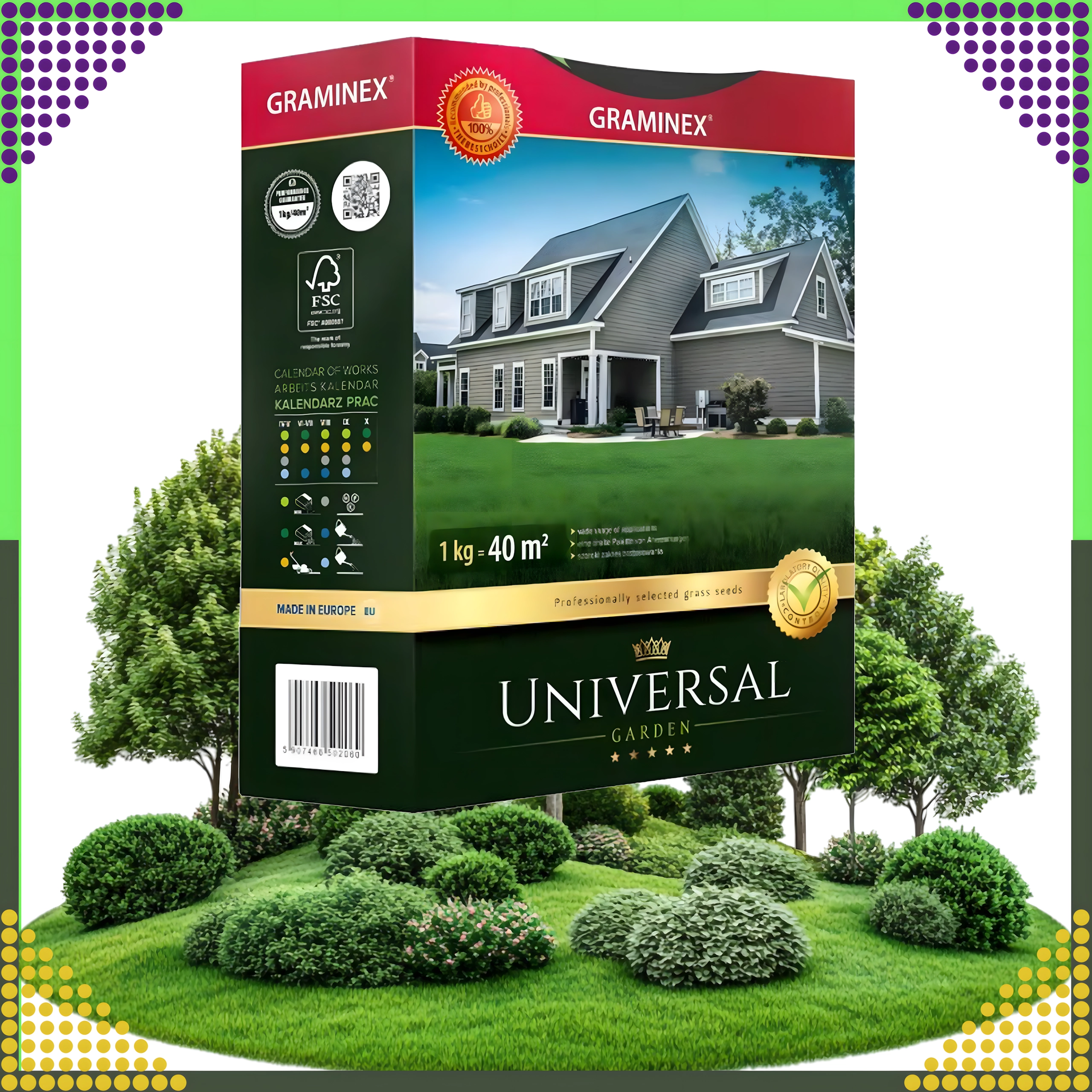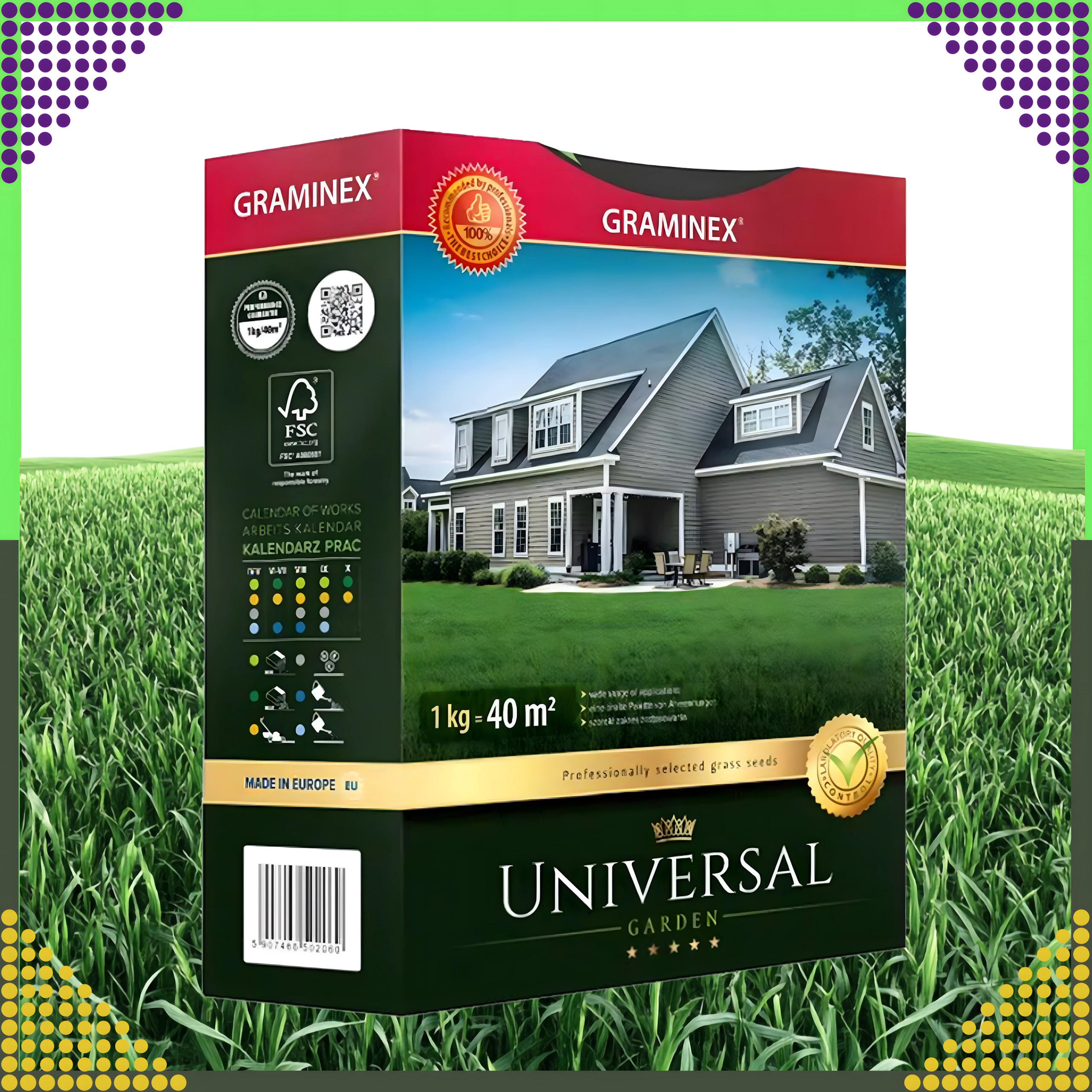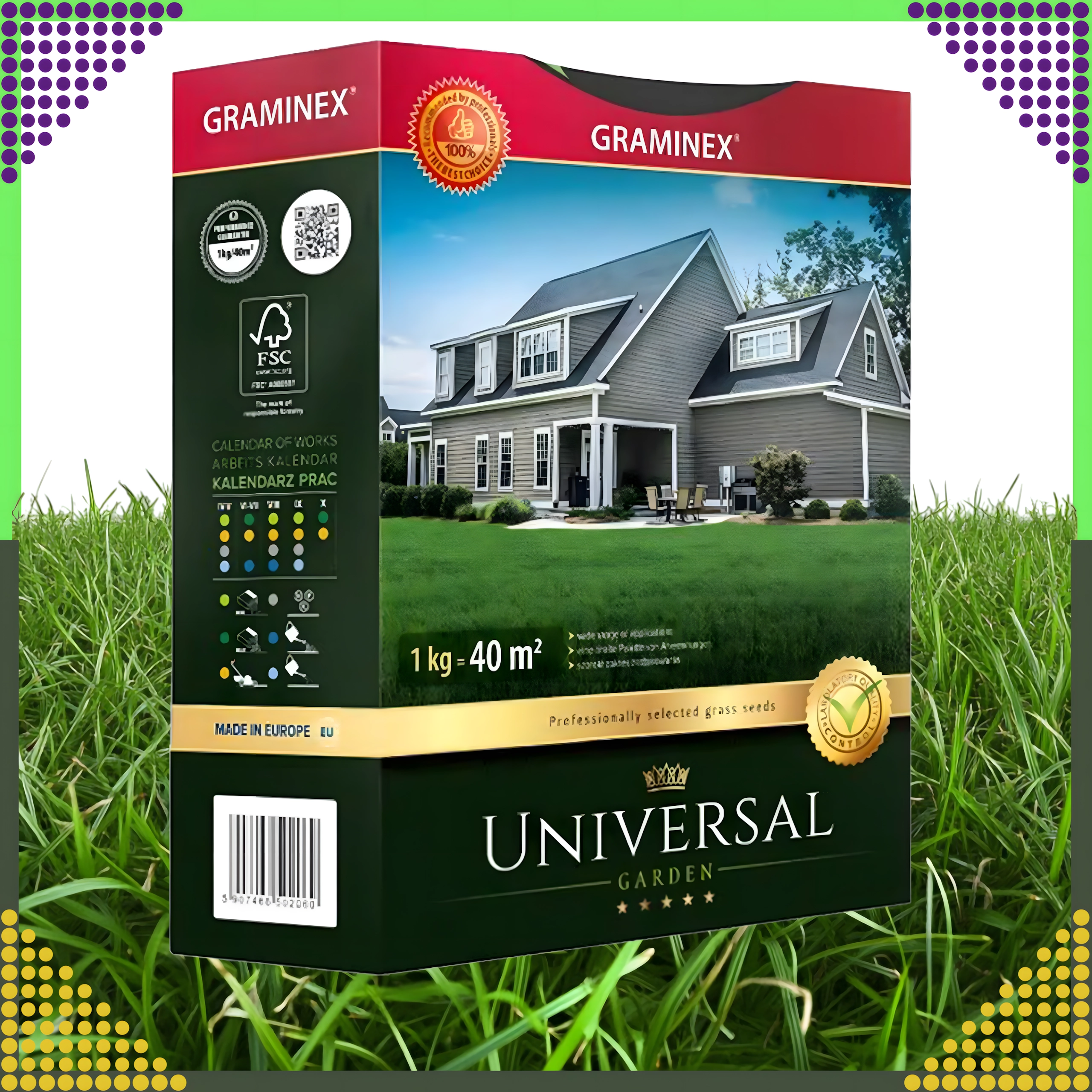Mélange universel de graines de gazon pour une pelouse dense, d’un vert soutenu, avec une haute résistance au piétinement et aux variations météo. Le paquet de 1 kg est idéal pour des surfaces d’environ 40 m², facile à entretenir et à croissance rapide pour une pelouse belle et fonctionnelle autour de la maison.