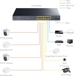 Vous cherchez un commutateur fiable pour alimenter et connecter des caméras IP, des points d’accès ou des téléphones VoIP ? Ce commutateur PoE+ gigabit 16 ports fournit jusqu’à 30 W par port et une puissance totale de 200 W, couvrant sans difficulté les installations exigeantes. Deux emplacements SFP gigabit permettent une liaison optique flexible sur de longues distances.