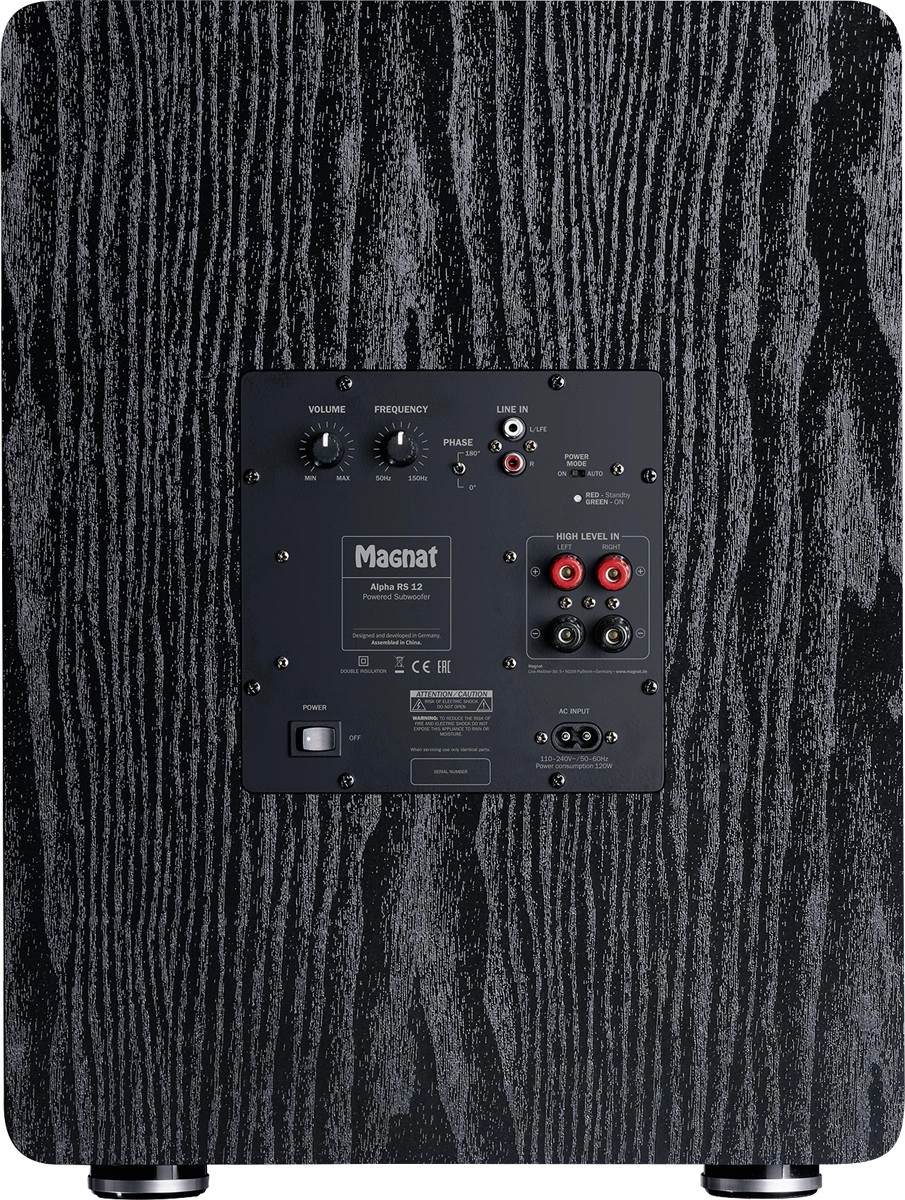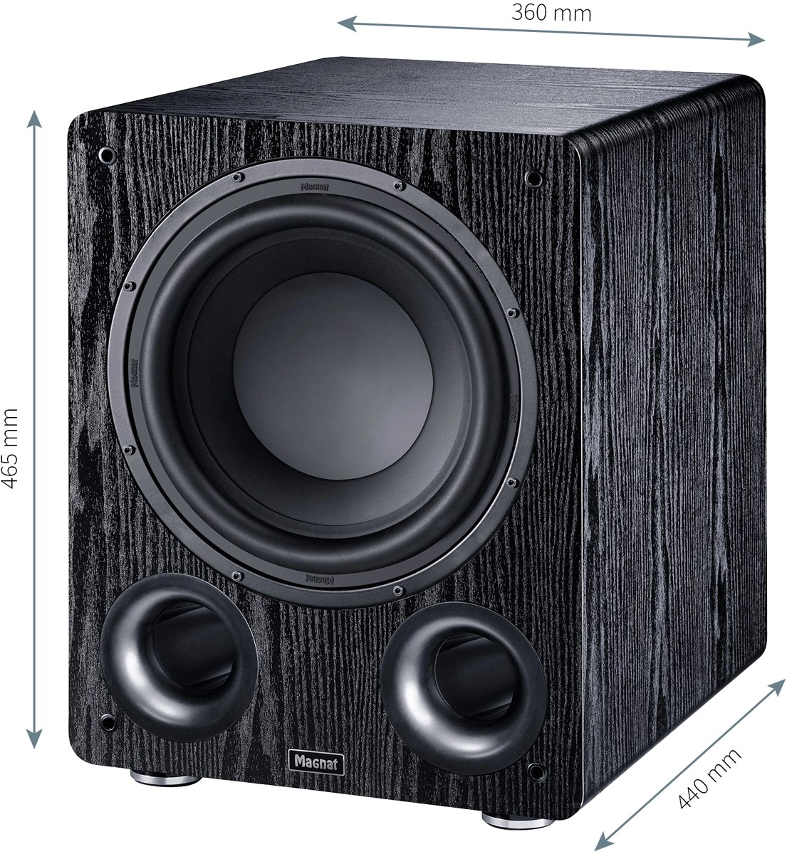 L’Alpha RS 12 de MAGNAT apporte des basses impressionnantes au home cinéma comme aux systèmes stéréo. L’amplificateur de classe D fournit 120 W RMS et 240 W en crête, tandis que le haut‑parleur de 300 mm avec membrane papier revêtue descend jusqu’à 20 Hz. Les évents Airflex doubles minimisent les turbulences et augmentent l’efficacité dans les basses fréquences.
