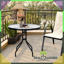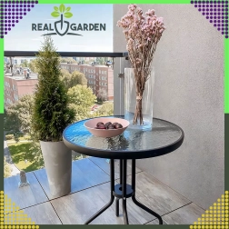 Le cadre robuste en acier avec revêtement par poudre apporte stabilité et protection contre la corrosion, ce qui rend la table idéale pour l’extérieur – balcon, terrasse, patio et jardin. Grâce à sa couleur noire universelle, elle s’harmonise avec la plupart des meubles de jardin et offre un look moderne et élégant.
