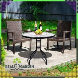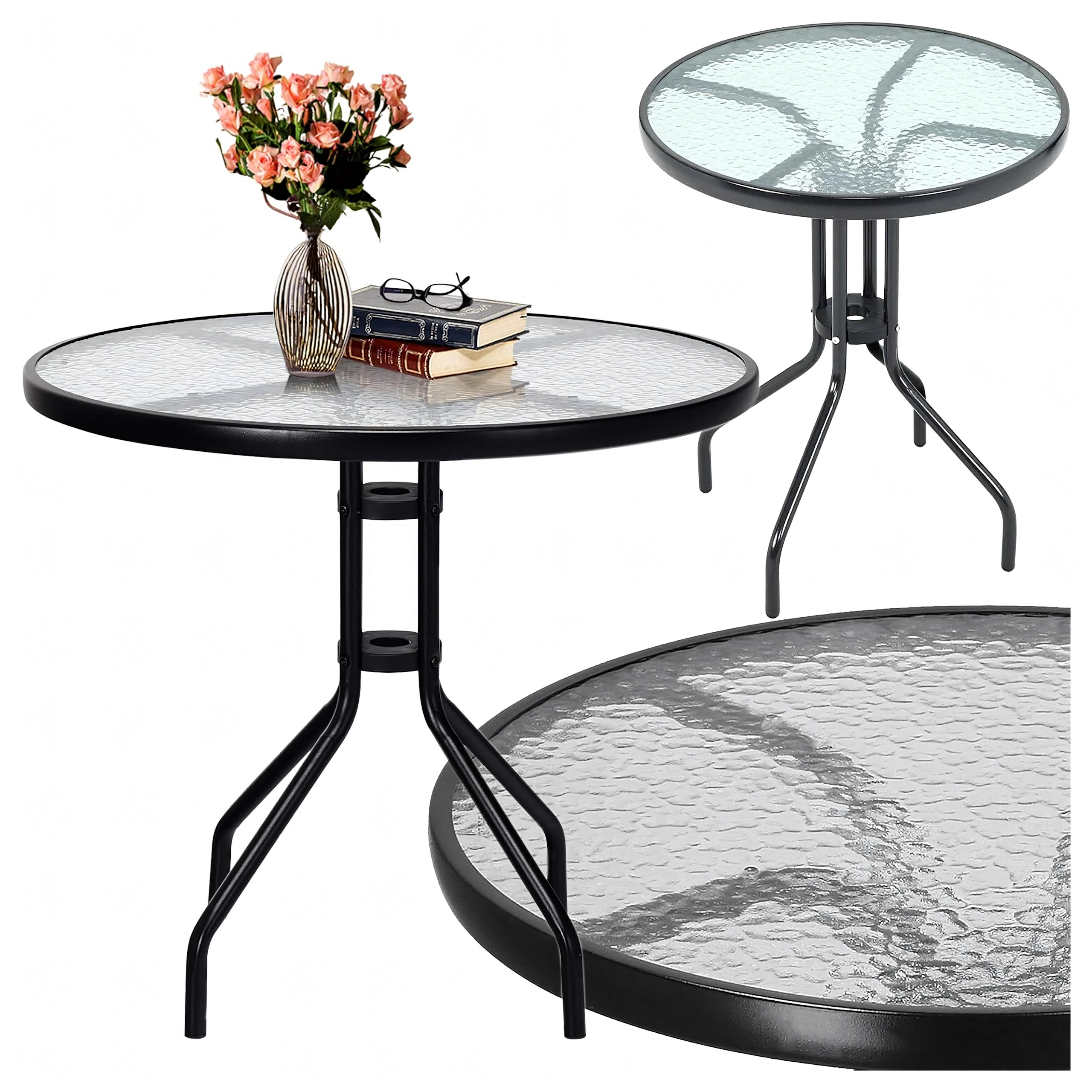 Apportez style et fonctionnalité à votre espace extérieur. La table ronde de 60 cm de diamètre est idéale pour le café du matin, le thé de l’après-midi ou la détente en soirée. Le verre trempé est sûr, facile à nettoyer et séduit par son effet décoratif rappelant les ondulations de l’eau.