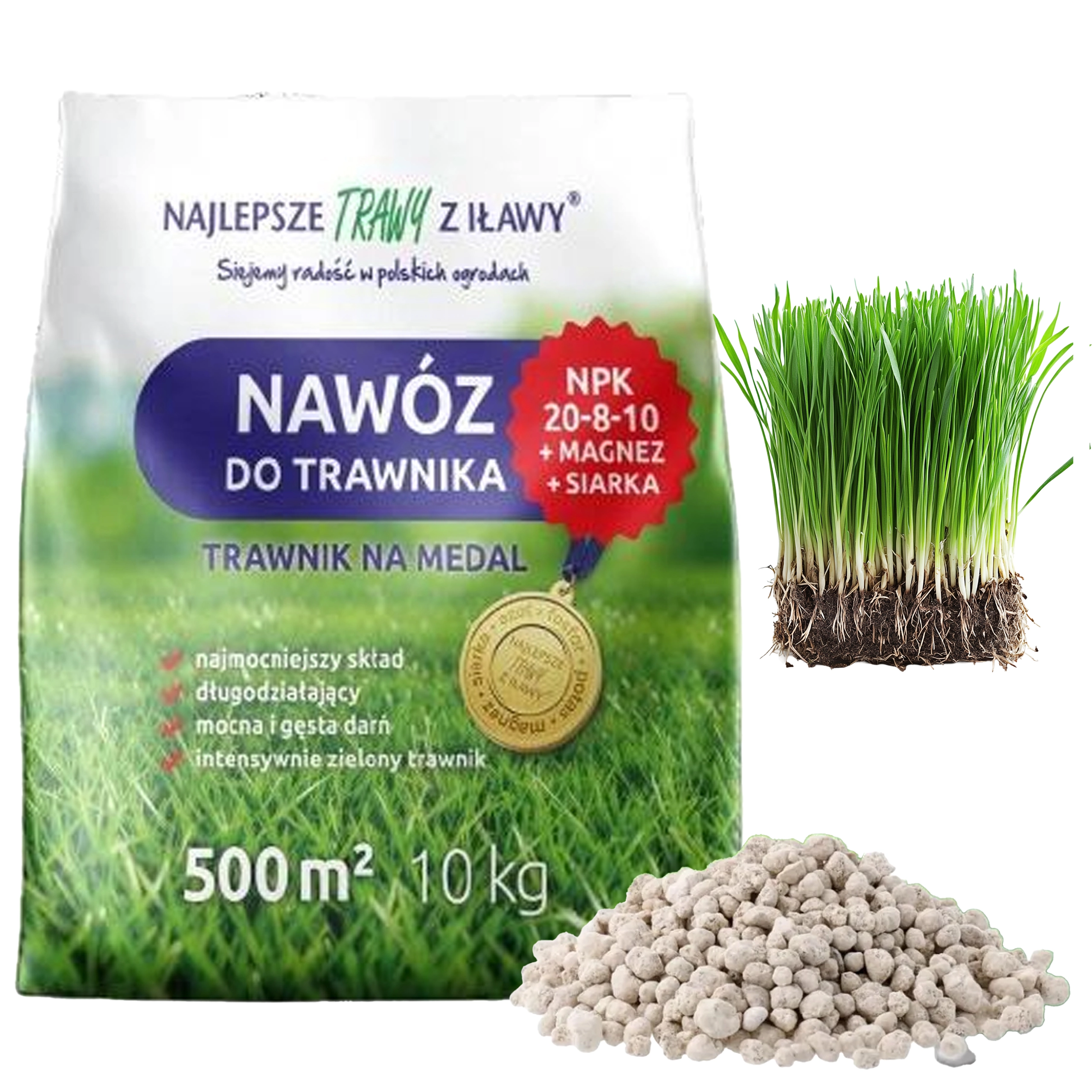 - Emballage 10 kg pour une surface jusqu’à env. 500 m² (selon l’état de la pelouse et le dosage).