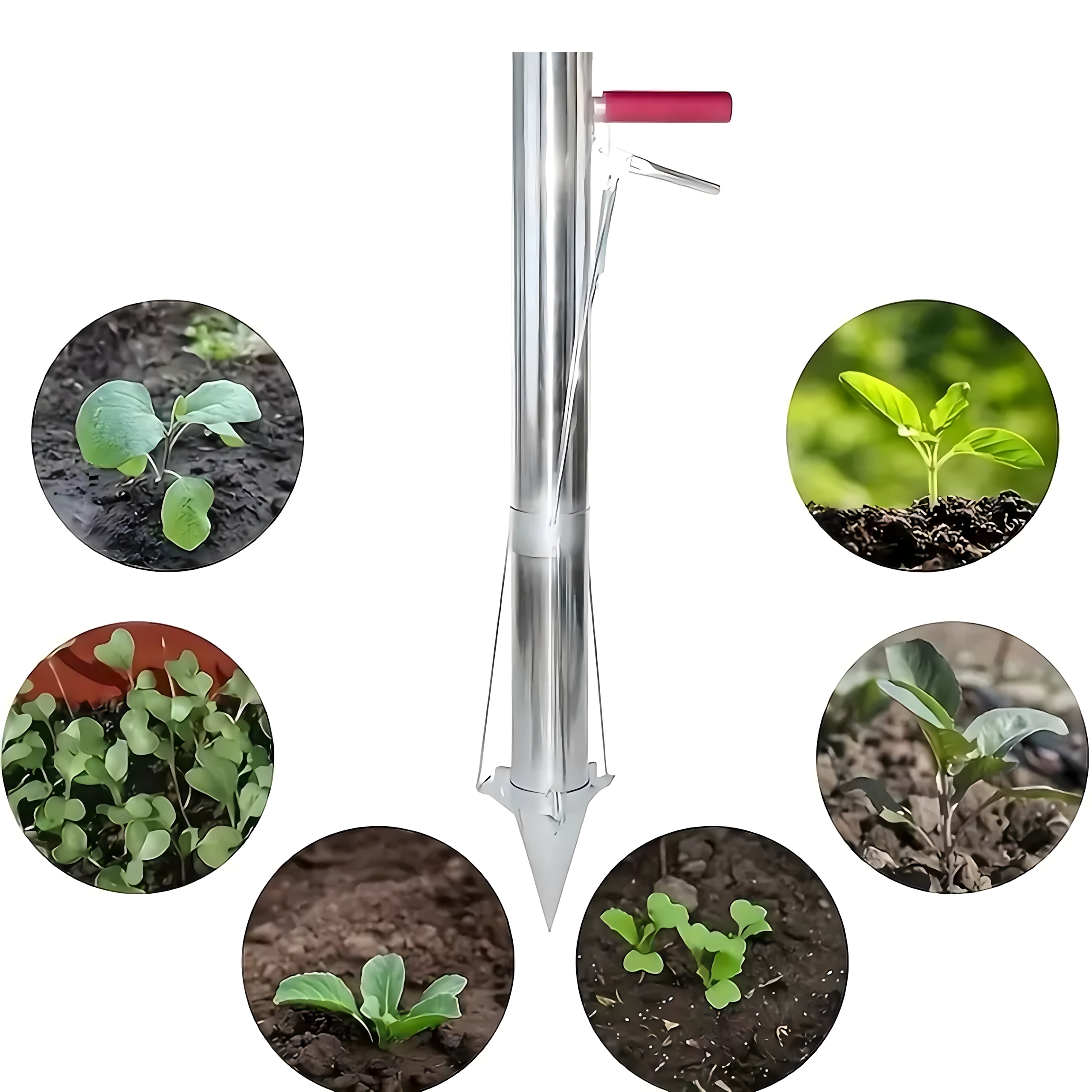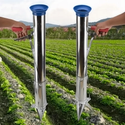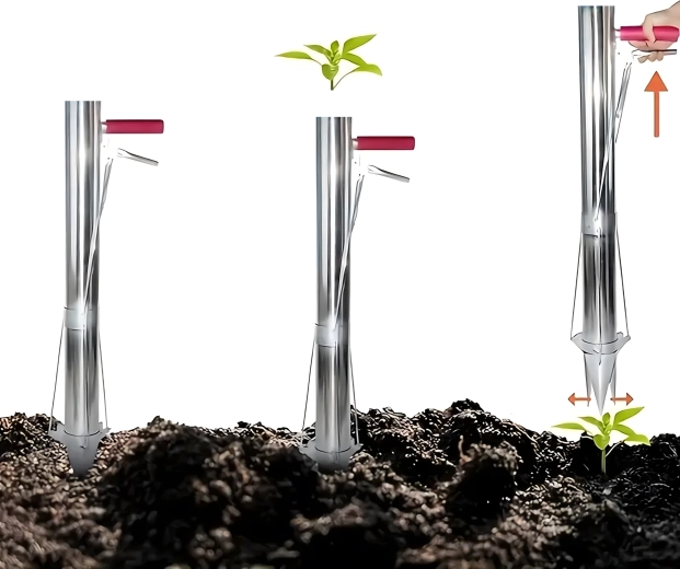 La pointe conique et le corps cylindrique créent un trou net en une seule pression, vous insérez le plant et, d’un mouvement de levier, vous relâchez facilement la terre.