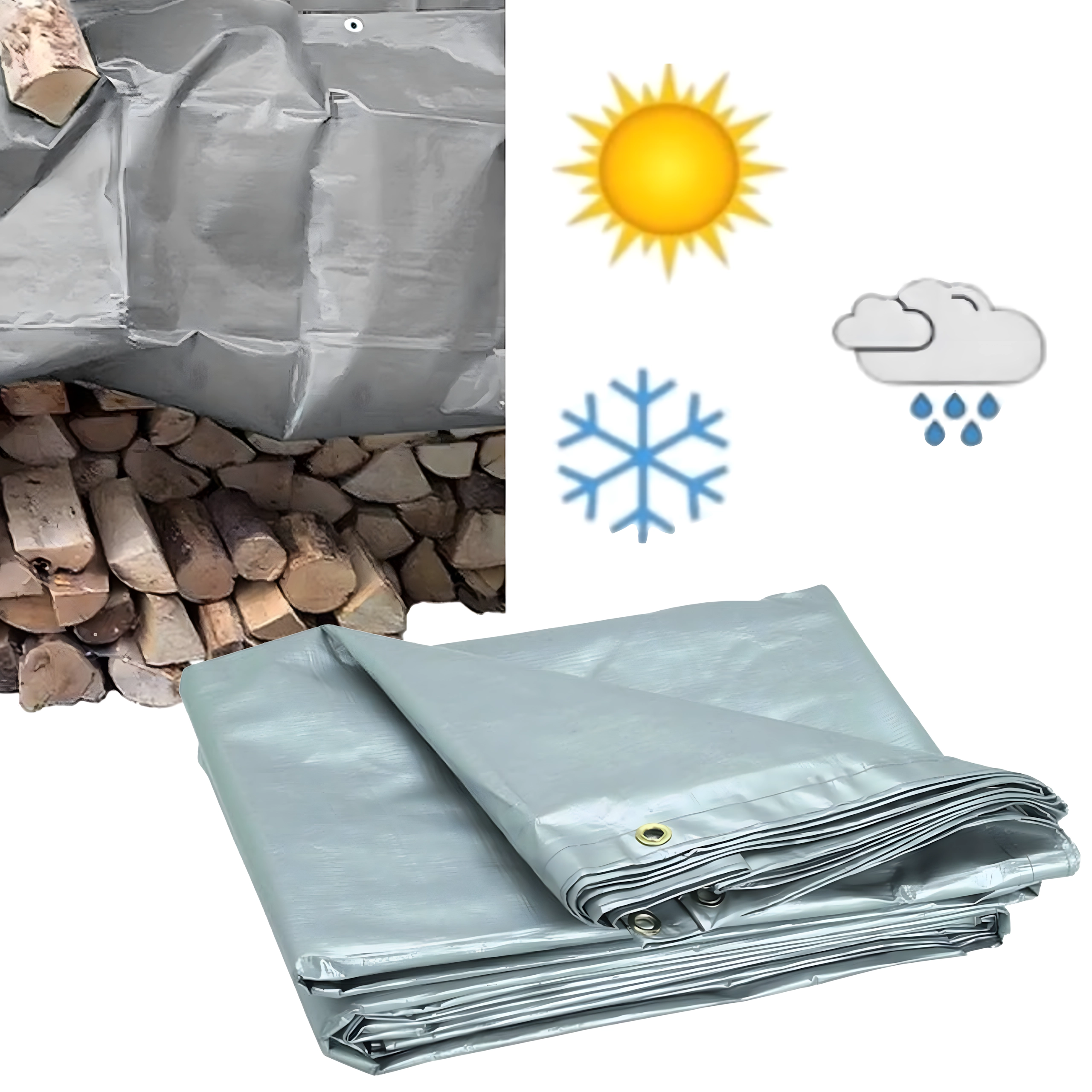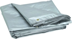 Convient comme abri provisoire, housse pour voiture ou remorque et protection de chargement. Se tend facilement grâce aux œillets métalliques.