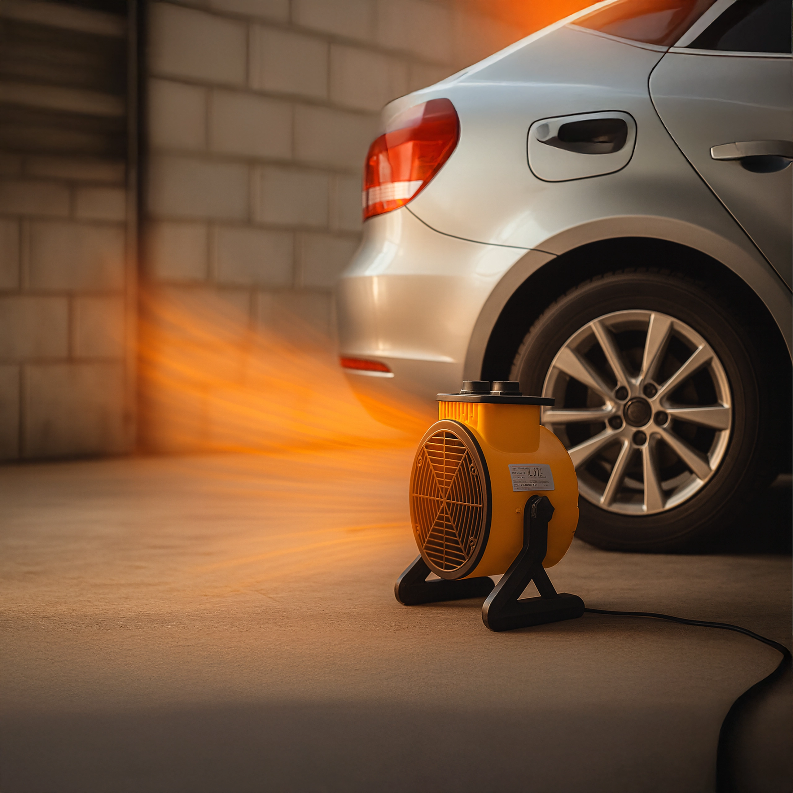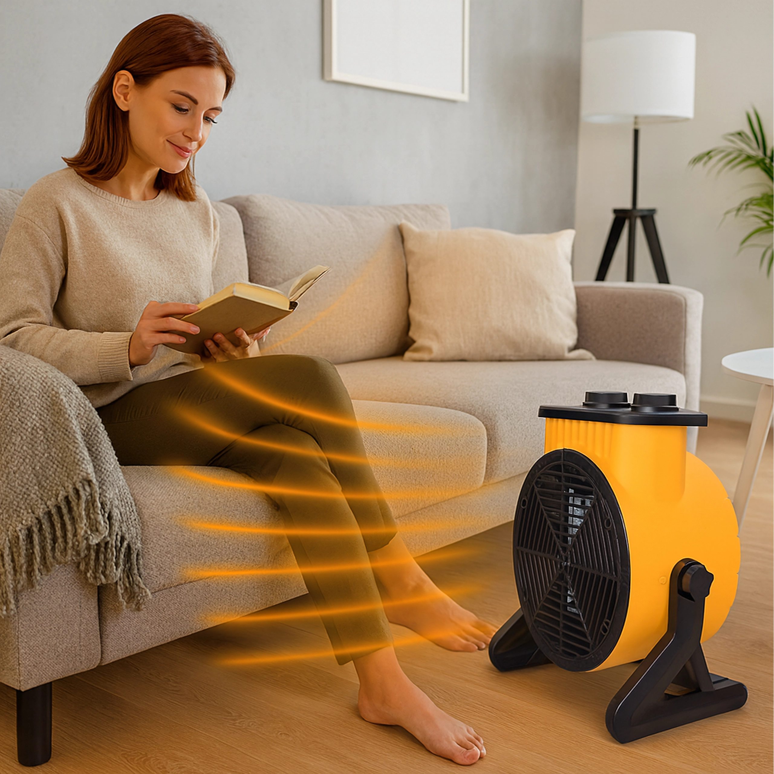 Un support stable et inclinable ainsi qu’une poignée intégrée permettent d’orienter le flux d’air exactement là où vous en avez besoin — dans la salle de bains, l’atelier ou le garage.