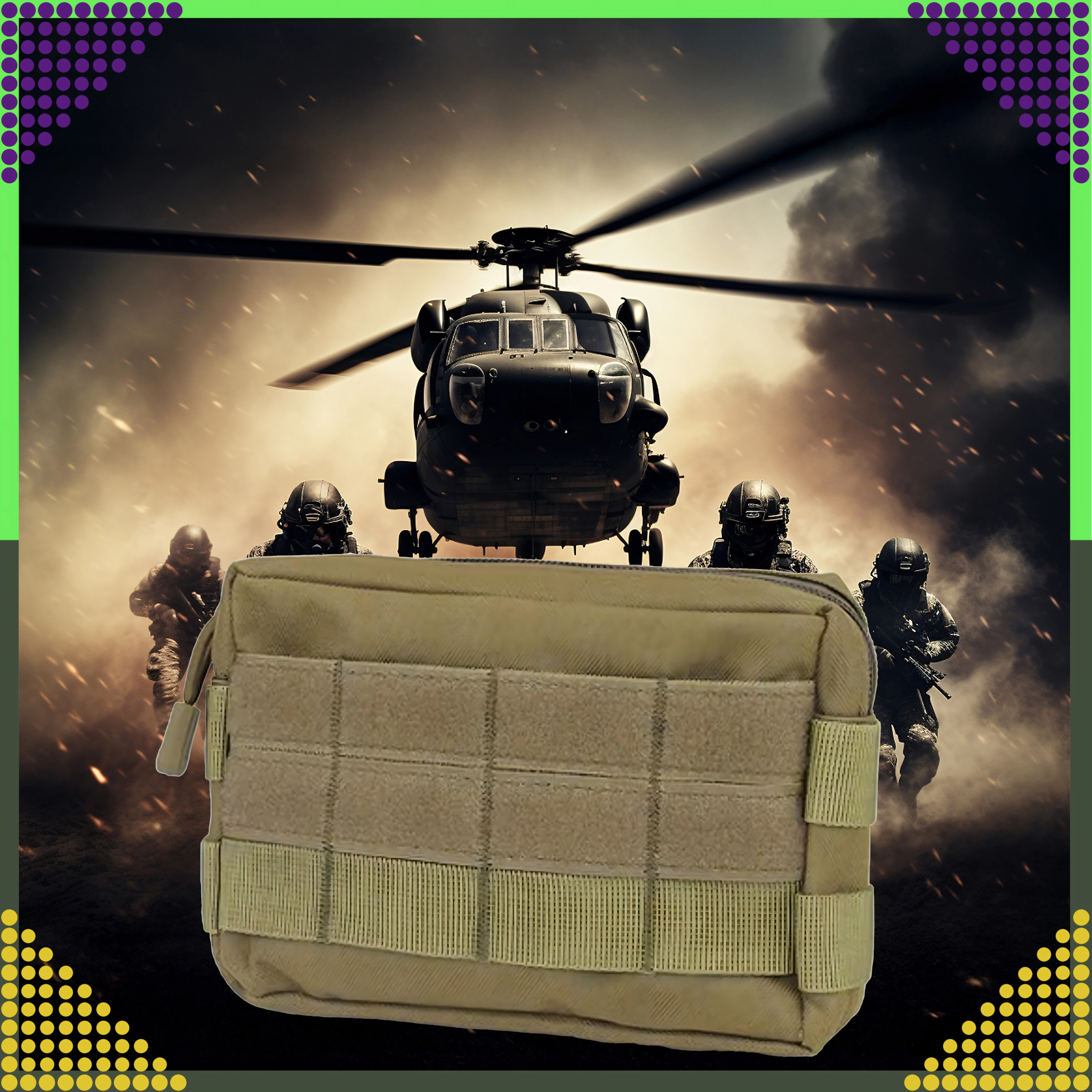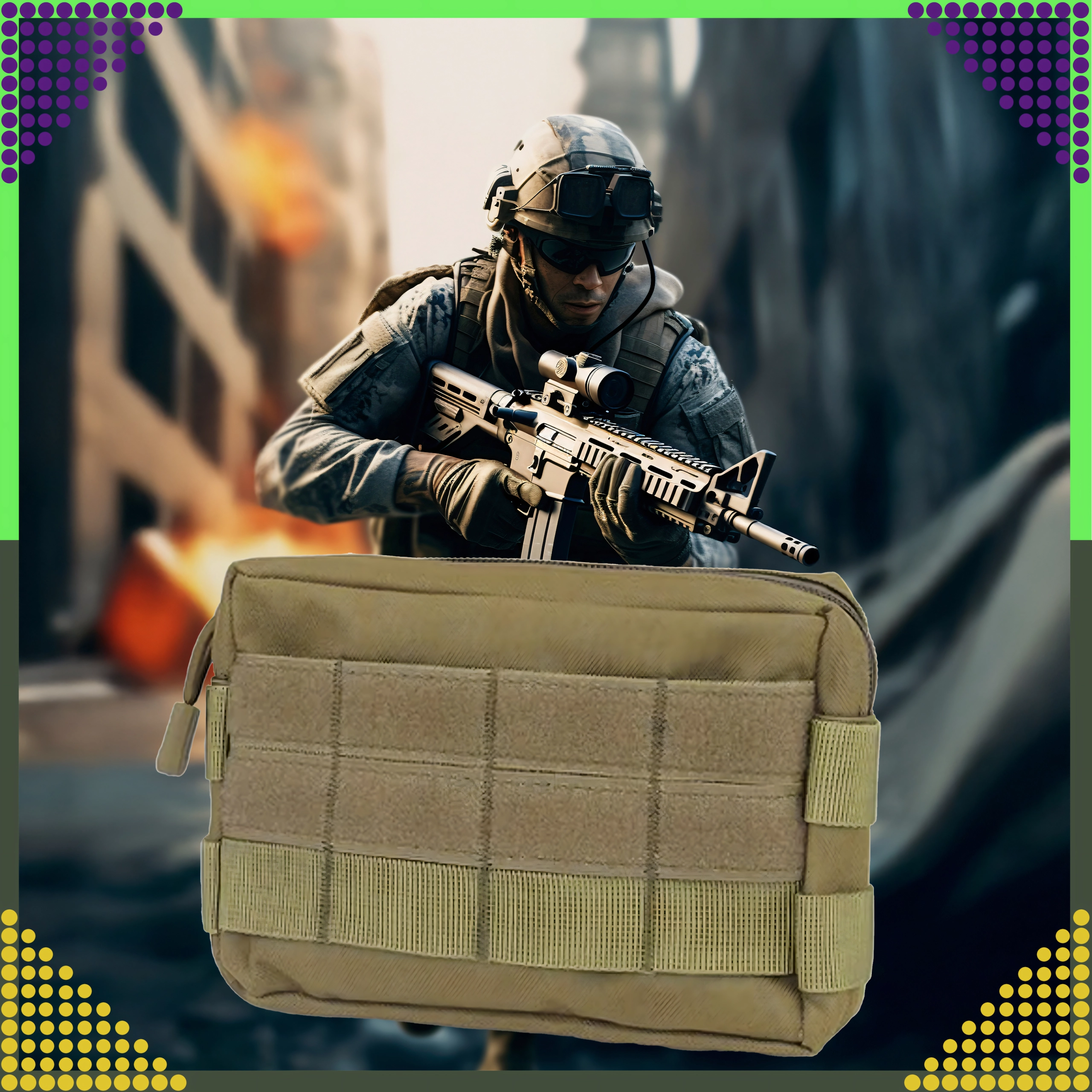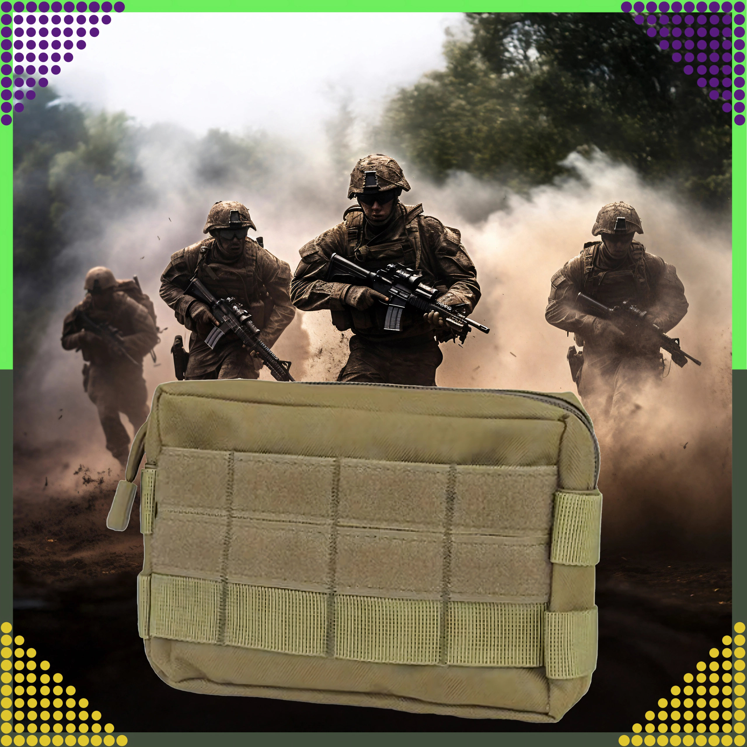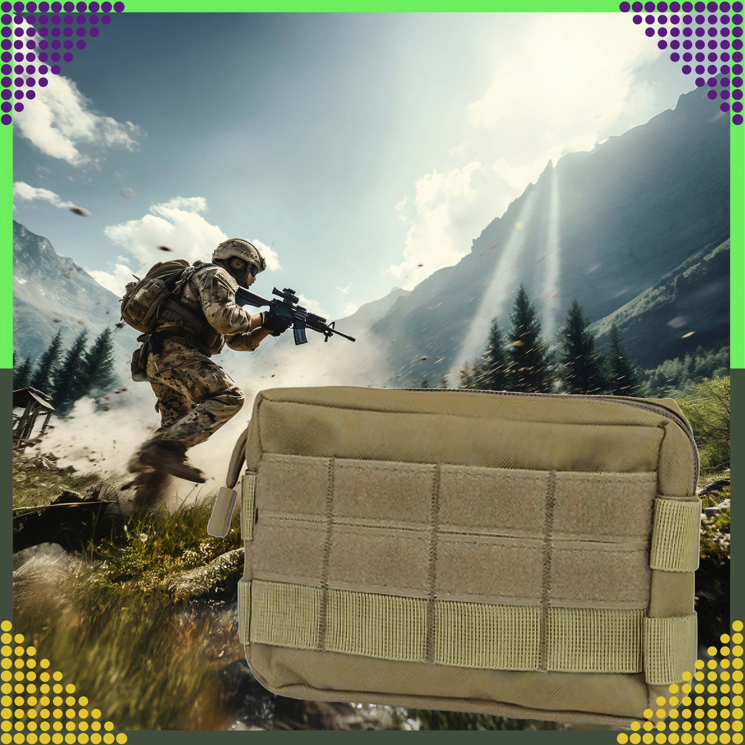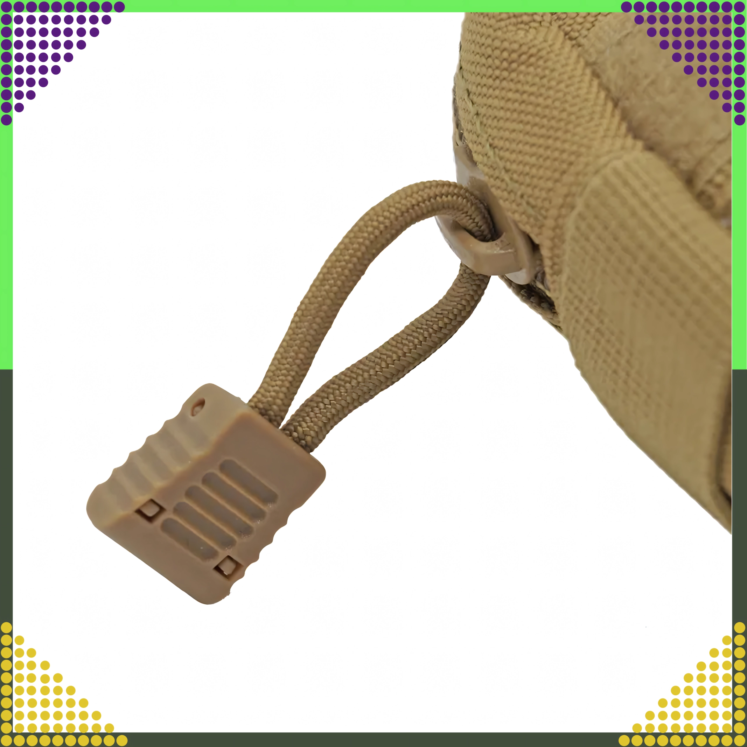 Pochette tactique compacte en nylon 600D résistant avec traitement déperlant, compatibilité MOLLE et organiseur en maille élastique. Le compartiment principal se ferme par fermeture éclair avec tirettes en paracorde pour une ouverture rapide et sûre. Idéale comme étui EDC, mini trousse de secours ou pochette à outils pour gilet, sac à dos ou ceinture.