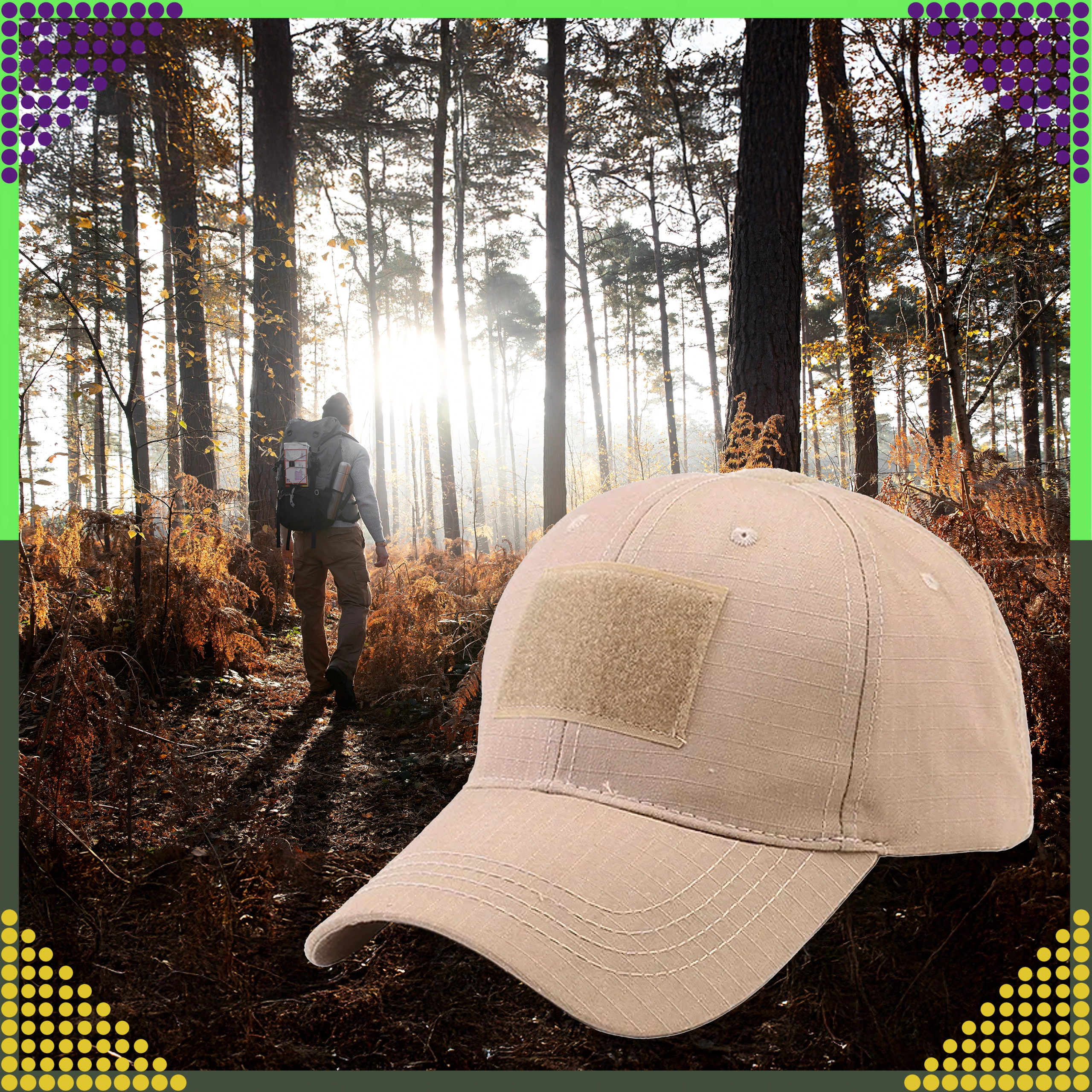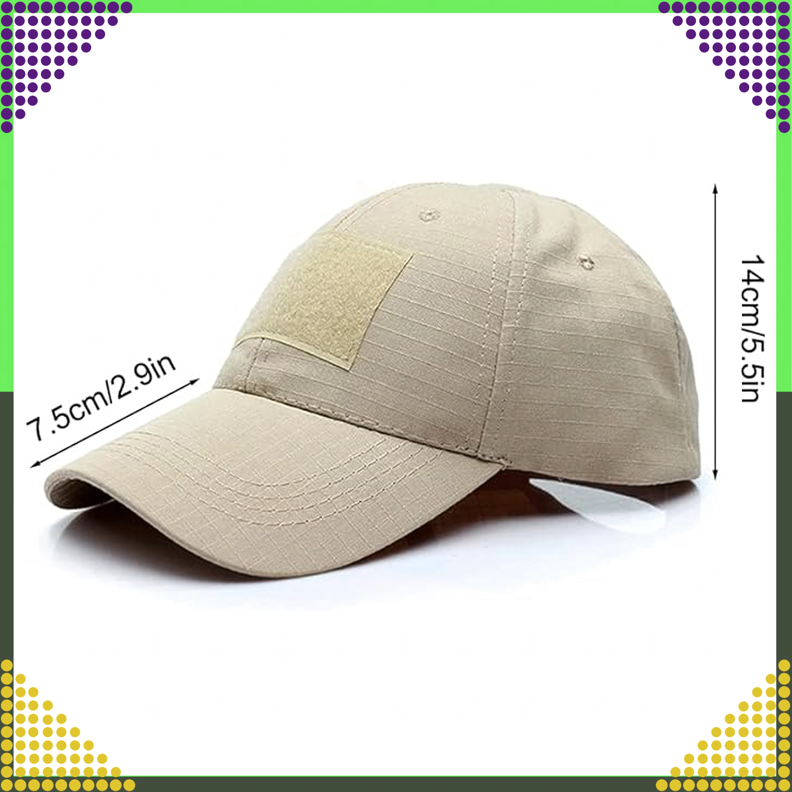 Casquette tactique légère et robuste en tissu ripstop avec panneaux velcro pour la personnalisation. Offre un réglage rapide de la taille, est respirante et compatible avec les protecteurs auditifs ainsi que d’autres équipements de tête. Idéale pour la randonnée, le camping, la pêche et le port au quotidien.