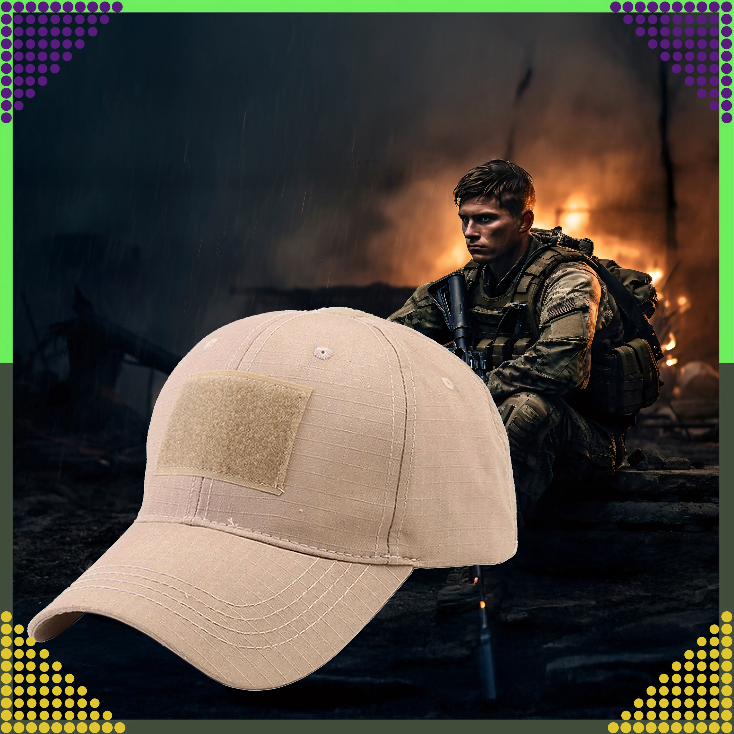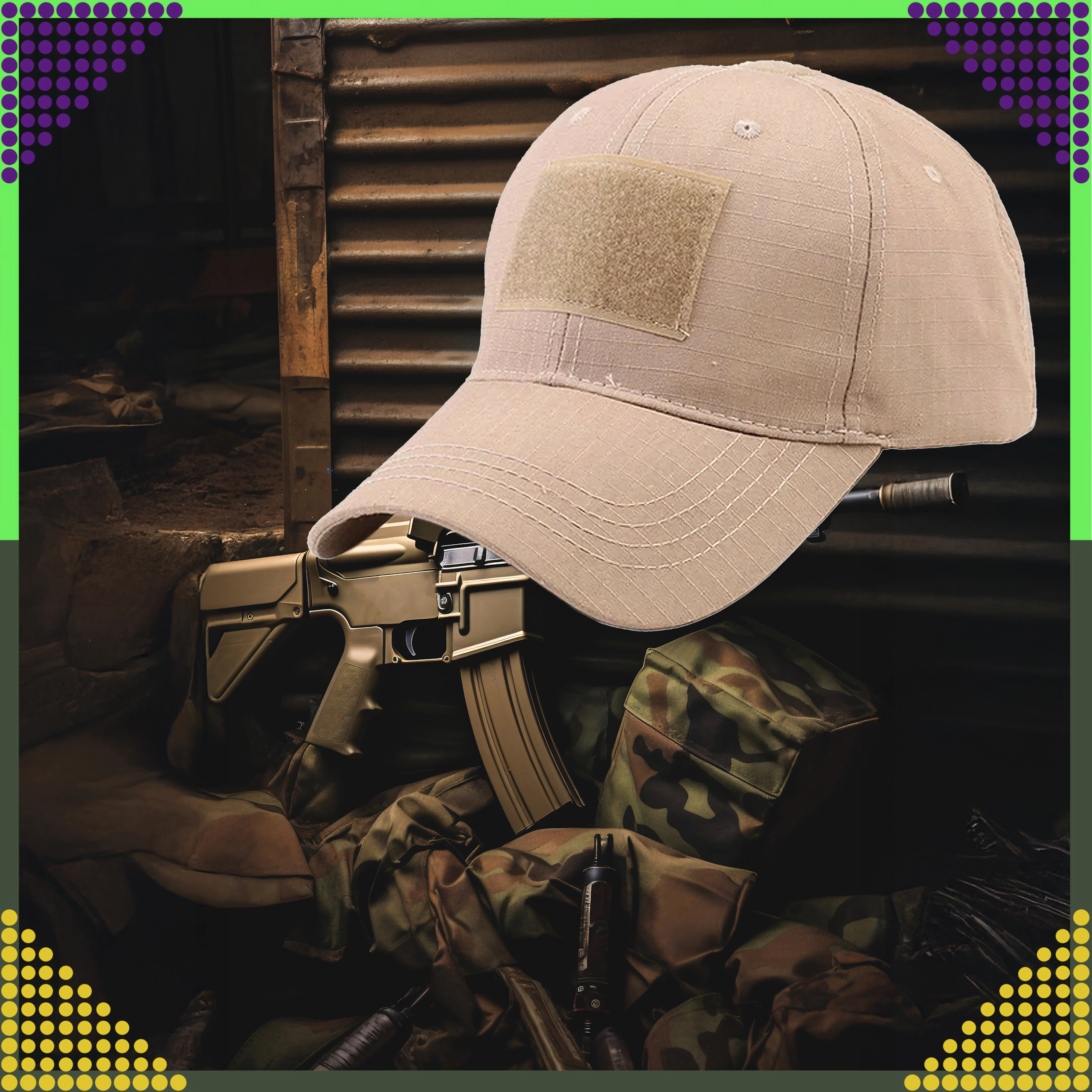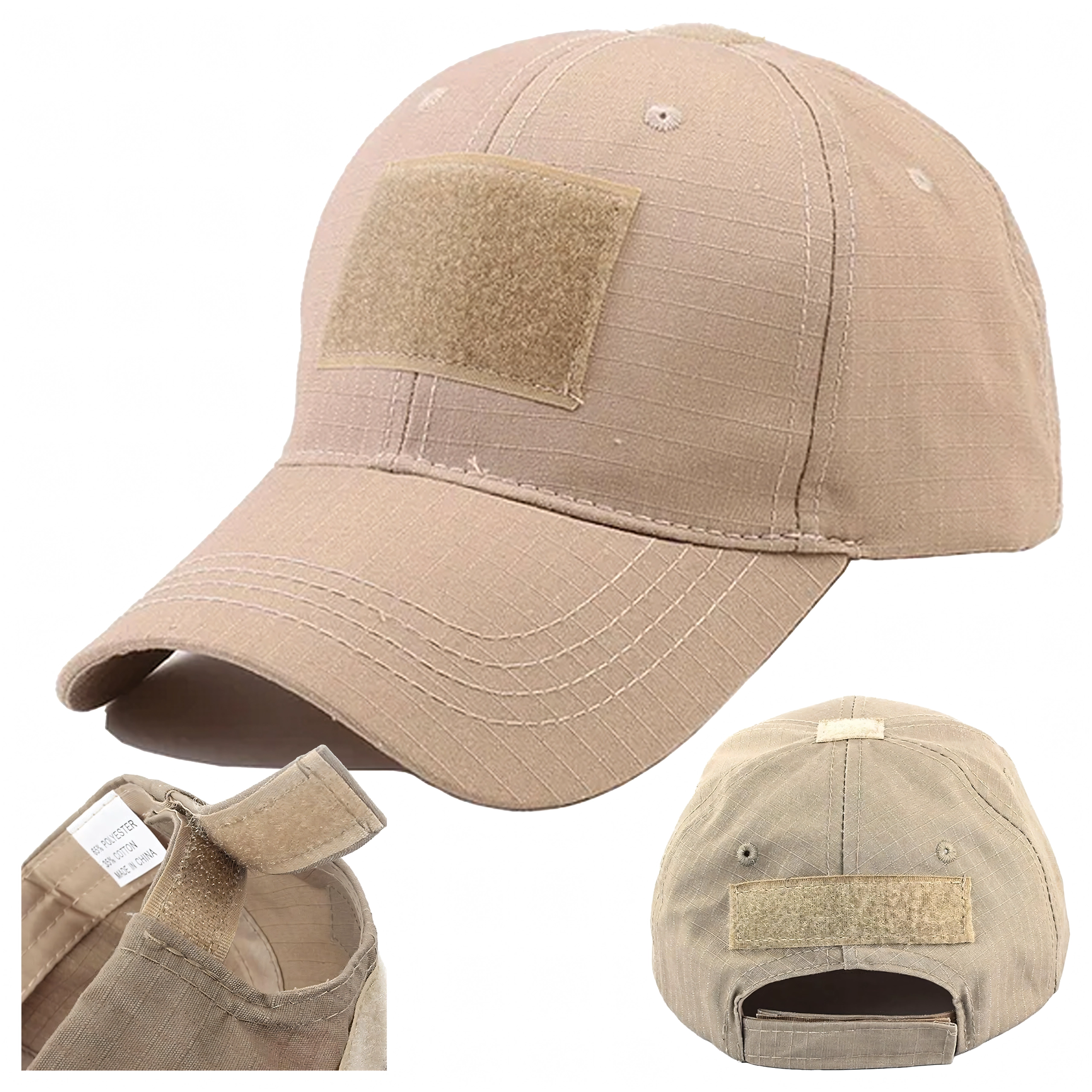 Casquette de baseball tactique en ripstop avec panneaux velcro, marron