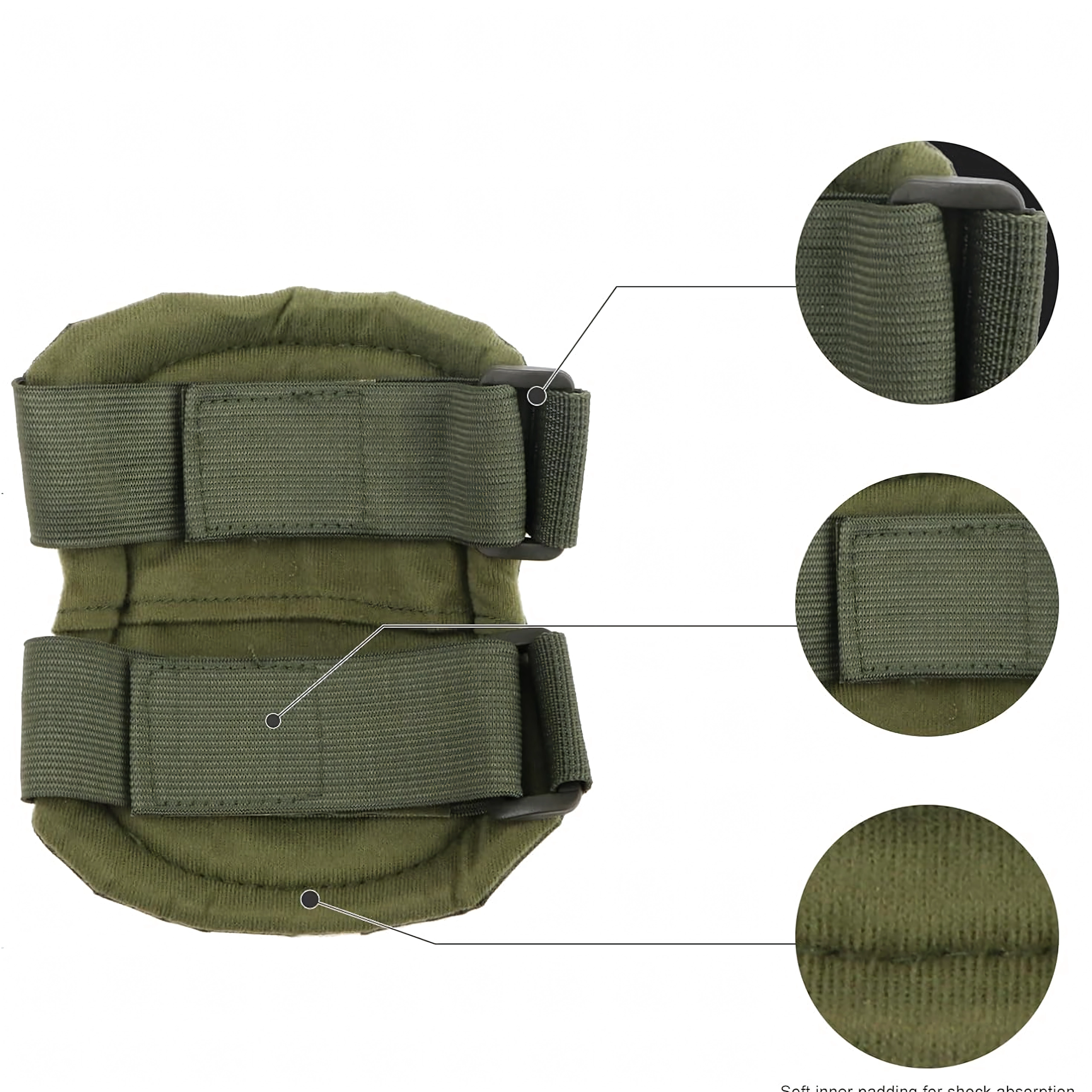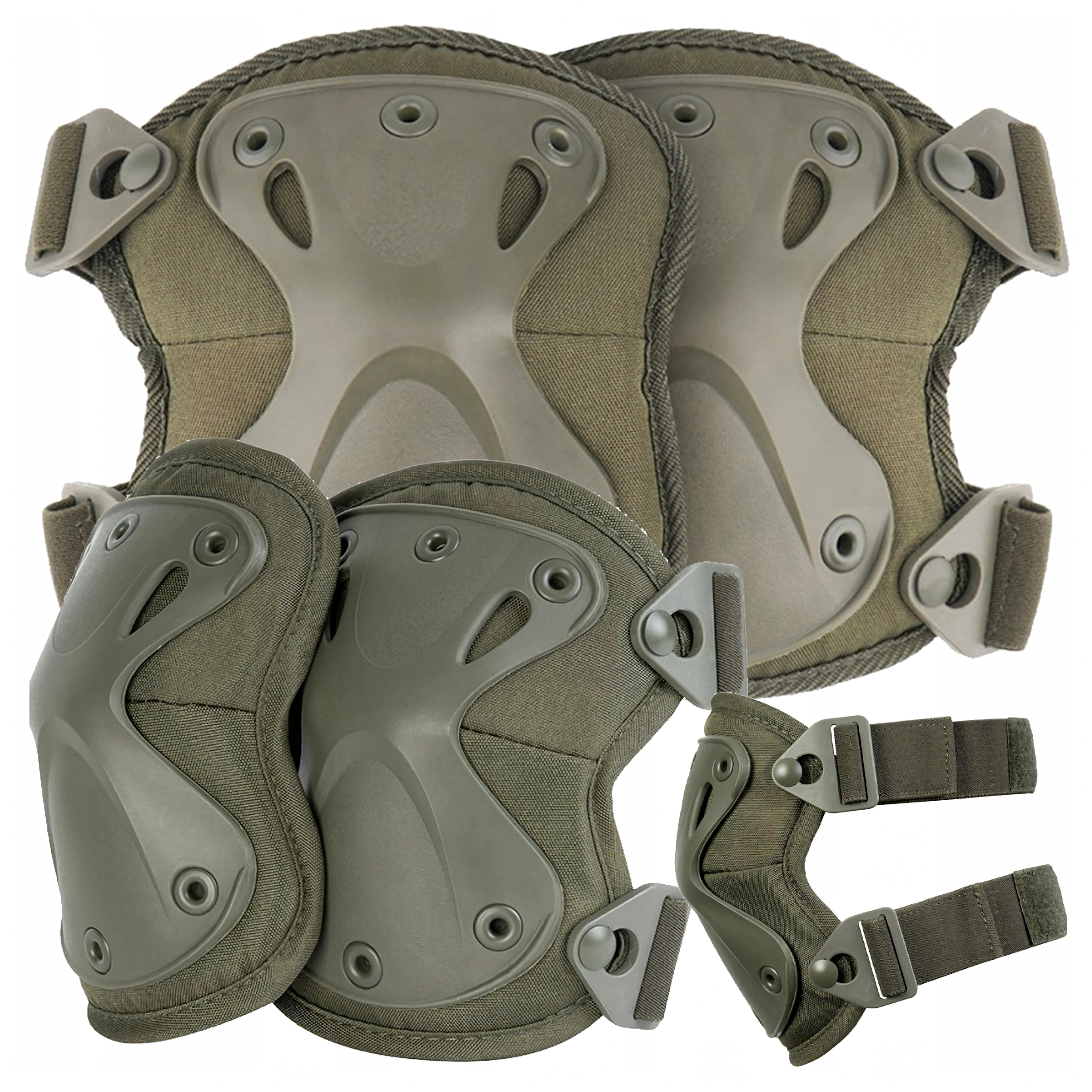 Protections tactiques durables pour genoux et coudes en nylon avec coques rigides en plastique pour une protection fiable à l'impact. Grâce à la forme conique, elles répartissent les forces de manière uniforme et offrent un meilleur amorti. La fixation rivetée garantit une longue durée de vie, tandis que les sangles élastiques avec boucles à dégagement rapide permettent un réglage rapide et un retrait instantané. Idéales pour l'airsoft, le paintball, le skating et un usage professionnel léger.