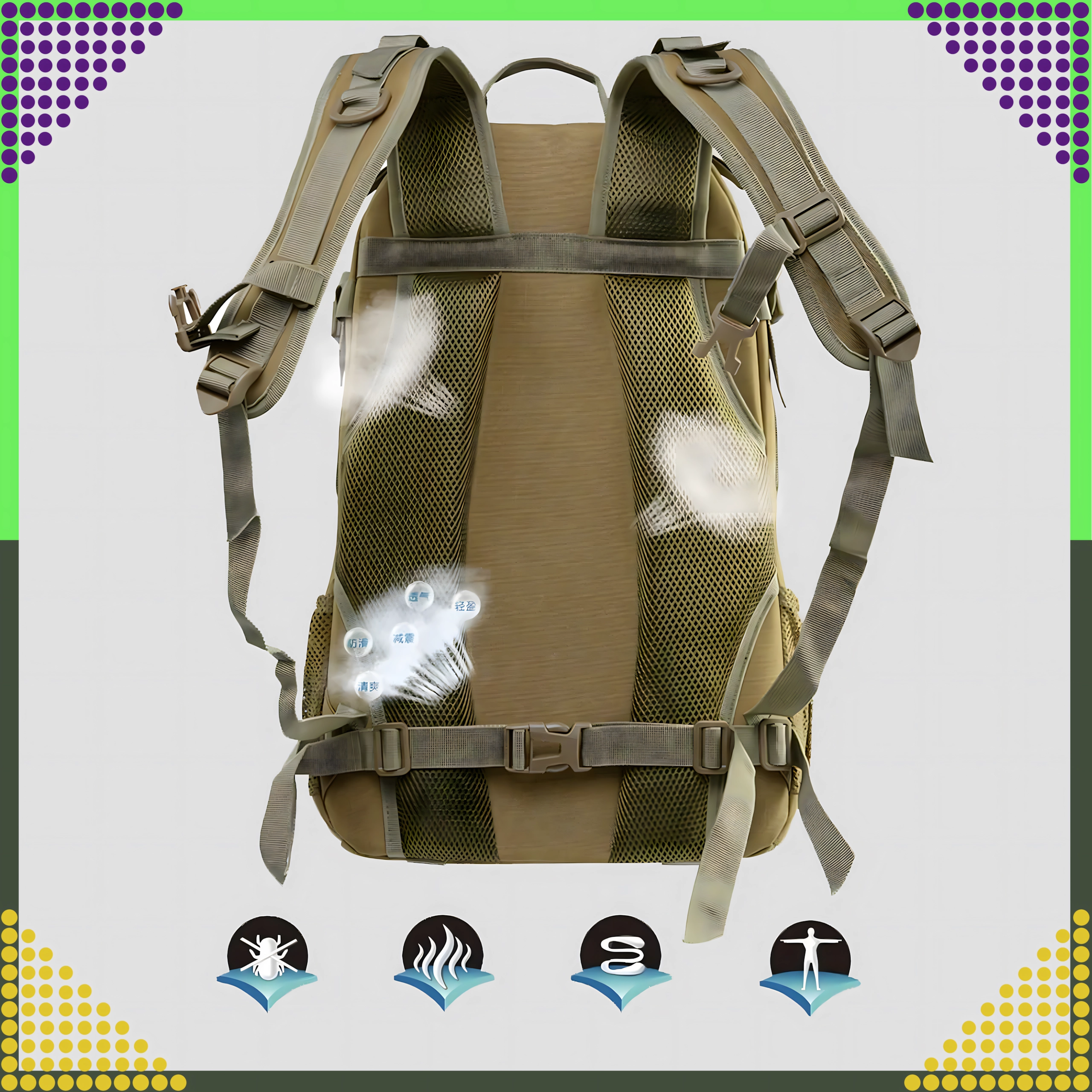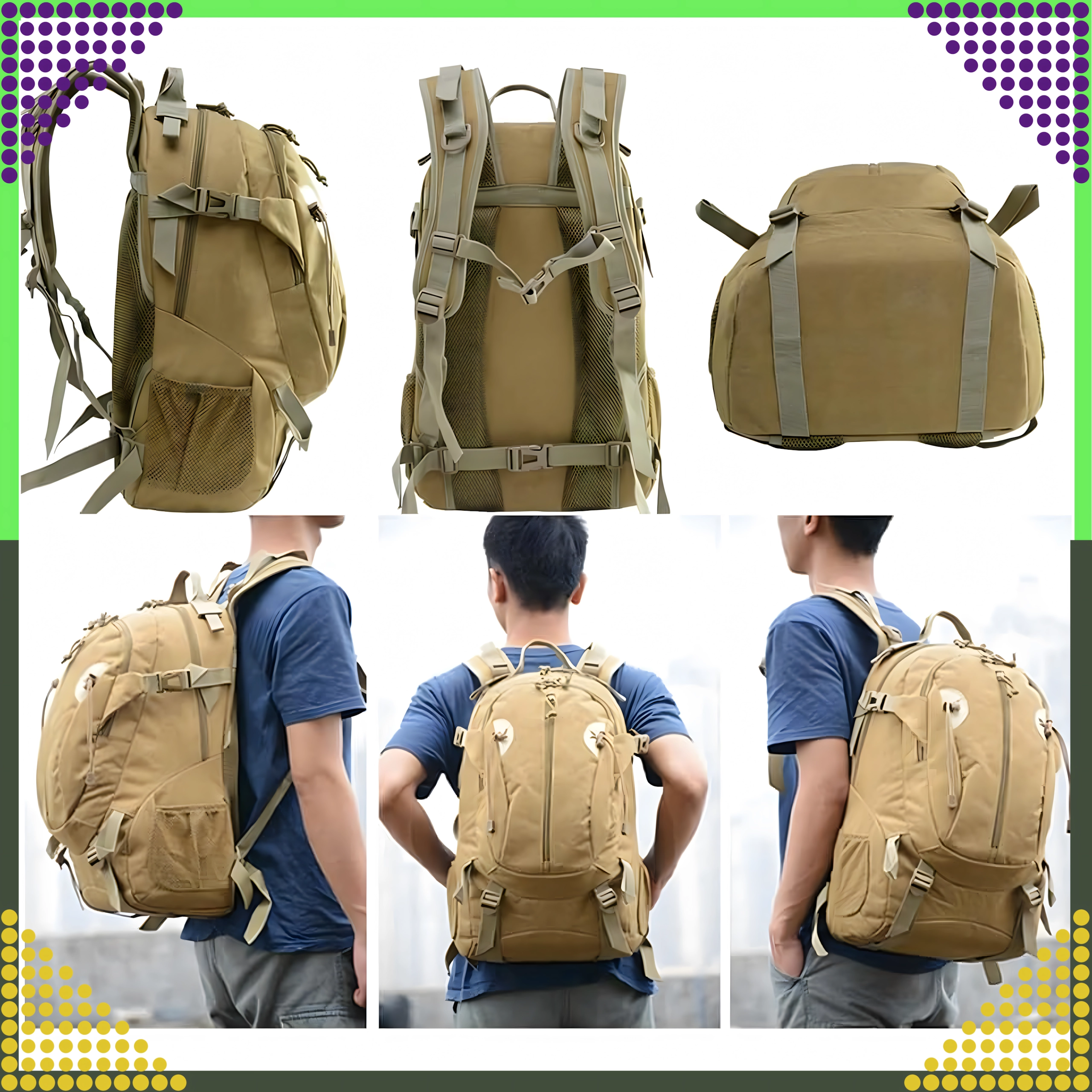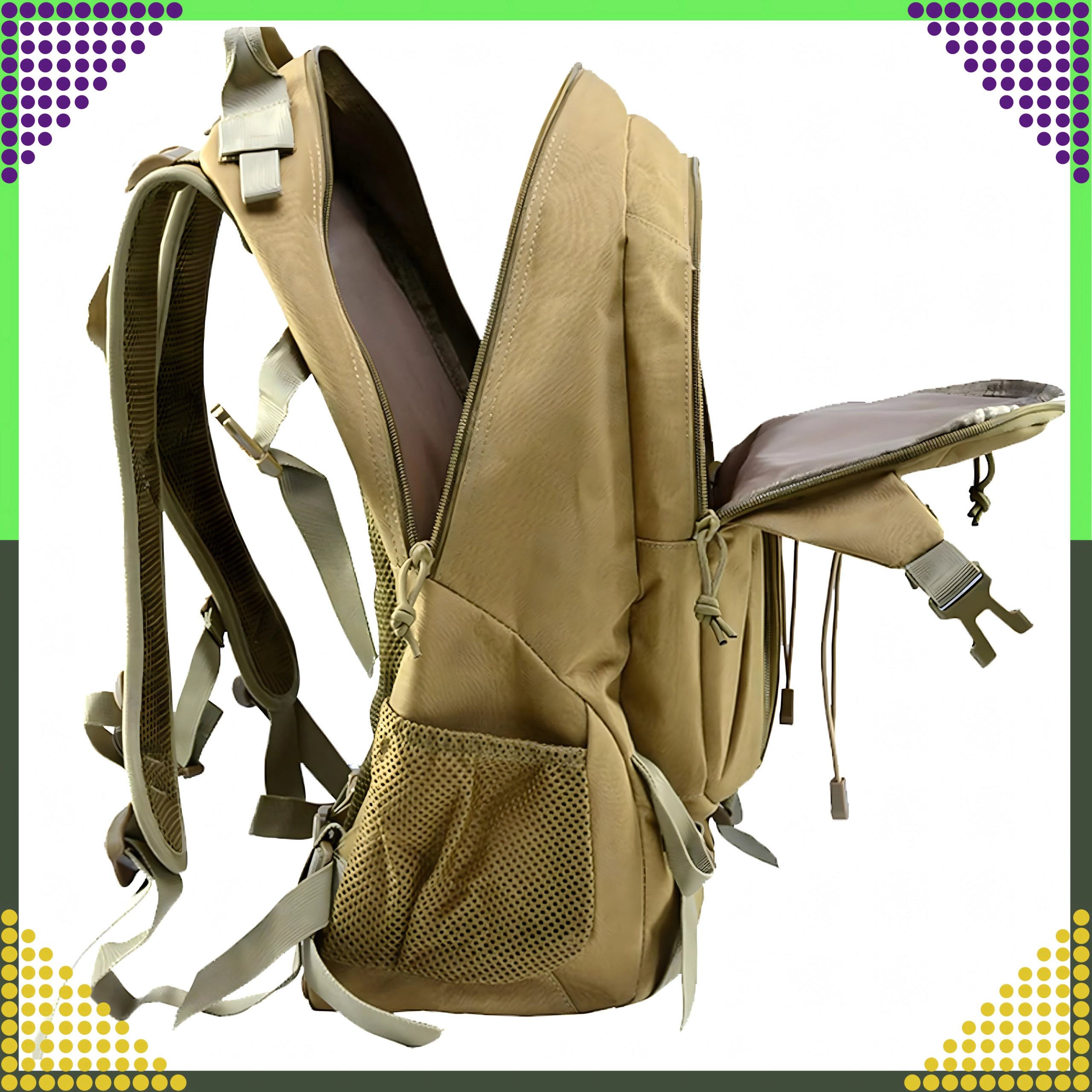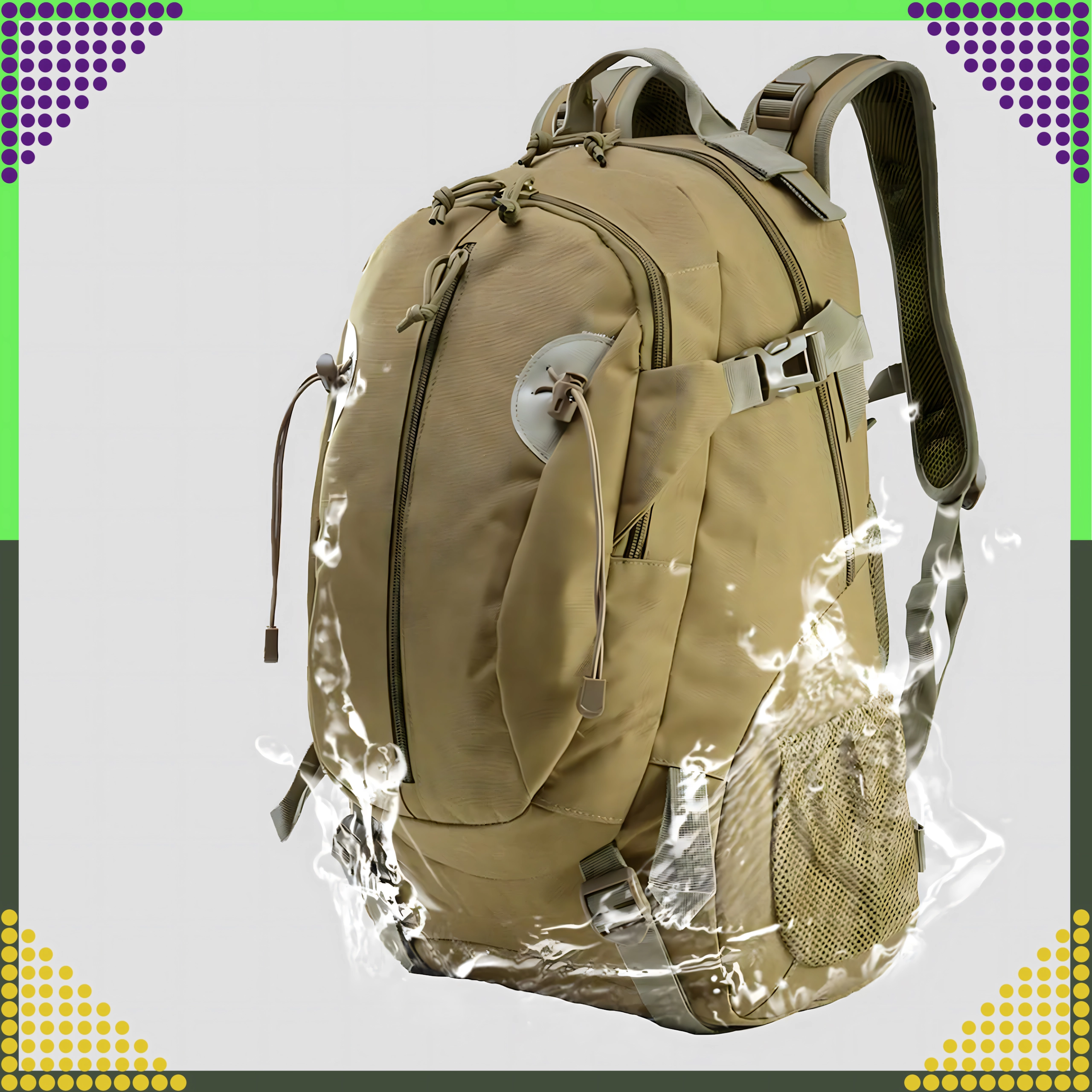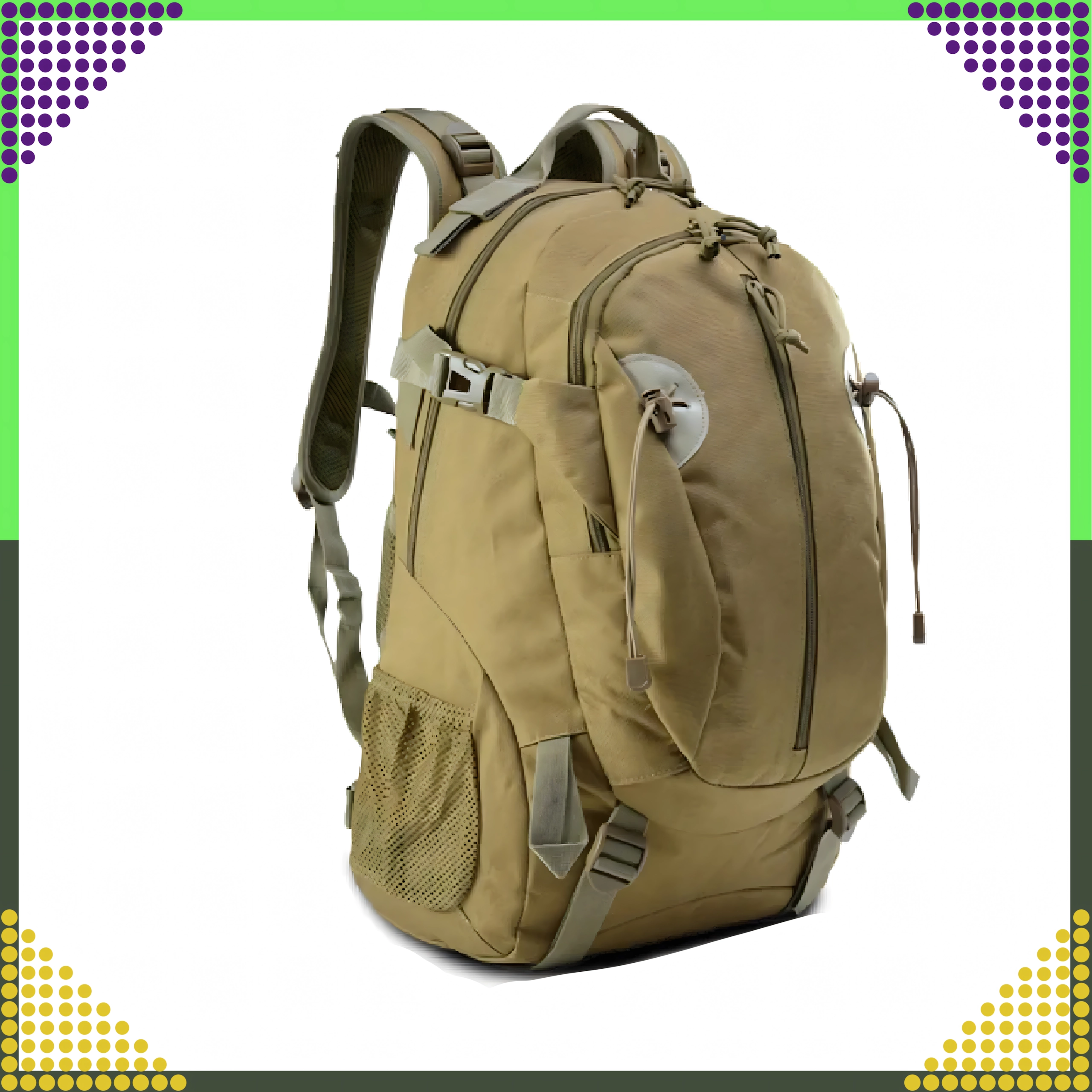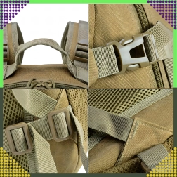 Ce sac à dos tactique de couleur kaki universelle est conçu pour un usage quotidien fiable, en pleine nature comme en ville. Le tissu polyester 900D avec laminage PVC interne améliore la déperlance et protège le contenu de l’humidité. Le dos et les bretelles rembourrés avec système de ventilation assurent un grand confort même lors de port prolongé.